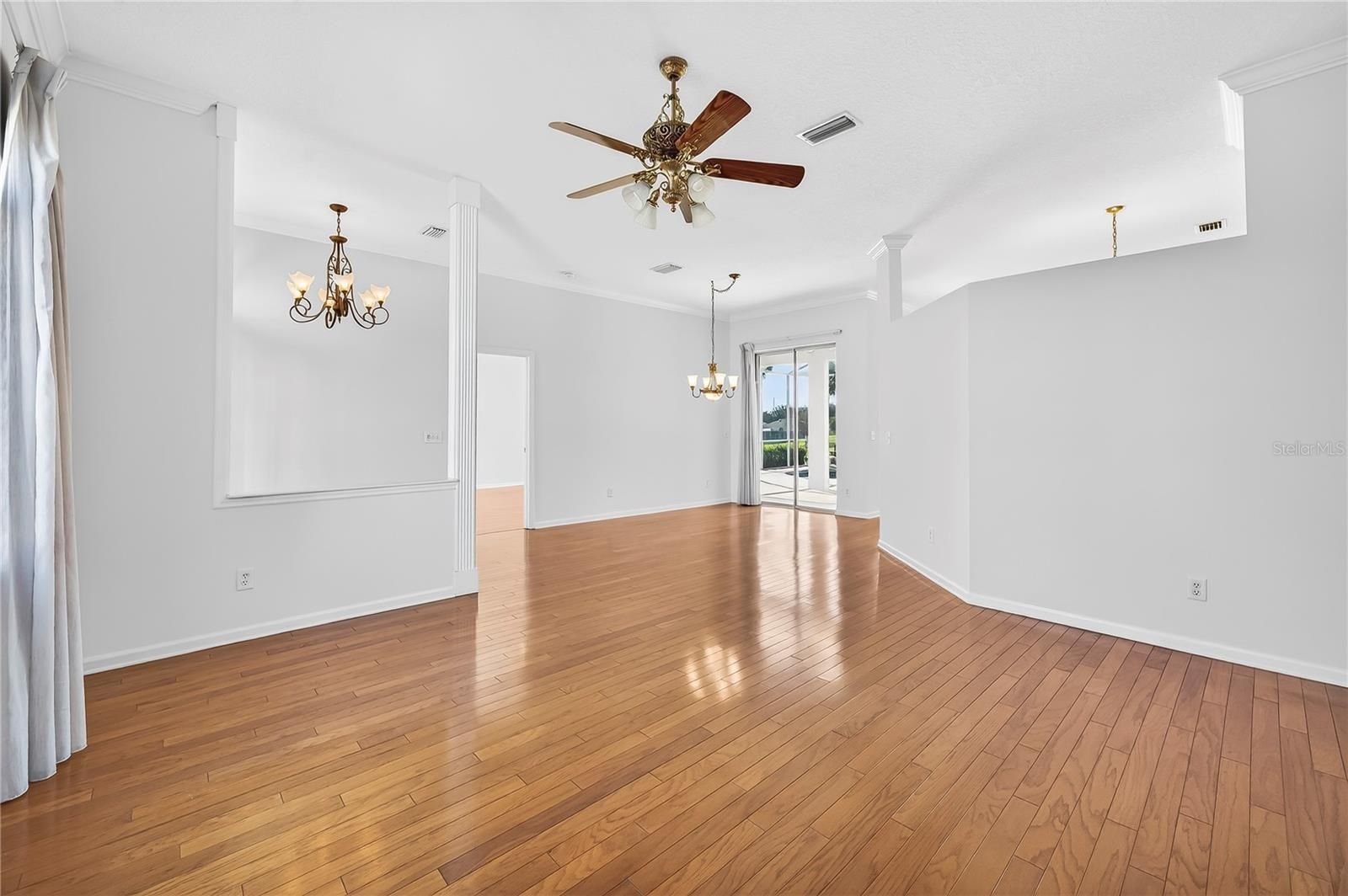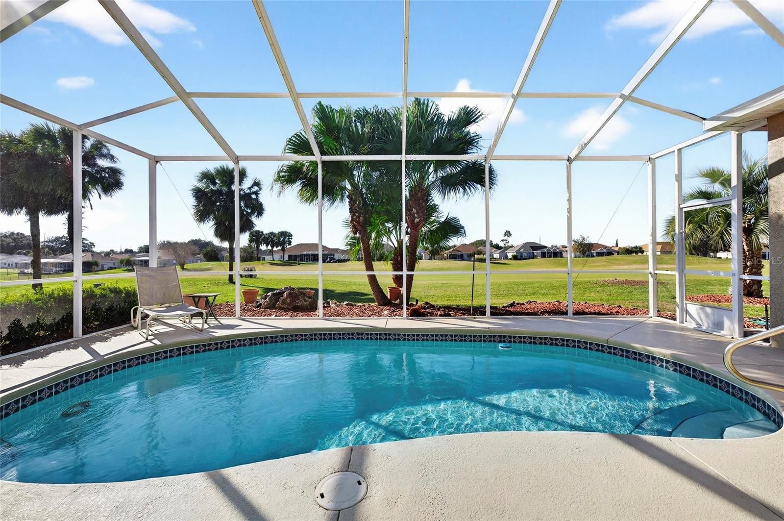 Welcome to this beautifully maintained Majesty model, thoughtfully designed for easy living and located in the sought-after 55+ community of Ocala Palms, where resort-style amenities meet everyday comfort. Perfectly positioned overlooking the 13th green, this 3-bedroom, 2-bath home offers a bright, inviting layout with real hardwood flooring throughout the main living areas, tile in the bathrooms, and elegant crown molding in the living room, dining room, and kitchen. The spacious, open kitchen is ideal for the cook in the family, creating a warm and welcoming space for both daily living and entertaining. Step outside and unwind in your private backyard oasis, featuring a kidney-shaped pool enclosed by a birdcage - perfect for enjoying Florida’s sunshine in comfort and privacy year-round. Major updates include a new roof in 2023 and a new HVAC system in 2024, offering peace of mind and added value. Residents enjoy access to exceptional amenities including a clubhouse, on-site restaurant, pickleball and tennis courts, and a beautifully maintained golf course. Conveniently located near a grocery store and two hospitals, this home truly offers the ideal blend of comfort, quality, convenience, and active adult living. Schedule your private tour today and see why Ocala Palms is such a special place to call home.