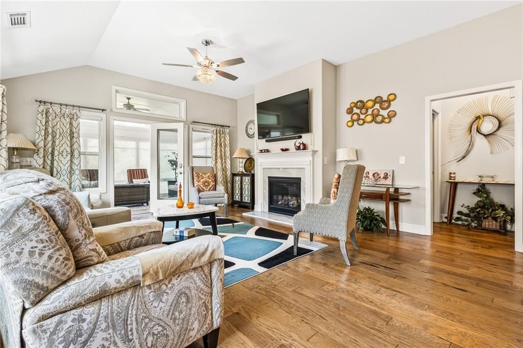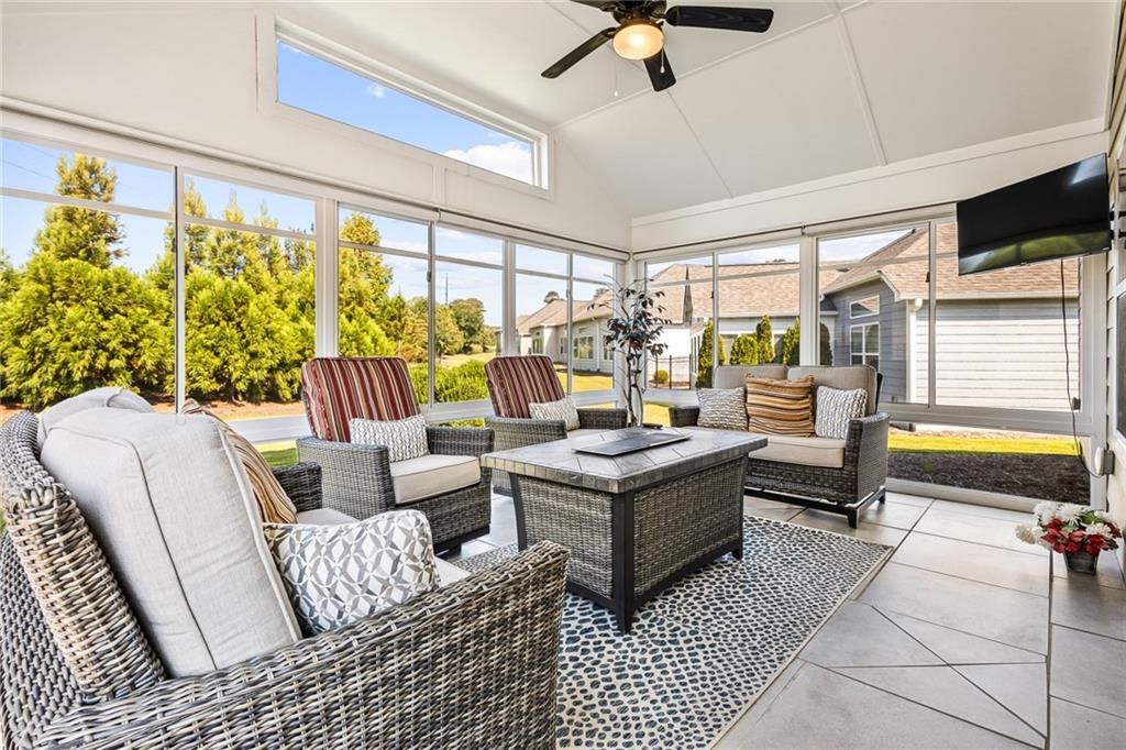 Welcome to easy, elegant living in this stunning 2-bedroom, 2-bath home, situated in a premier 55+ community in Powder Springs. Nestled on an oversized lot, this property offers exceptional privacy, with generous space between neighbors—a rare find. Thoughtfully designed, it features two spacious bedrooms, two full baths, and a dedicated office, ideal for hobbies or remote work. The expansive master suite includes a large custom walk-in closet and a luxurious en-suite bath with safety bars for peace of mind. With a step-free design, accessibility is effortless. Relax year-round in the enclosed sunroom with automatic shades—ideal for coffee, reading, or entertaining. Additional highlights include a formal dining room, spacious laundry, and a large 2-car garage with upstairs storage. Outside, unwind in your private, landscaped, fenced garden with a fire pit, perfect for peaceful evenings. Modern luxury meets functional design, filled with natural light. Community amenities—clubhouse, fitness center, garden, and trails—encourage an active lifestyle. Minutes from The Avenues of West Cobb and Cobb Senior Services, this is your chance for peaceful, low-maintenance living in a vibrant community.