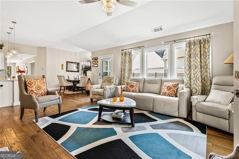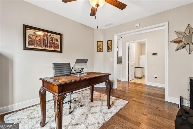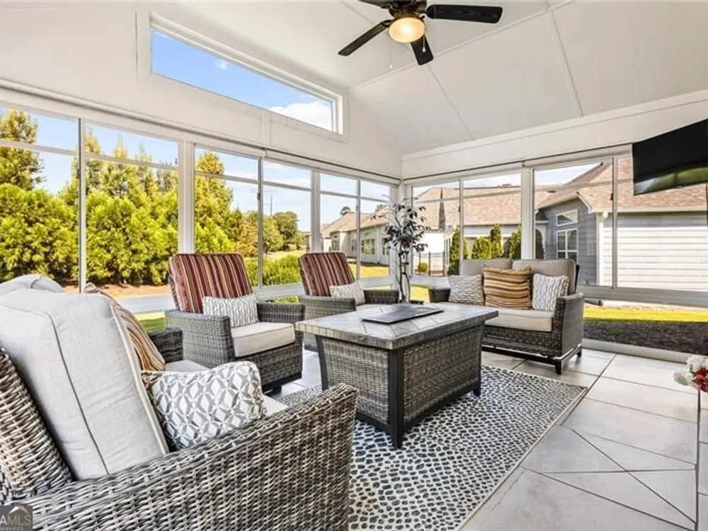 Stunning 2 Bedroom, 2 Bath Home in Premier Powder Springs 55+ Community! Welcome to easy, elegant living in this beautifully maintained home located in a sought-after senior adult community in Powder Springs. Situated on an oversized lot, this property offers exceptional privacy with ample space between neighbors - a rare find! This thoughtfully designed residence features 2 spacious bedrooms, 2 full bathrooms, and a dedicated office perfect for working from home or enjoying your hobbies. The oversized master suite is a true retreat, featuring a large custom walk-in closet and a luxurious en-suite bath with safety bars for added comfort and peace of mind. The home has no steps throughout, ensuring easy accessibility. Enjoy year-round relaxation in the enclosed sunroom, complete with automatic shades-ideal for morning coffee, reading, or entertaining guests. The home also boasts a formal dining room, large laundry room, and a spacious 2-car garage with an upstairs storage area. Step outside and unwind in your private, fenced garden area, beautifully landscaped and complete with a fire pit-perfect for cozy evenings or gathering with friends and family. Designed for comfort and convenience, this home combines modern luxury finishes with functional living, including an open floor plan and plenty of natural light. Community amenities include a clubhouse with fitness room, neighborhood garden, and dog park, making it easy to stay active and social. The location is unbeatable-just minutes from shopping, The Avenue of West Cobb, and the Cobb Senior Services facility. Don't miss this exceptional opportunity to enjoy peaceful, low-maintenance living in a vibrant 55+ community!