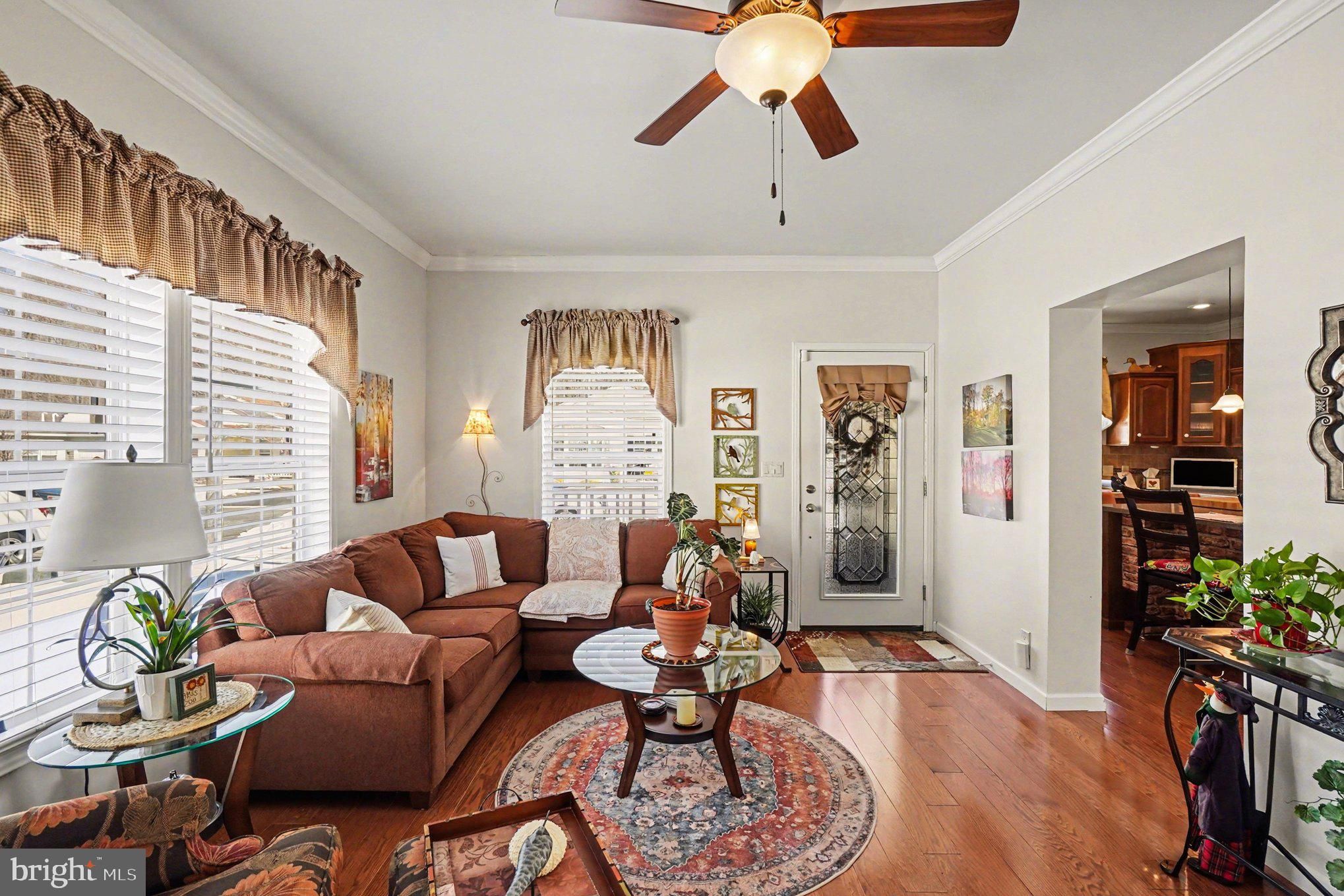 COMPLETELY move-in ready! Beautifully maintained, with numerous upgrades, 2-bedroom, 2 full bath manufactured rancher ("Kingsley" model) offering 1,588 sq. ft. of living space and situated in the sought-after 55+ community of Cecil Woods with close proximity to Rt 40, I-95 and the shops and restaurants of the quaint and historical town of North East, Maryland. As you enter you will be greeted with an open and airy floor plan featuring 9' ceilings, crown molding and striking hardwood flooring throughout. Highlights include a spacious living room featuring a cozy corner stone fireplace (propane burning), formal dining room, sitting room and a gourmet kitchen. Details include a HUGE island with a Corian countertop and seating, propane cooking, undermount cabinet lighting, attractive tile backsplash, pantry and tons of beautiful cabinetry with plenty of storage and prep space. Additional features include laundry, full bath, 2 roomy bedrooms, including a primary with a walk-in closet and attached bath offering a walk-in shower, double sinks and separate make-up vanity. Exterior details include a covered front porch, rear composite deck with a retractable awning and nature views, attractive landscaping, one-car oversized attached garage and 3 paved parking spots. Upgrades include new HVAC (12/2025), 2.5" faux wood blinds throughout (5/2023) and new water heater added 4/2025. The active community center features a large clubhouse that includes a library, billiards, exercise room, party room/game room and walking/jogging paths. Ground rent is $665.00 monthly (no property taxes!) and includes trash pick-up, public sewer and snow removal on the streets. Buyer must receive park approval from Cecil Woods (see documents for application). Shows pride of ownership. If you are searching for a completely turn-key home located in a peaceful, friendly and walkable community, your search is over...57 Admirals Way...A PERFECT place to call HOME!!!