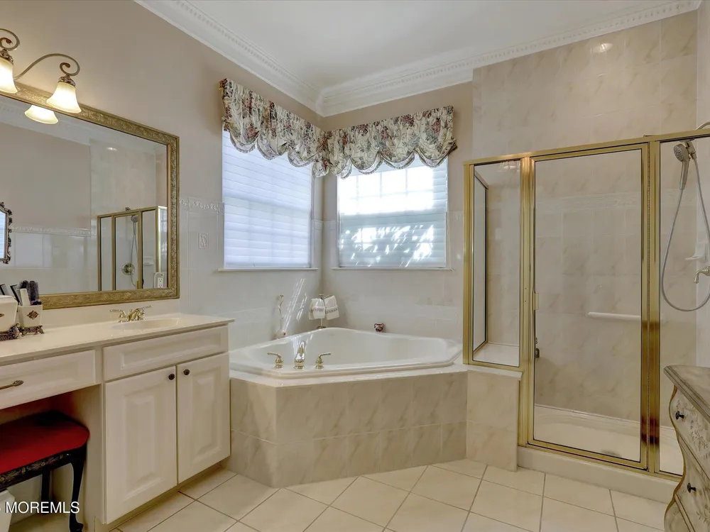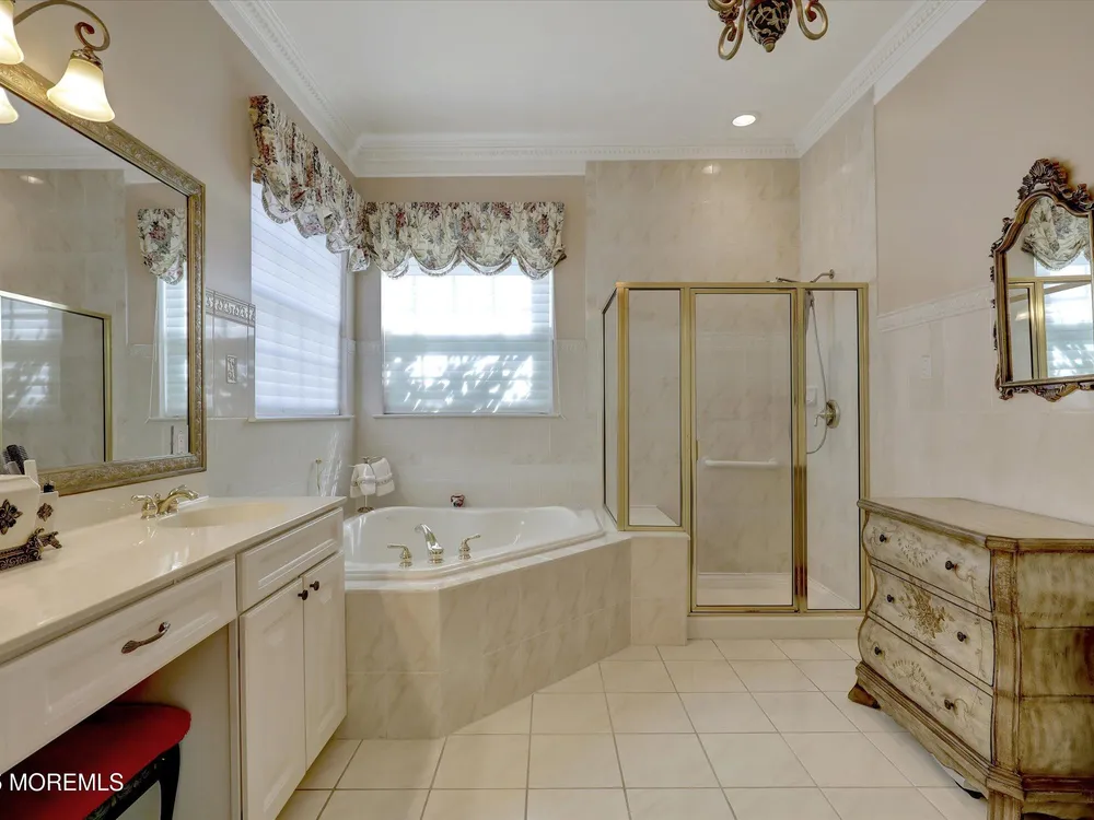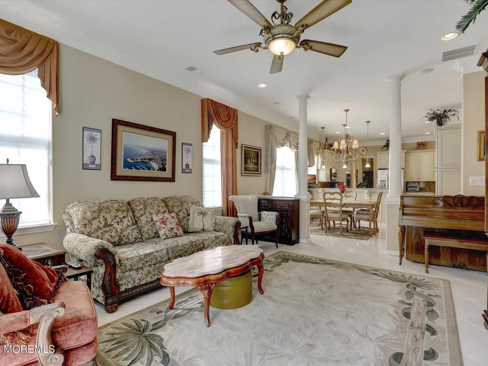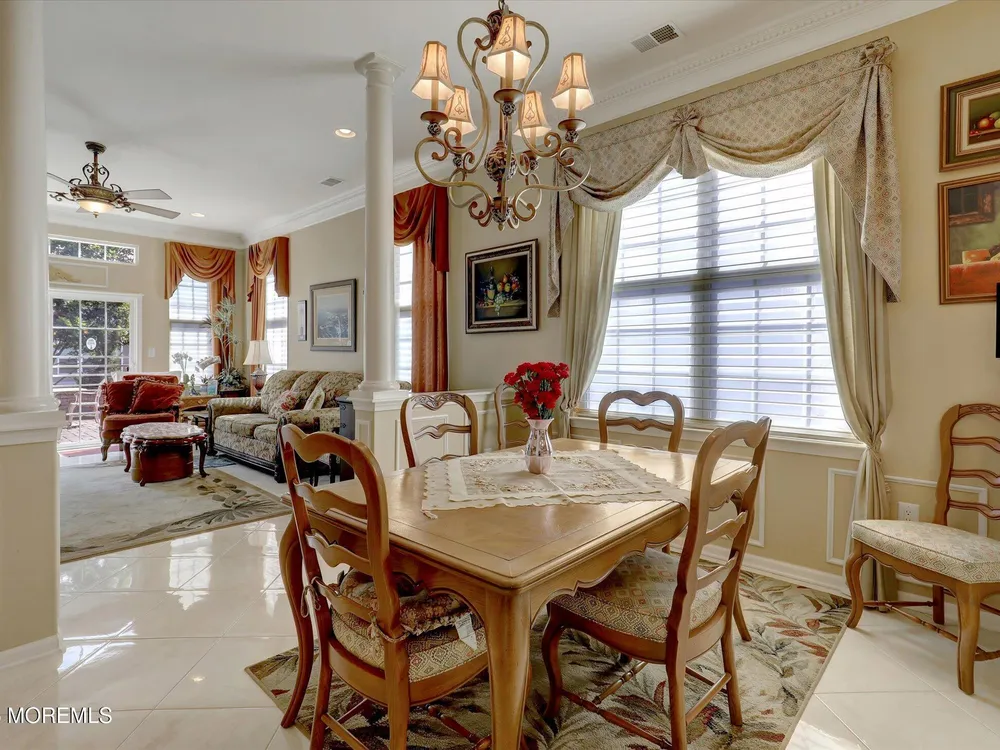 Sanibel Model featuring high-end upgrades throughout. Four Seasons@ Metedeconk Lakes. This property showcases elegant design & finishes in every room. Three large bedrooms, two full baths, living & dining room, eat-in kitchen, family room, laundry room, beautiful patio are only some of the many amenities this property offers. Spacious and well-maintained interior, prime location, convenient access to amenities, ten-foot ceilings, impressive porcelain flooring, custom molding throughout, recessed lighting, electronic air purifier, in&outdoor stereo system, central vacuum, generator, sprinkler system, garage with stairway to an extra room & additional storage space. Kitchen with extra custom cabinetry and granite countertops. Oversized master suite with private luxury bath and a walk-in closet.The Four Seasons at Metedeconk Lakes is an established gated community featuring single-family homes and a 28,000 sq. ft. clubhouse. Amenities include indoor and outdoor pools, a jacuzzi, sauna, banquet/ballroom, library, fitness center, card rooms, pool tables, computer facilities, bocce ball, tennis, pickleball, shuffleboard, and a community garden. Located in Jackson, Central Jersey, Four Seasons at Metedeconk Lakes is near the border of Freehold Township and a few minutes from Interstate 195.