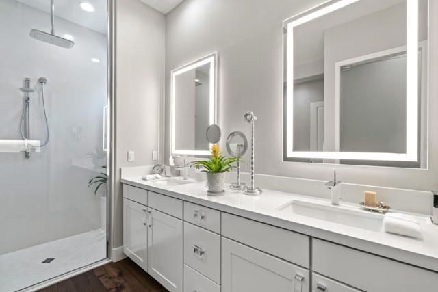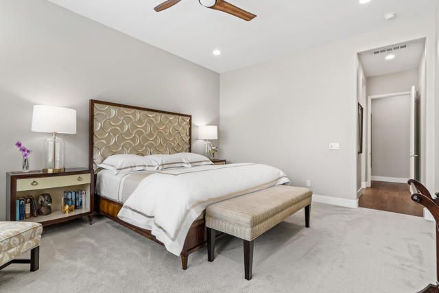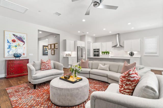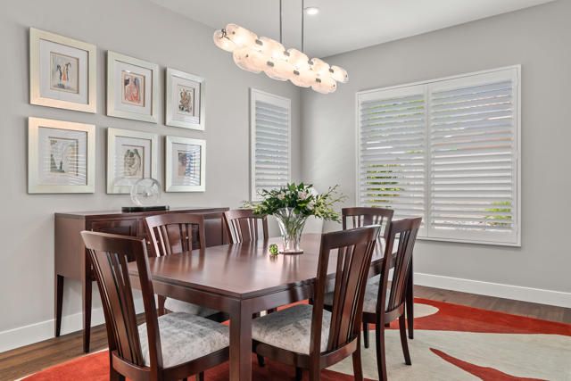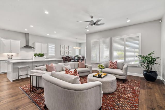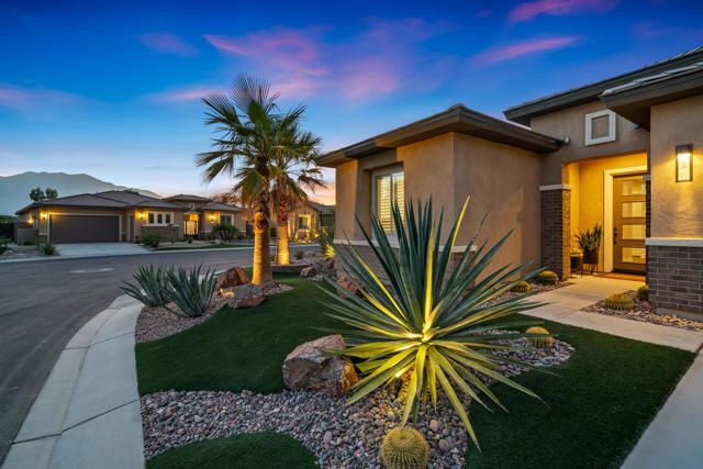 Situated on a desirable corner lot within the sought-after Del Webb Rancho Mirage community, this meticulously maintained four-year-old residence blends modern comfort with thoughtful designer detail. The solar system, including added panels, is fully paid. Distinctive features include hardwood flooring throughout, refined landscape design with premium turf in both front and rear yards, and a large pergola ideal for outdoor dining and relaxation. Inside, a chef's kitchen showcases upgraded cabinetry, countertops, appliances, and an induction range. The spacious primary suite offers a spa-style bath with upgraded counters, custom fixtures, a Panasonic heater, and custom closet organization. Additional highlights include a guest suite with new insulated windows, a versatile den or office, and an epoxy-coated garage with an upgraded door and custom cabinetry. Art lovers will appreciate the three CODA gallery installations that bring texture and personality to the interiors. The Refuge floor plan from the Retreat Series offers efficient, low-maintenance living with style. Some furnishings may be negotiated. A community dog park sits conveniently across the street, and the generous corner lot allows room for a future pool addition.