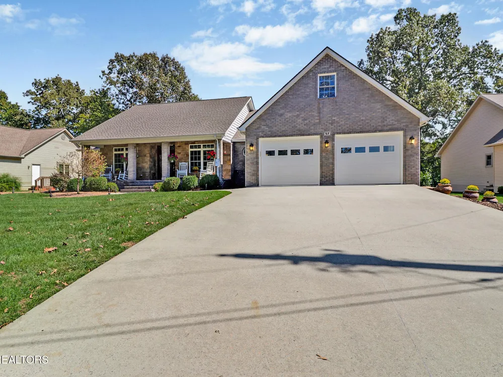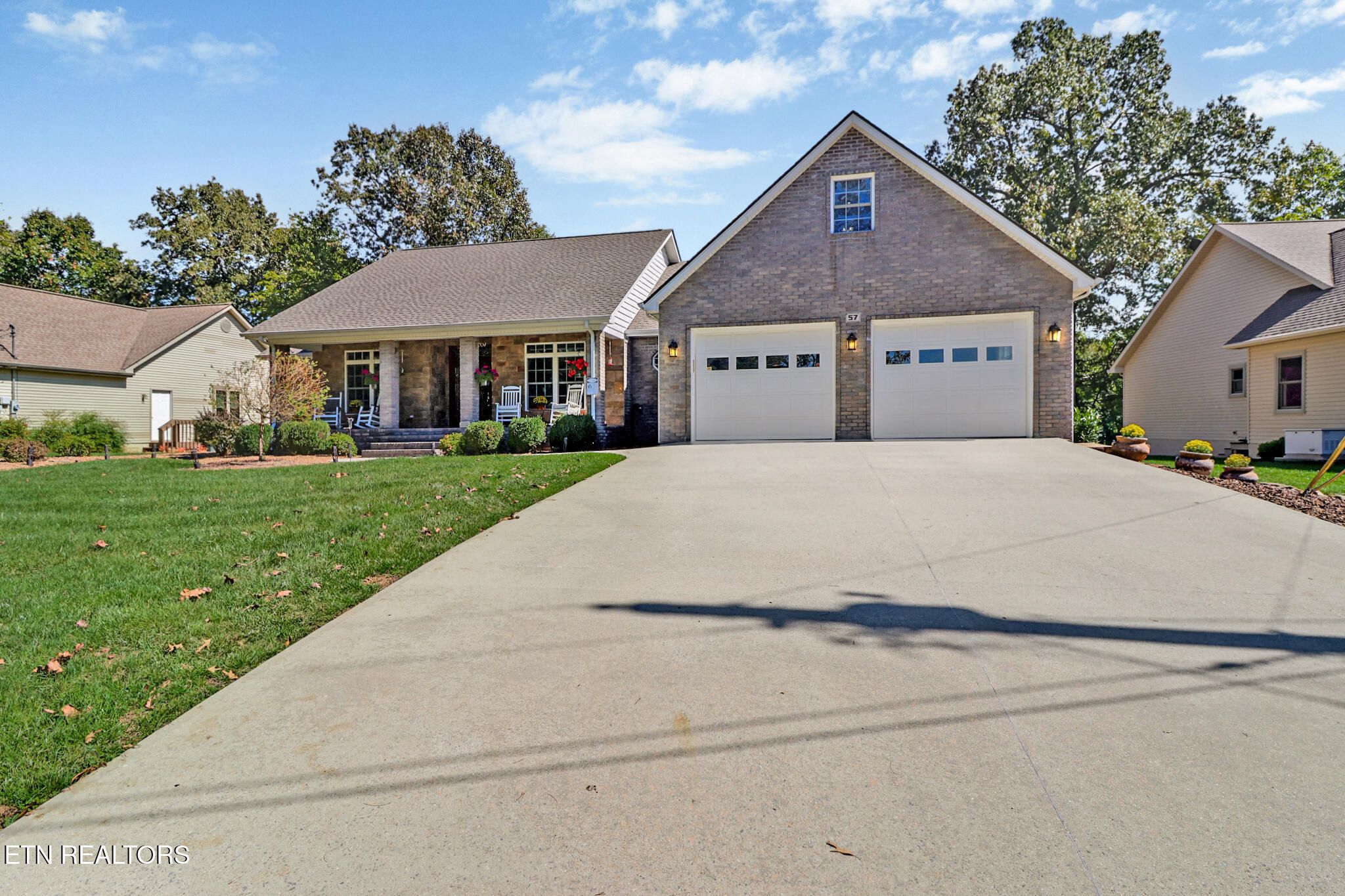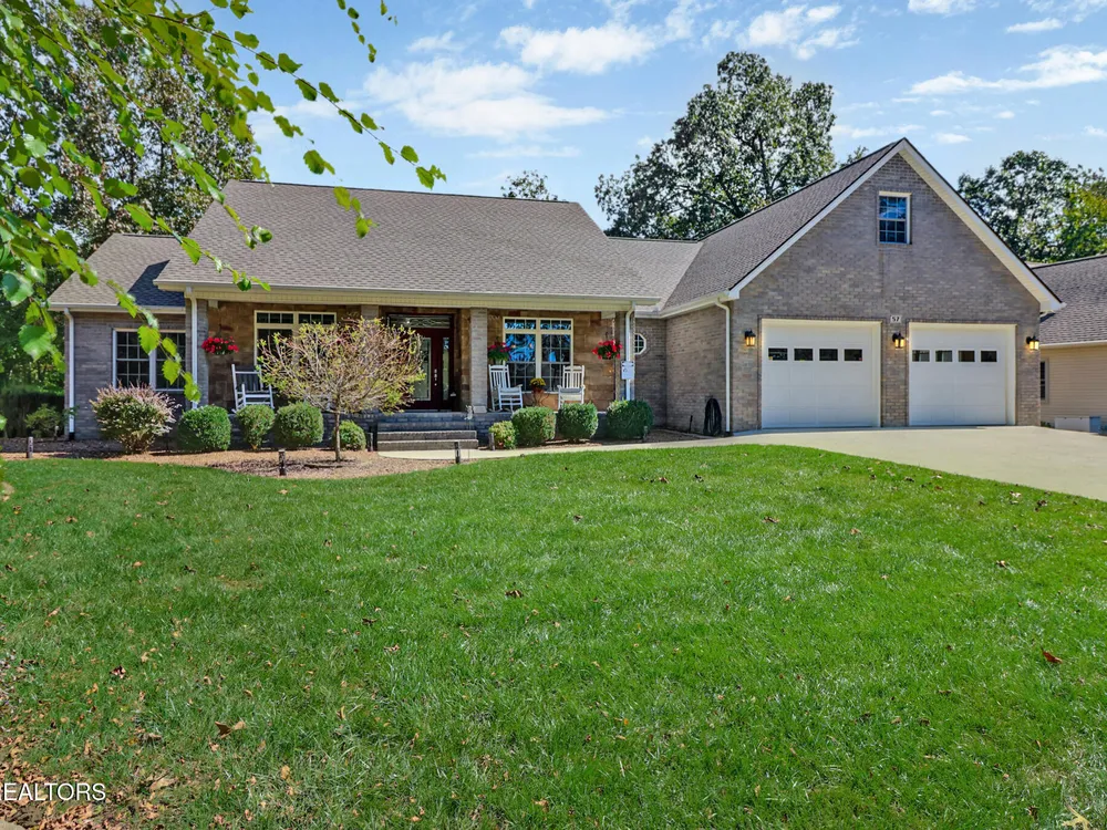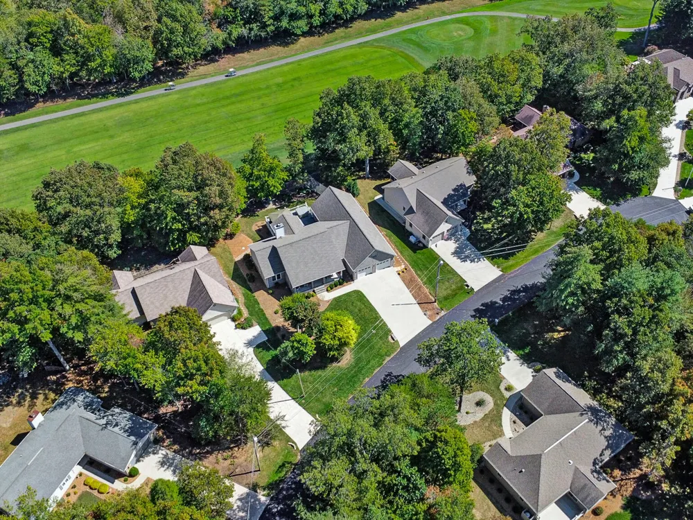 Custom Golf Front Home in Quiet Cul-de-Sac. Located in a peaceful cul-de-sac within one of the area's most desirable neighborhoods, this custom-built golf front home is a dream come true for golf enthusiasts. Located on the scenic #1 hole of The Brae Golf Course, the main living areas are designed to maximize the amazing views. A charming blend of stone and brick welcomes you with a covered front porch leading into a spacious foyer. The great room impresses with soaring cathedral ceilings, a cozy stone fireplace with gas logs, (TV over fireplace conveys). This thoughtfully designed split-bedroom, open floor plan home offers both comfort and functionality. A bright four-season sunroom opens to a large deck, creating seamless indoor-outdoor living perfect for entertaining. The heart of the home is a gourmet kitchen featuring abundant custom cabinetry, a central island, walk-in pantry (pantry shelving conveys), and breakfast bar—ideal for casual dining. The adjacent dinette and a formal dining room provide flexible options for hosting. A private office/den with French doors is situated off the foyer, offering a quiet workspace. The primary suite is a true retreat, featuring a generously sized bedroom, luxurious en-suite bath with a jetted tub, walk-in shower, and dual walk-in closets. Two guest bedrooms each offer walk-in closets and private or semi-private bath access—perfect for visiting family or friends. Additional highlights include: Upper-level bonus room ideal for a media room, hobby space, or guest suite Well-equipped utility room with full sink and separate half bath Oversized garage and backup generator powering the essentials for peace of mind Expansive maintenance-free deck with hot tub, glass panel railings, and a gazebo with sunshades Professionally landscaped with irrigation, patio area perfect for relaxing or entertaining Buried 500 gallon propane tank Heat pump with gas emergency backup for warmth on the coldest nights New architectural shingle roof (September 2025) This exceptional home is designed for easy living and year-round enjoyment. Inside and out, it offers everything you need and more. Come see it in person to truly appreciate all it has to offer!