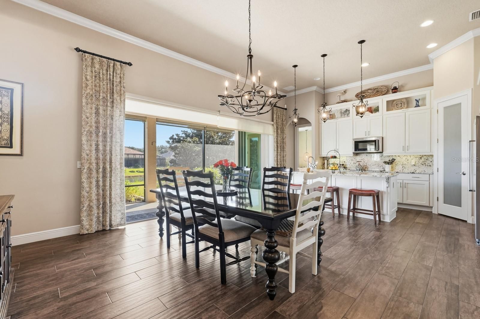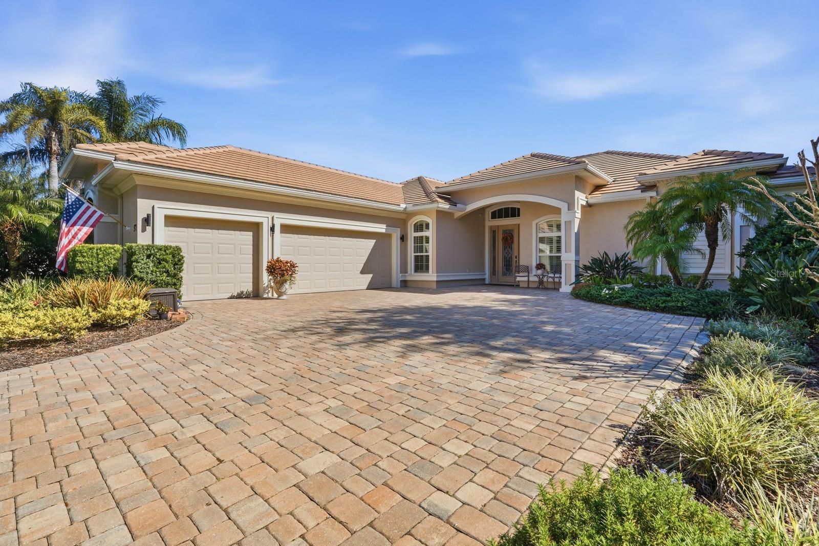 This exceptional home offers it all — views, privacy, and a prime location. The home features a spacious great room that flows effortlessly into the kitchen and dining areas, ideal for both entertaining and everyday living. Nearly every room overlooks the water, bringing natural beauty indoors. The bedrooms are arranged in a split floor plan for added privacy, and the home has been lovingly cared for with numerous thoughtful upgrades throughout. You’ll appreciate the 12-foot ceilings with elegant crown molding and coffered details. The kitchen boasts 42-inch cabinets, granite countertops, a separate island, and a walk-in pantry — a dream for anyone who enjoys cooking and gathering with friends and family. You will enjoy the money saving features that come with having a well for irrigation water and the impact windows with both insurance and electric bills. Additional highlights include custom window treatments, a dedicated office space, and a 3-car garage. The end result is your opportunity to own a truly beautiful, sensational home. Schedule your private showing today and experience it for yourself!