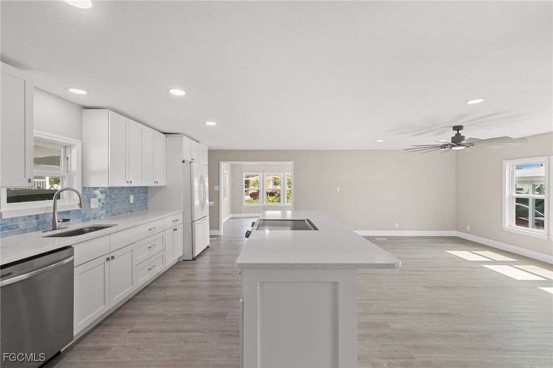 - Dryer, Dishwasher, Electric Cooktop, Disposal, Ice Maker, Refrigerator, Washer