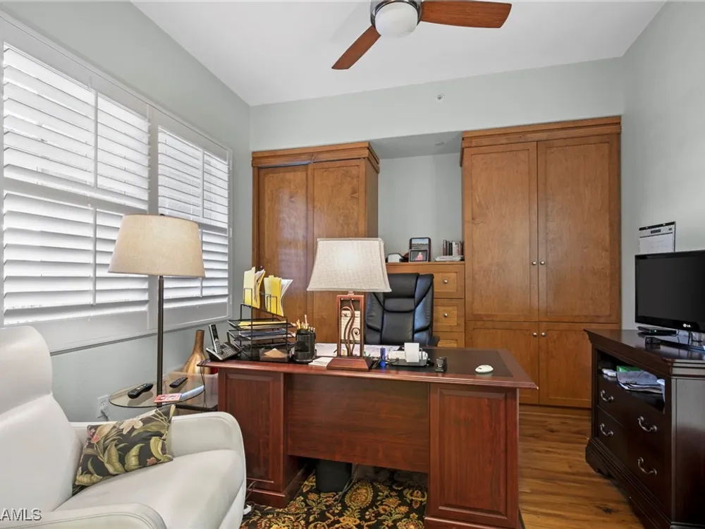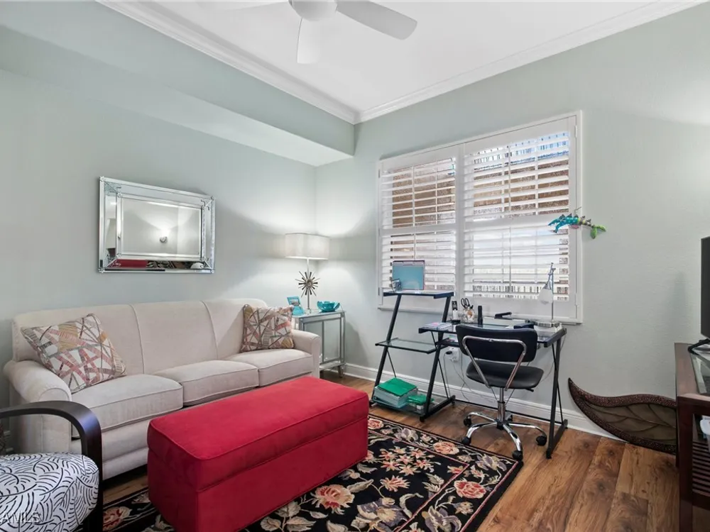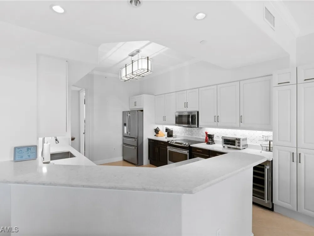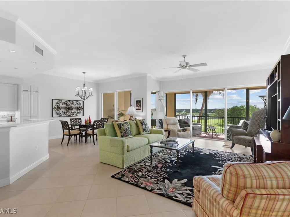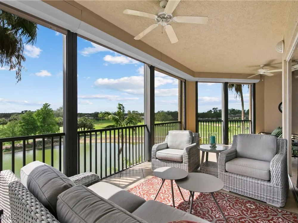 Live Above It All – Panoramic Views at Vista Pointe Experience elevated living in one of Naples' most coveted gated communities—Vista Pointe—where uninterrupted lake and golf course views steal the show. This spacious 2-bedroom + den luxury condo is perfectly positioned to capture sweeping vistas of the sparkling lake and lush fairways from your expansive wraparound, screened-in terrace. Start every morning with sunrise views and unwind each evening with tranquil, scenic backdrops that feel like a private retreat. Step inside to a well-maintained home designed for both style and comfort. The open-concept layout flows seamlessly from the living area to the kitchen—ideal for entertaining or quiet relaxation. Tile flooring runs throughout, complemented by warm wood accents in the bedrooms and den. The renovated kitchen features sleek quartz countertops, refreshed cabinetry, stainless steel appliances, and a spacious pantry. A versatile den with custom closet system can easily serve as a third bedroom, office, or creative space. Your primary suite was reimagined in 2020, offering thoughtful upgrades and expanded storage to create a spa-like retreat. Additional perks include a deeded underground garage space, ample outdoor parking, and electric storm shutters for added peace of mind. Enjoy access to an array of resort-style amenities—bike and jog paths, pool and spa, fitness center, putting green, and more. Optional membership to The Vineyards Country Club adds world-class golf, tennis, pickleball, and dining to your lifestyle. Highlights: Breathtaking golf course & lake views Expansive wraparound screened terrace 2 beds + den | 2 baths | 2,050+ sq ft Renovated kitchen & updated primary bath One assigned garage space + guest parking Optional country club membership Pet-friendly (with limits) This is your chance to own a view-focused sanctuary in Vista Pointe—where every day feels like a vacation, and the scenery never gets old.