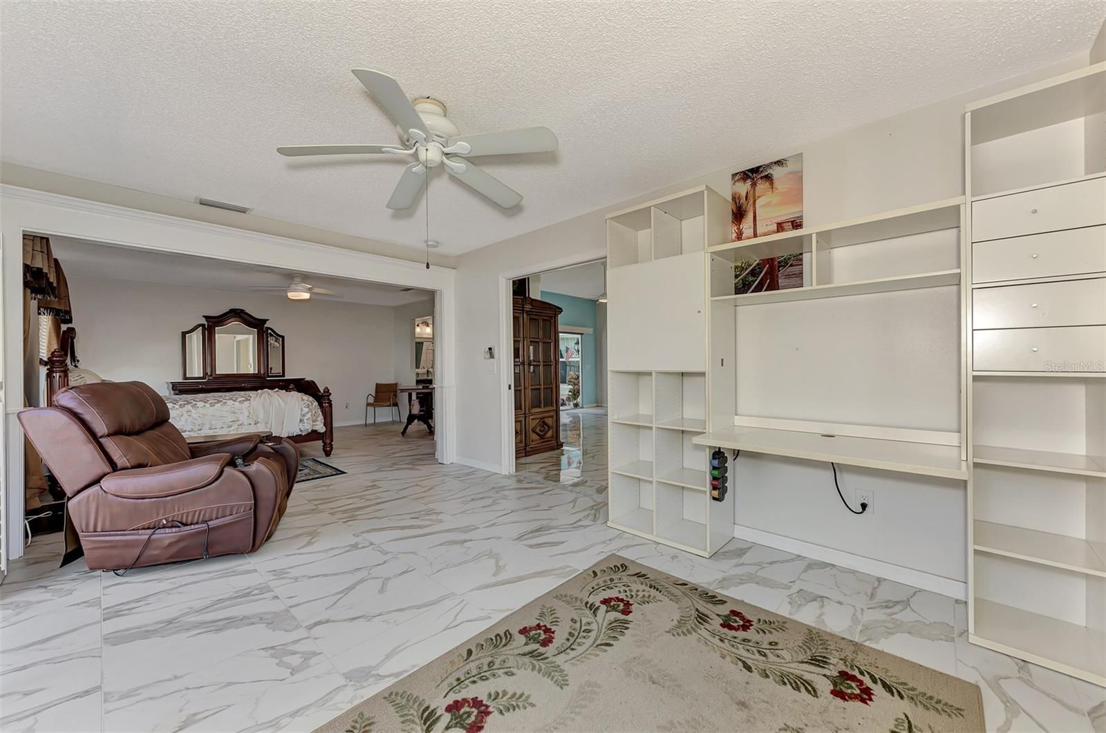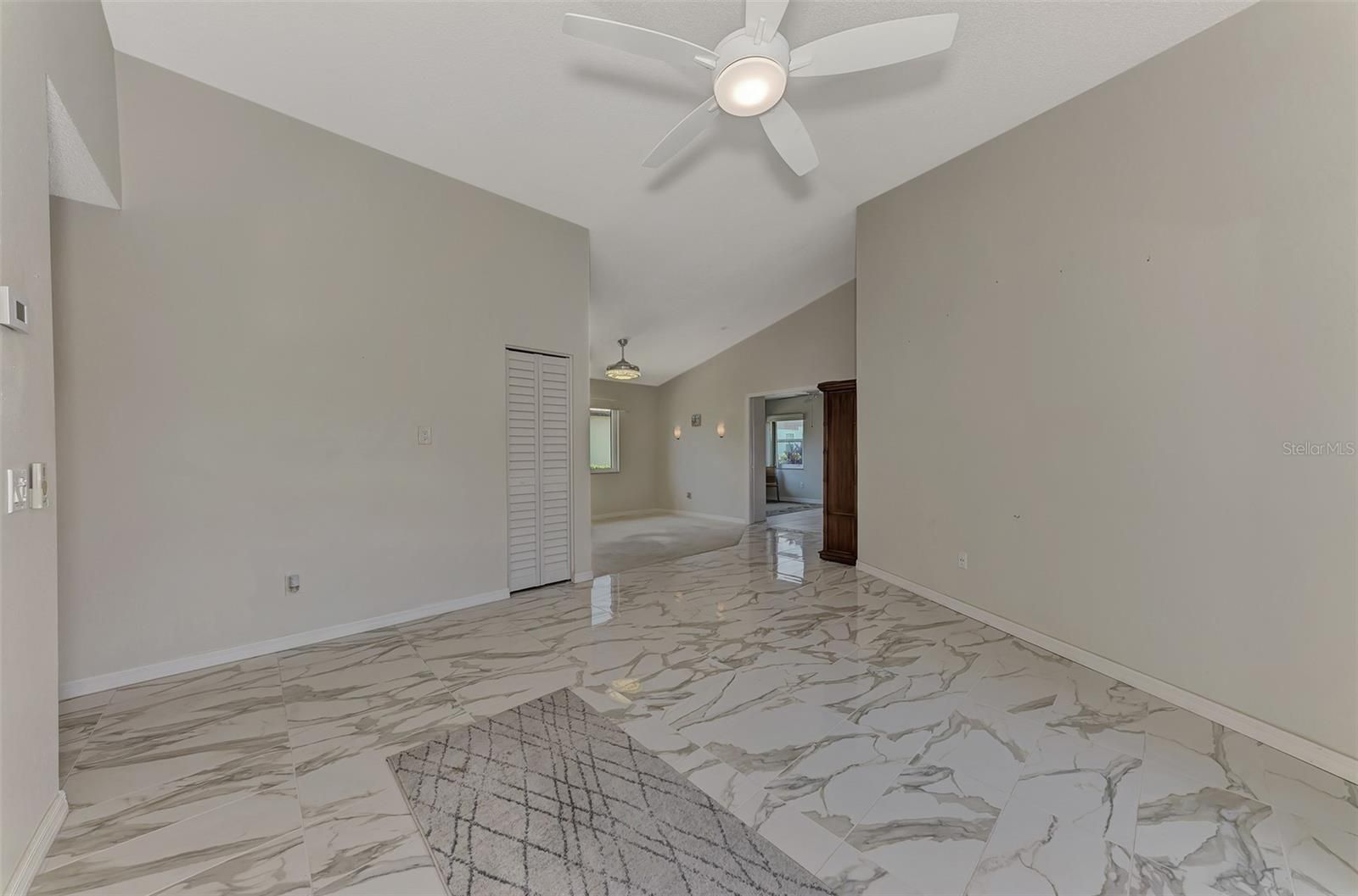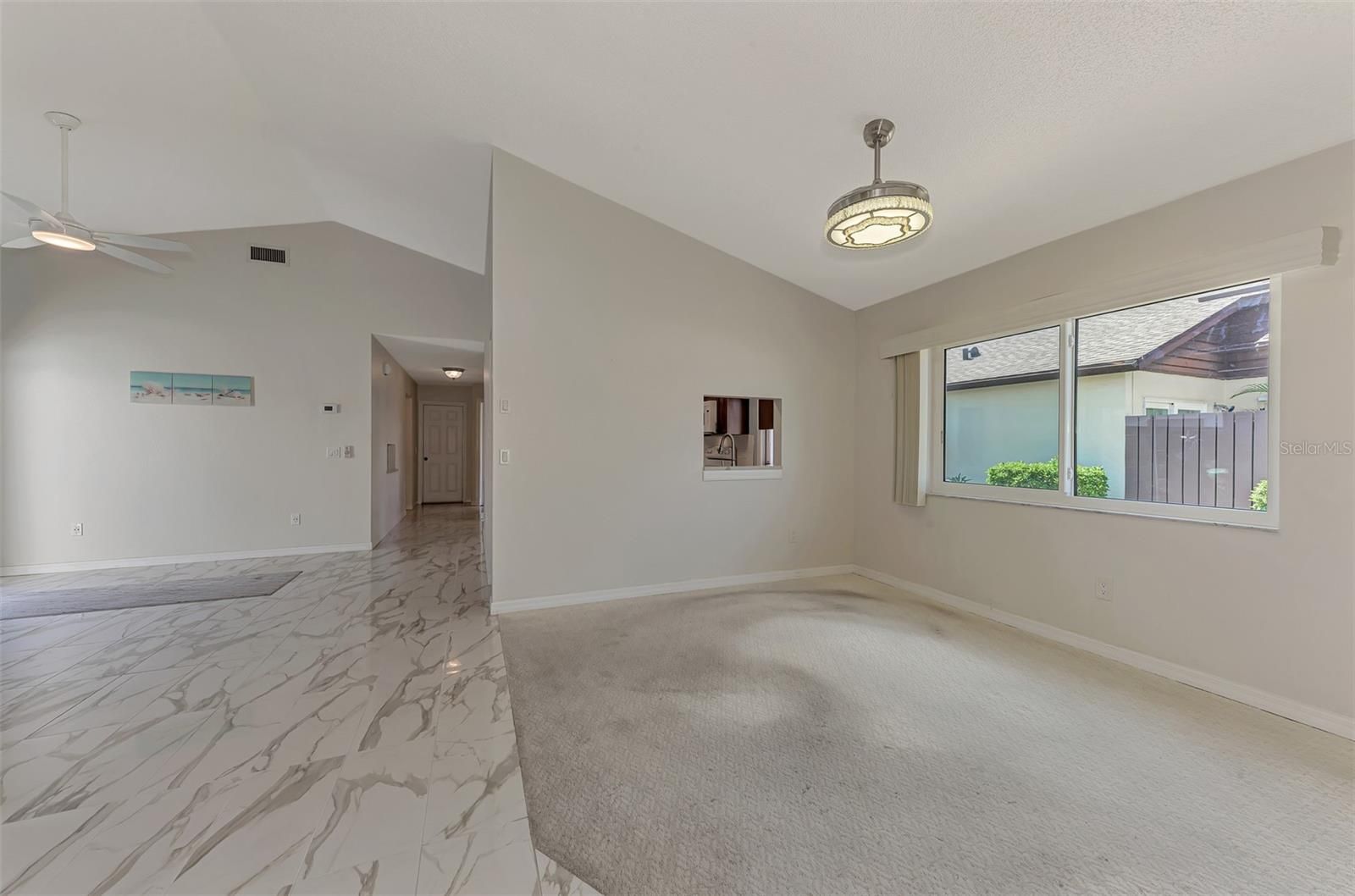 - Ceiling Fan(s), Eat-in Kitchen, Living/Dining Room, Open Floorplan, Main Level Primary, Split Bedrooms, Walk-In Closet(s), Window Treatments