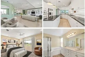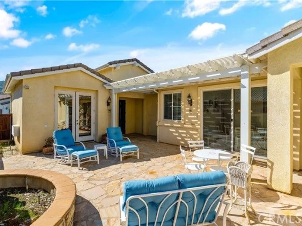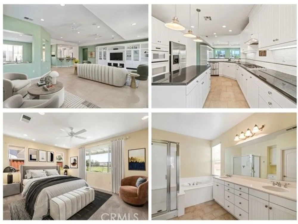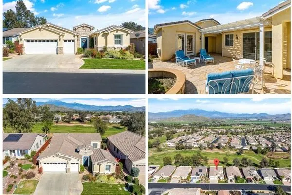 Stunning Championship 2 home in the gated Four Seasons Hemet community with golf course views! This 3-bed, 2.5-bath home includes a detached casita with 3/4 bath—perfect for guests or an office. Enjoy a gourmet granite kitchen with 5-burner stove, spacious great room with built-ins, and primary suite with built-ins and custom closet. Upgrades include central vacuum, soundproof walls, epoxy garage with cabinets, and flagstone courtyard with fountain and Alumawood patio covers. Resort-style 55+ amenities feature bistro, pool, spa, gym, clubhouse, pickleball, tennis, and more. Experience golf course living at its finest!