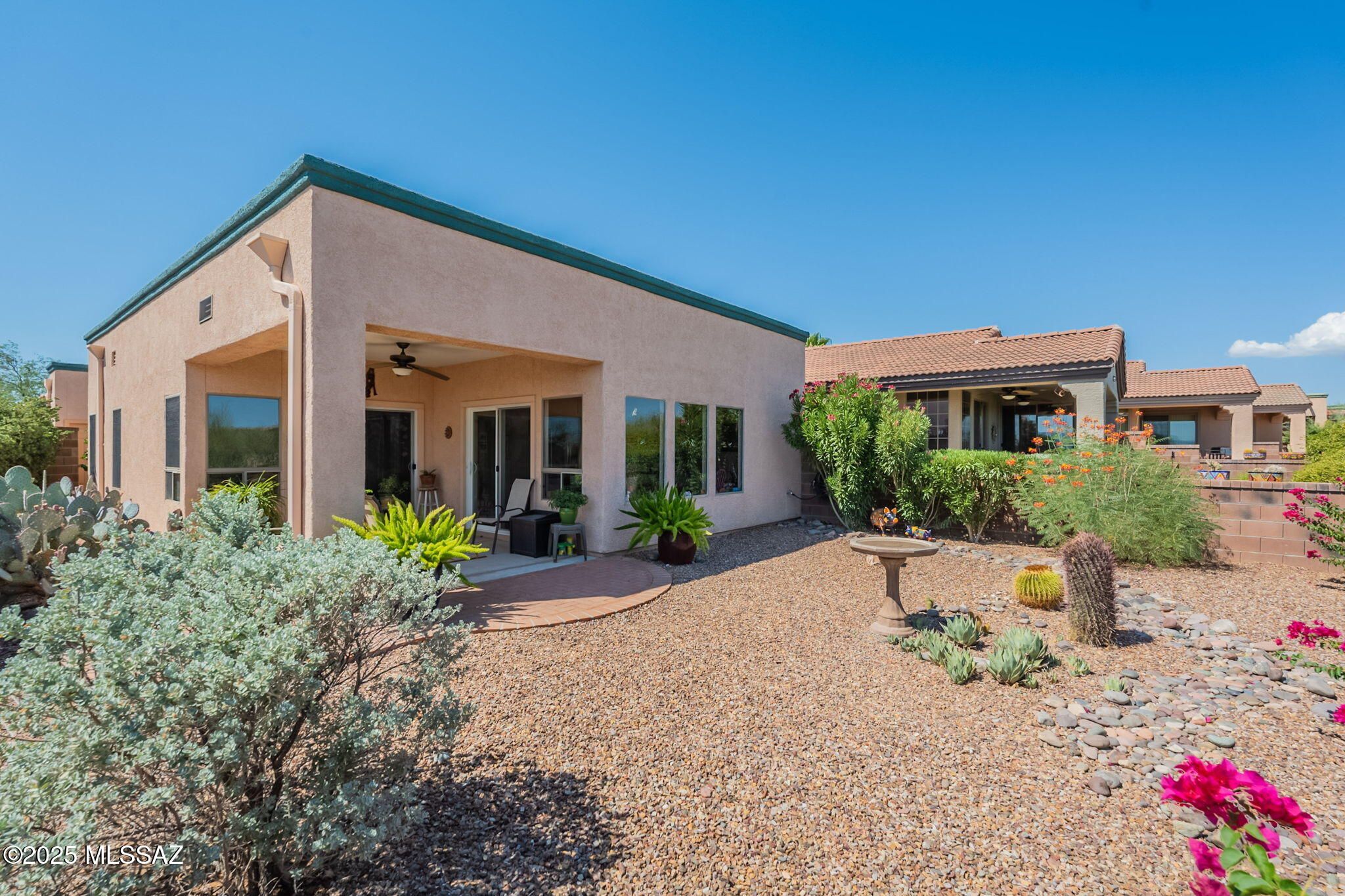Well maintained 2BD/2BA home in desirable Las Campanas Solano! Step thru the charming courtyard side entry into a light-filled open concept great room & dining area perfect for entertaining. Split bedrooms offer privacy, while the kitchen features a breakfast bar, nook, large pantry cabinet, stainless appliances and ample cabinet and counterspace. Step outside to a private enclosed & attractive back patio/yard with peekaboo mountain views, backing to a tranquil desert common area with no rear neighbors. The oversized 2-car garage has cabinets, storage & workbench. Upgrades include an updated flat/tile roof (Nov 2024), 4 window glass units (June 2025), HVAC (2018) and sliding glass doors (2018). Move-in ready with Southwestern charm & the GVR Las Campanas Center is just a short walk away!