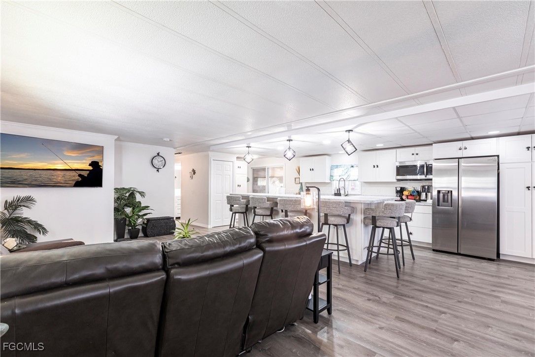 "Furnished Manufactured Home in a Boater's Dream Community" Welcome to your dream retreat! It's a move in ready Gem! This recently updated manufactured home is located in the vibrant community of Old Bridge Village; endless amenities. Whether you're looking for relaxation or recreation, this community has it all! Beautifully furnished home with spacious living areas, lots of natural light. Well equipped kitchen with modern appliances and a huge island for entertaining, or choose the large dining area for those more formal evenings, or al fresco on the outdoor patio facing the marina. Other features of the home; 2 bedrooms and 2 baths, light & bright den area that looks out to the marina, and a screen and a screened-in porch off the carport with storage room. Located just 1/2 block to the clubhouse, tennis, marina, kayak launch and completely renovated swimming pool. In addition community offers pickleball & fitness center and 24/7 Guard gate. Are you a boater? Then look no further; slips available for rent, and easy access to the Caloosahatchee River. Enjoy a peaceful and active lifestyle in this incredible community! Perfect for seasonal or full-time living. Another fabulous plus is the community located just five miles to the vibrant downtown Fort Myers, offering lots of dining, entertainment, art venues, historical sites , parks and so much more.