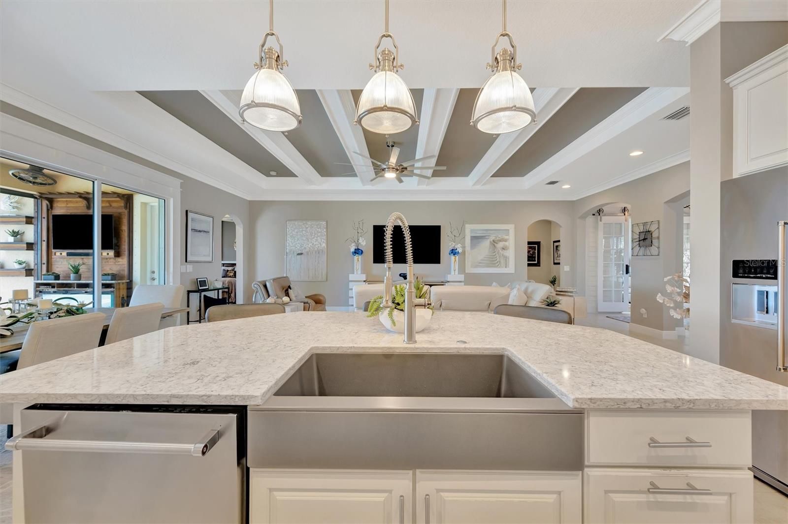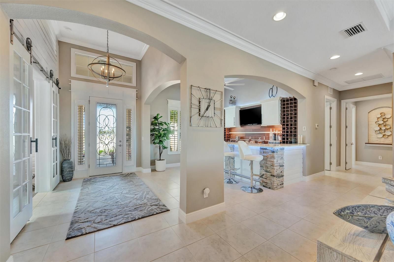 Waterfront Elegance in Tidewater Preserve--Welcome to your dream home in the exclusive gated community of Tidewater Preserve. Wake up to breathtaking sunrises over the Manatee River where every day feels like a vacation. This stunning 4-bedroom, 3 full bath single-family residence with a designated office/den, convenient for working from home or as a private sitting room, offers 2,601 square feet of luxurious living space, perfectly situated near pristine beaches, premier shopping, and a vibrant dining scene. When you step inside you will be embraced by an open-concept layout designed to inspire gatherings and create lasting memories. The coffered ceilings, custom woodwork, crown molding, elegant tile flooring with wood flooring in all bedrooms, and plantation shutters throughout adds timeless charm and warmth. The gourmet kitchen is a chef’s dream, featuring beautiful quartz countertops, upgraded stainless steel appliances, a granite farmhouse sink, and abundant cabinetry. Imagine hosting friends at the elegant custom bar with a mini fridge and ice maker, where laughter flows as freely as the drinks. Outside, your private saltwater heated pool will invite you to savor the Florida sunshine and tranquil waterfront views. Landscaping lights set the perfect mood for evening relaxation while the roll down automatic sun/wind shade screen provides protection from unwanted weather. The new 4-ton AC unit with air handler ensures comfort and style in every corner. A new 2 car garage door opener with security camera was just installed, and a portable generator is also included. Beyond your doorstep, Tidewater Preserve offers a vibrant lifestyle with resort-style amenities including a gated entry with 24/7 security, an on-site private marina with boat slips for rent, tennis courts, a kayak and canoe launch, scenic trails, dog park, and a clubhouse with 2 fitness centers. Three community pools add to the coastal resort ambience. A dedicated lifestyle coordinator curates neighborhood events throughout the year fostering a warm and welcoming community where neighbors become friends. Come experience the perfect blend of elegance, comfort, and community in Tidewater Preserve — your waterfront sanctuary awaits.