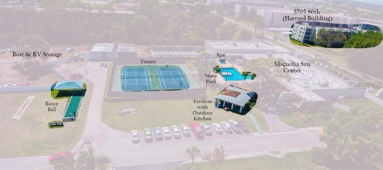 - Includes: Clubhouse, Elevator(s), Fitness Center, Laundry, Pickleball, Pool, Recreation Facilities, Shuffleboard Court, Storage, Tennis Court(s)