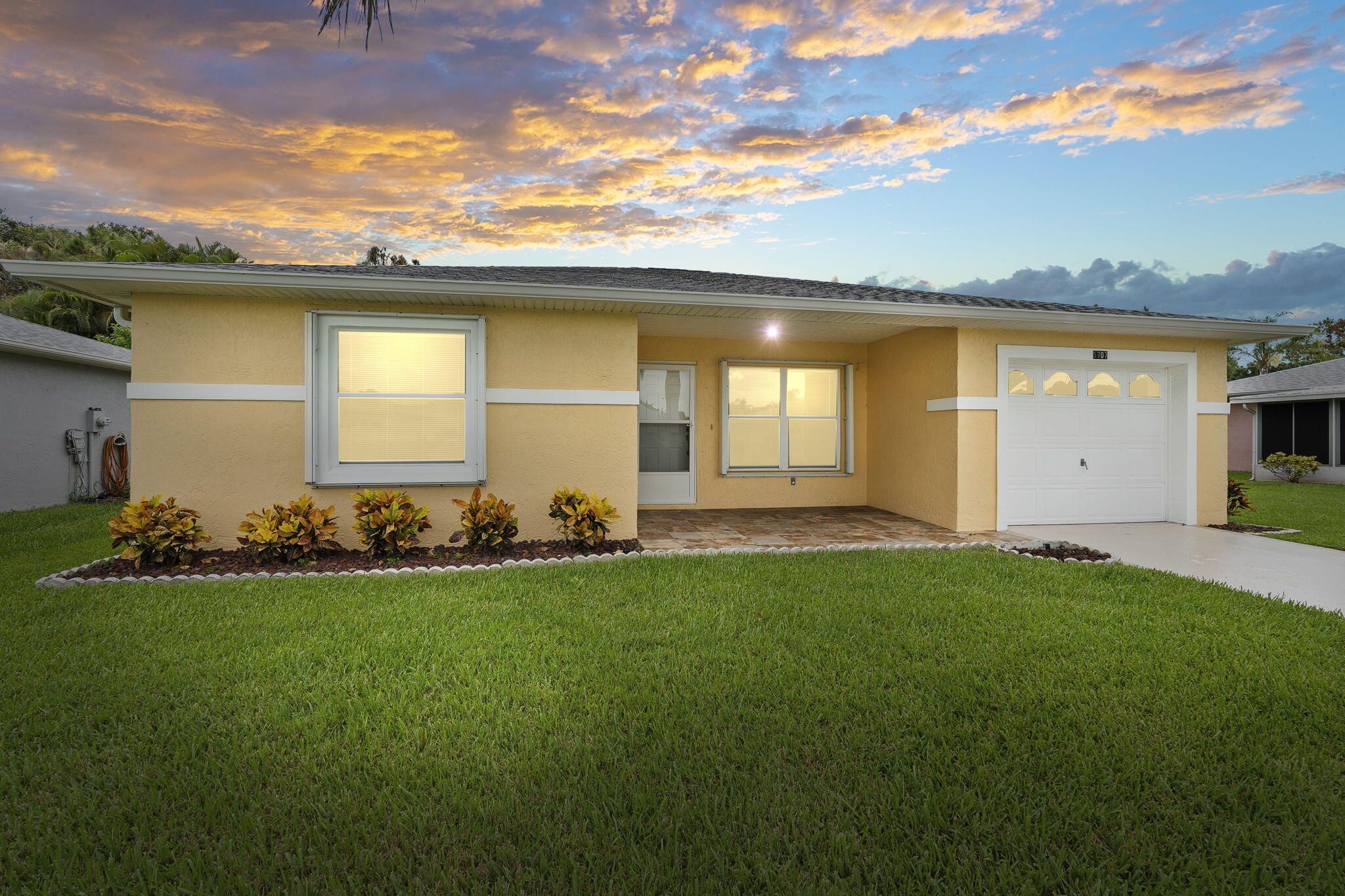 MOVE IN READY! Charming 2BR/2BA CBS home in Palm Grove, a 55+ gated community in Fort Pierce. Offering 1,135 sq. ft., this home features tile floors, open living/dining, bright kitchen, and a primary suite with private bath. Guest room and bath for visitors. Enjoy a 10x24 oversized screened porch, irrigation system, and one-car garage. Roof 2019, AC 2025. Low-maintenance yard. HOA includes water, sewer, cable, internet, lawn care, and top amenities: heated pool, pickleball, tennis, shuffleboard, clubhouse, fitness center & 24-hr security. Close to shopping, dining, beaches & medical.