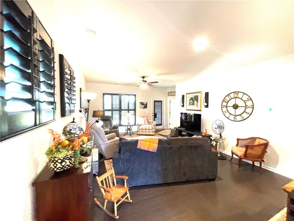 Gorgeous breathtaking scenery from your cozy covered back patio. Also covered front entrance,2 bedroom, 2 baths and a loft/bonus room. Home In premier Del Webb Chateau Elan, one of the most sought-after 55+ adult active communities.The spacious primary suite offers amazing space, dual vanity, oversize walk in shower and closet The open-concept layout flows effortlessly from the gourmet kitchen to with dining area to the light filled living area. Stainless steel sink/appliances, chrome faucet, granite countertops, lots of cabinets/counter space and more. Walk in laundry room. The home was built just one year ago-like new! Numerous upgrades have been added within the past year including plantation shutters, rod iron fencing. master bedroom flooring, roll shade for patio and a beautiful trellis grapevine. Home is conveniently located to hospital, shopping and grocery stores. The amenities, includes golf, a clubhouse, indoor and outdoor pools and hot tubs, a full time activities director, state-of-the-art fitness centers, pickleball and tennis courts, bocce ball and scenic walking trails. Lawn maintenance also included in the HOA fees. This is a turnkey GEM! Enjoy living like each day is a vacation with an amazing view. There is a $300.00 annual fee to care for the yard within the fence.