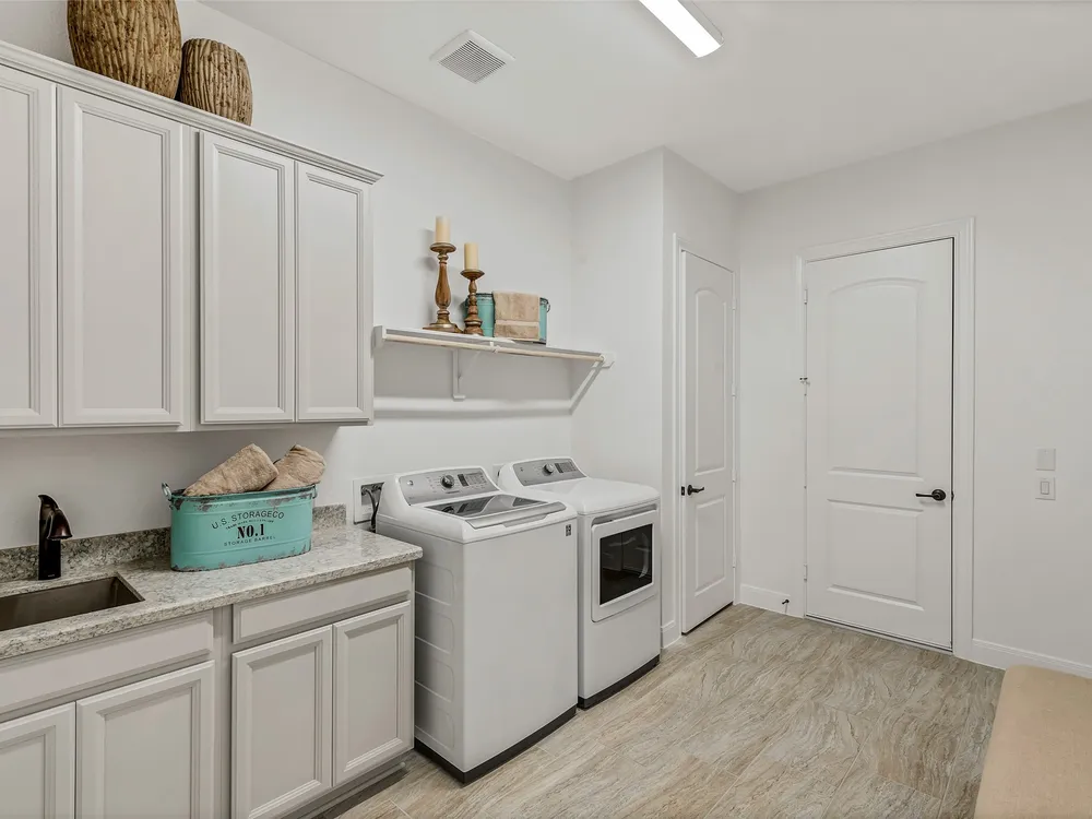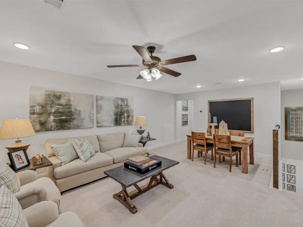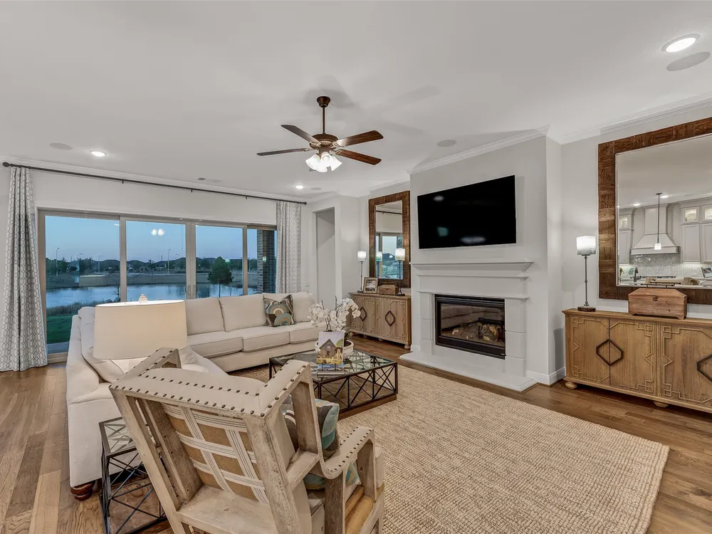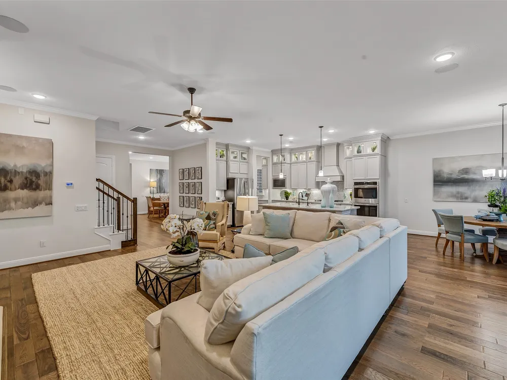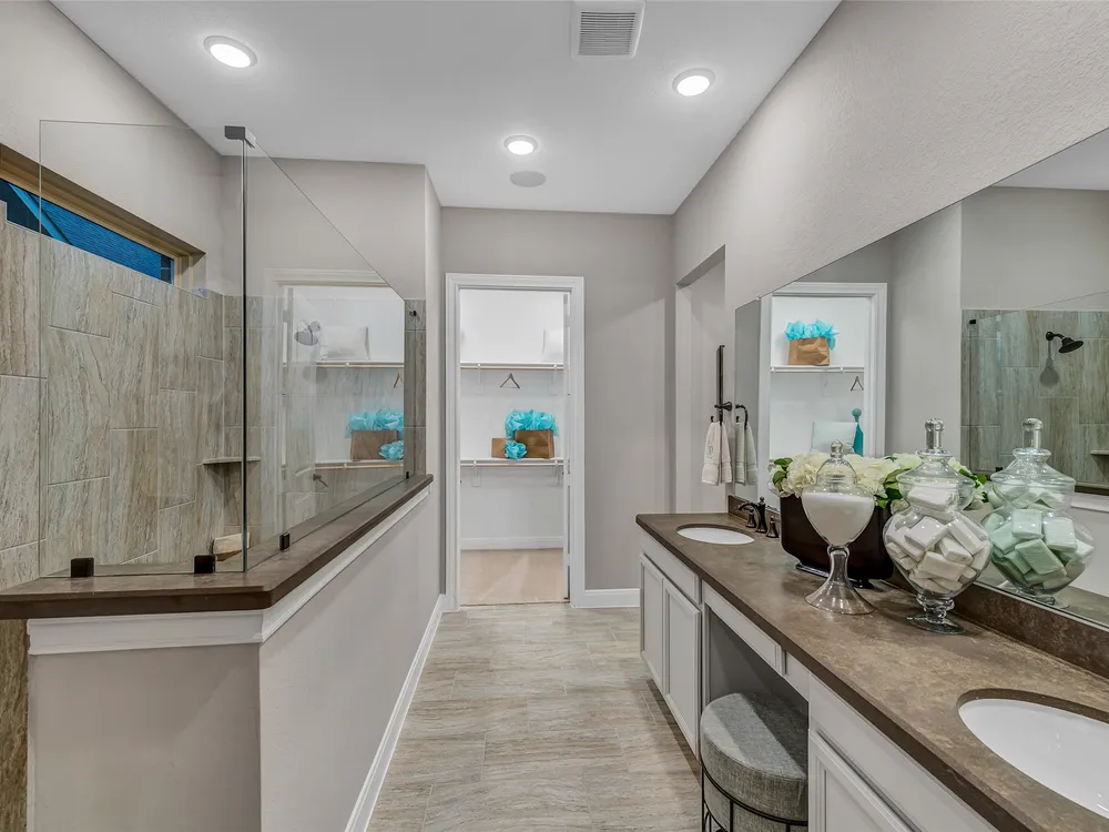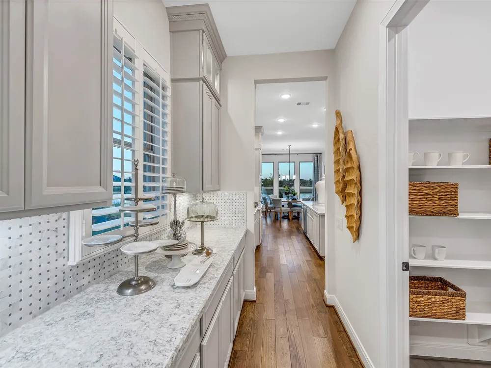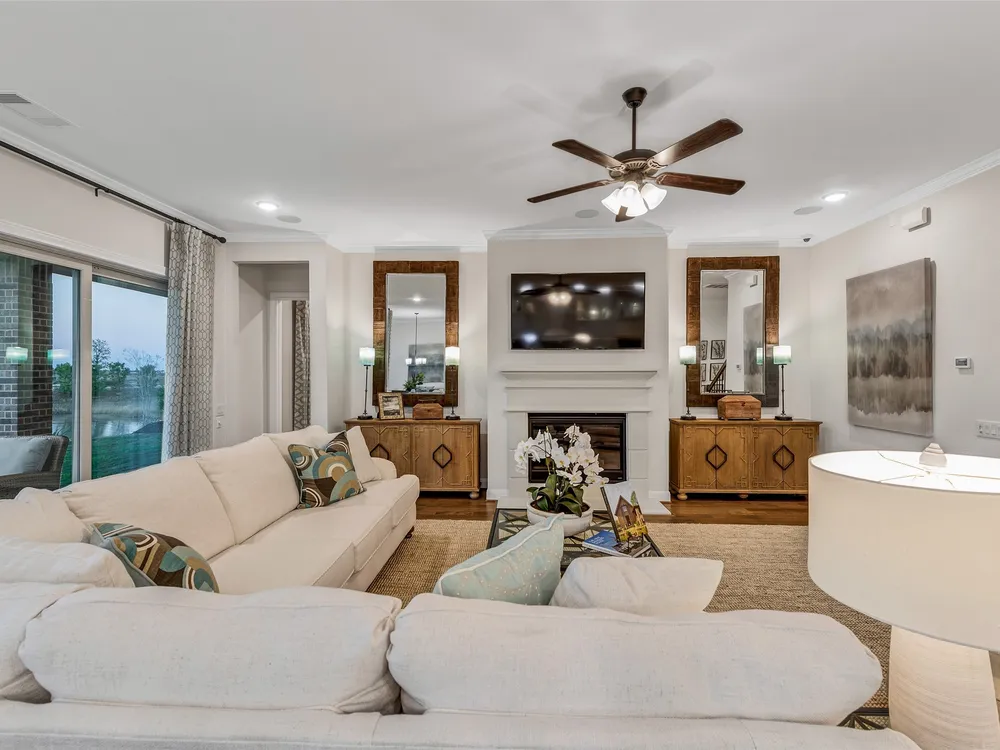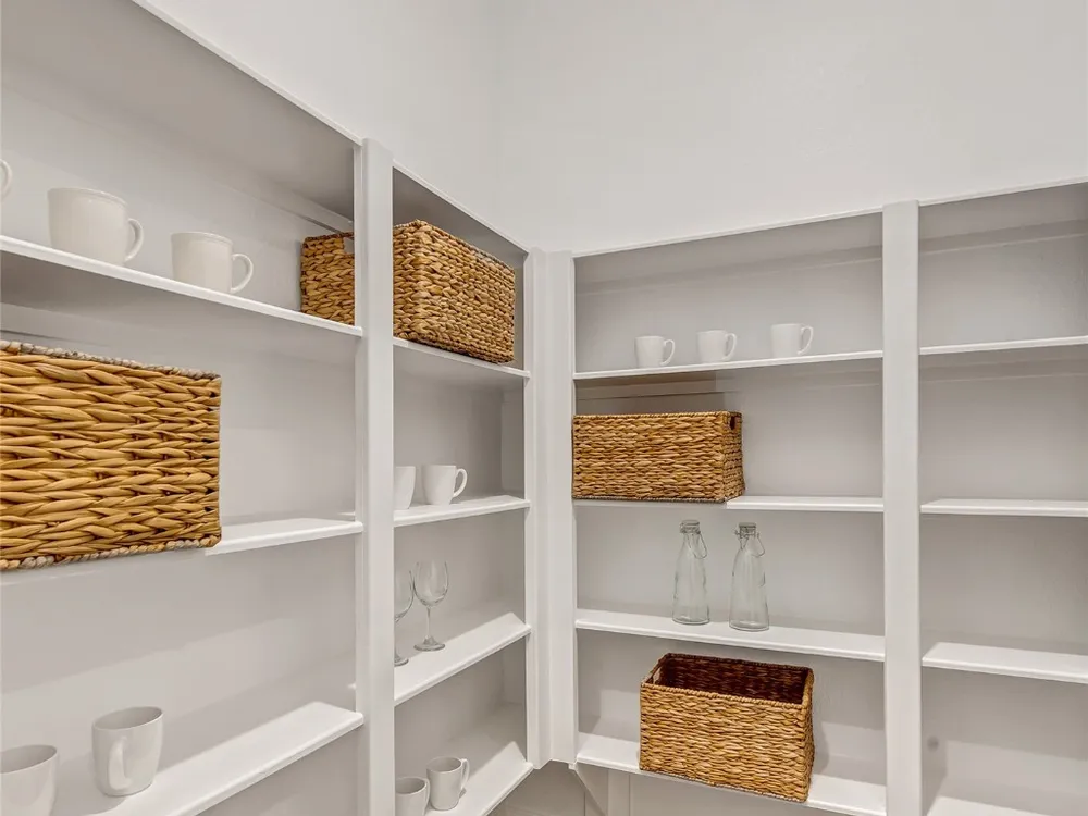 - Crown Molding, Double Vanity, Kitchen Island, Kitchen/Family Room Combo, Separate Shower, Makeup/Vanity Space, Walk-In Pantry, Window Treatments, Ceiling Fan(s), Programmable Thermostat