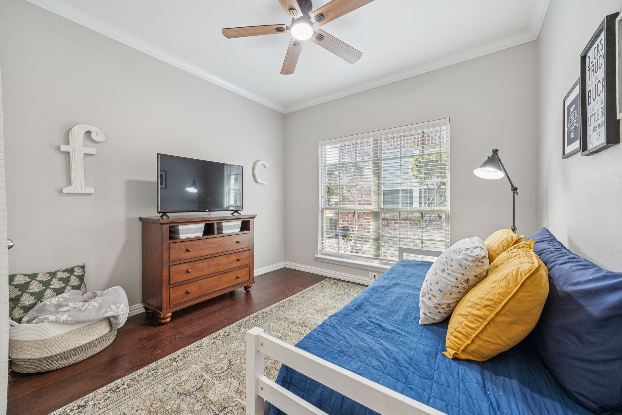 scover effortless living in this impeccably maintained single-story townhome nestled within the coveted Villas in the Park community in Fairview. Designed for comfort, simplicity, and style, this residence offers three bedrooms, two full baths, and a two-car garage—ideal for those seeking a refined lock-and-leave lifestyle. Sunlight pours in through an expansive wall of windows, filling the home with a light, airy ambiance. Classic plantation shutters throughout add timeless character while offering privacy and energy efficiency. The thoughtfully designed kitchen features granite countertops, generous storage, and updated appliances, making everyday living and entertaining a breeze. Adjacent to the kitchen, the dining area showcases a striking barrel ceiling, adding architectural interest, while French doors lead to a private study—perfect for remote work, a reading retreat, or a creative space. The primary suite is a peaceful haven, complete with a custom walk-in closet and a spa-inspired bath offering dual vanities, an oversized shower, and ample linen storage. Two additional bedrooms with rich wood flooring provide flexibility for guests, hobbies, or wellness space. Step outside to a tranquil, landscaped patio accented by a charming pergola—an inviting spot for morning coffee, evening gatherings, or quiet relaxation. A conveniently located laundry room just off the kitchen enhances the home’s functional layout. Residents enjoy access to community amenities, including a resort-style pool, fitness center, and green space, all while being just steps from the Village of Fairview. Walk to dining, shopping, and the movie theater, with quick access to Highway 75 and 121 for easy commuting. Low-maintenance, single-level living in a prime location—this home truly offers the best of comfort, convenience, and lifestyle.