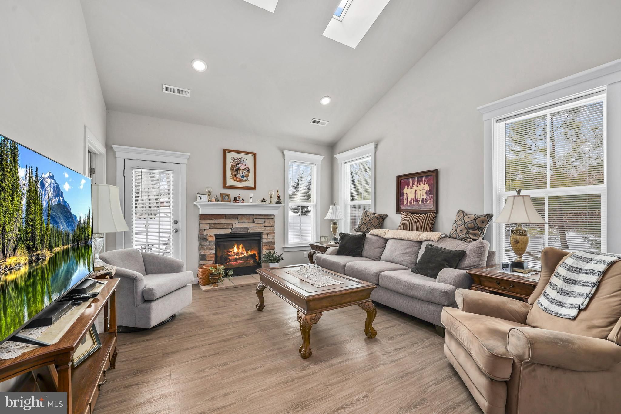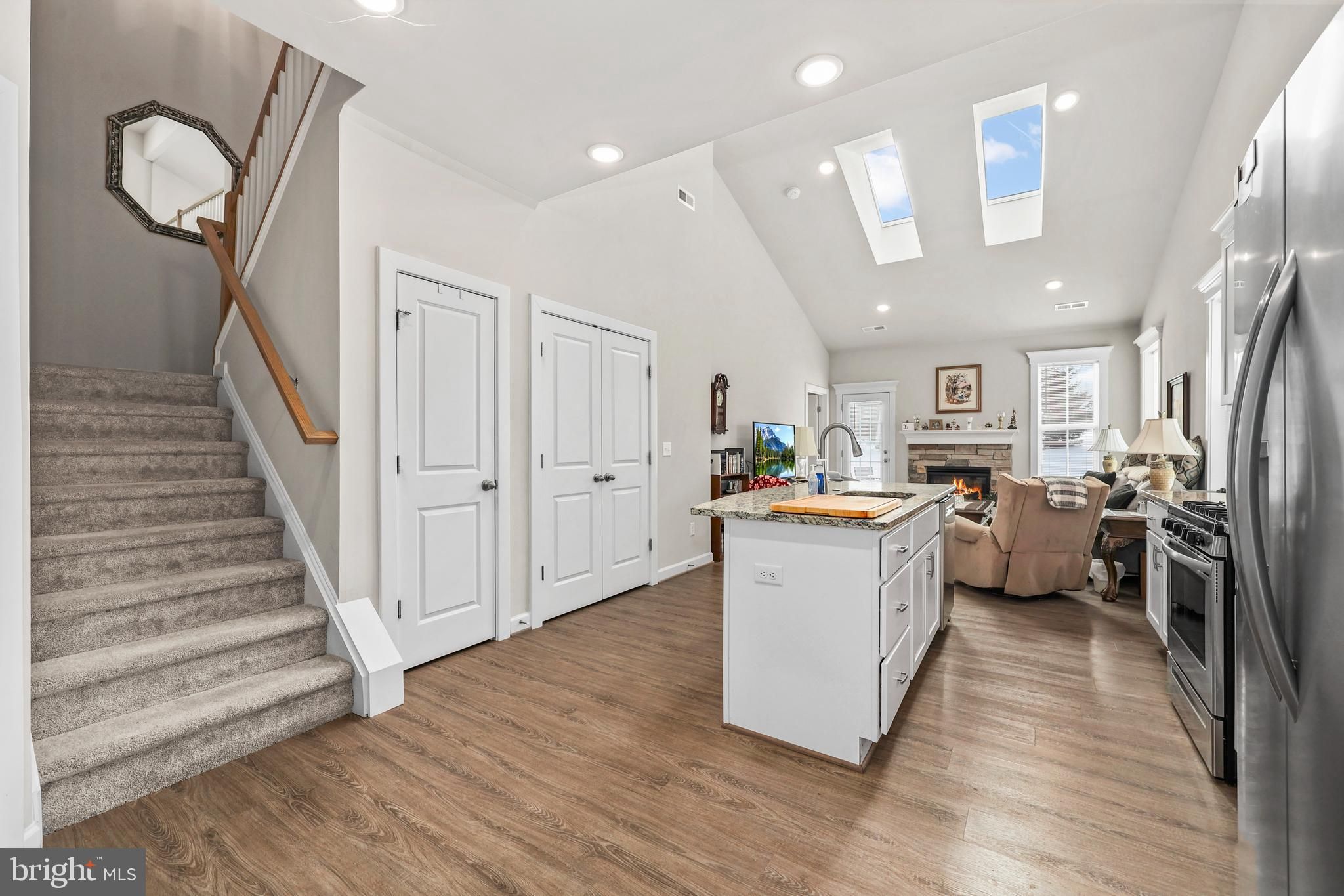 This is a 55+ community! First floor primary suite. Welcome to modern, low-maintenance living in this stunning 2021-built townhome, conveniently positioned to shopping areas on Rt. 3. This 3-bedroom, 2.5-bath residence offers approximately 1,916 square feet of bright, open-concept space designed for today's lifestyle. Step inside to a welcoming main level featuring a spacious living area that flows seamlessly into a well-appointed kitchen and dining space—ideal for entertaining or everyday family meals. The kitchen boasts a large island, white cabinets, granite countertops, and stainless steel appliances as well as an ample pantry. The spacious family room beckons with a cozy fireplace and two skylights that provide plentiful sunlight. The main-level primary suite provides a peaceful retreat with cathedral ceilings and two walk-in closets. The adjacent master bath offers tiled floors and walls, dual sinks, and a walk-in shower. The upper level features a spacious loft as well as two additional bedrooms and a full bath, offering flexibility for family, guests, or a home office. Built in 2021, this like-new home combines energy-efficient construction, modern design elements, and the charm of Fredericksburg's growing suburbs. Whether you're a first-time buyer, downsizing, or seeking a turnkey property, this residence delivers comfort, style, and location in one exceptional package. Don't miss the opportunity to make this move-in-ready gem your own—schedule a showing today!