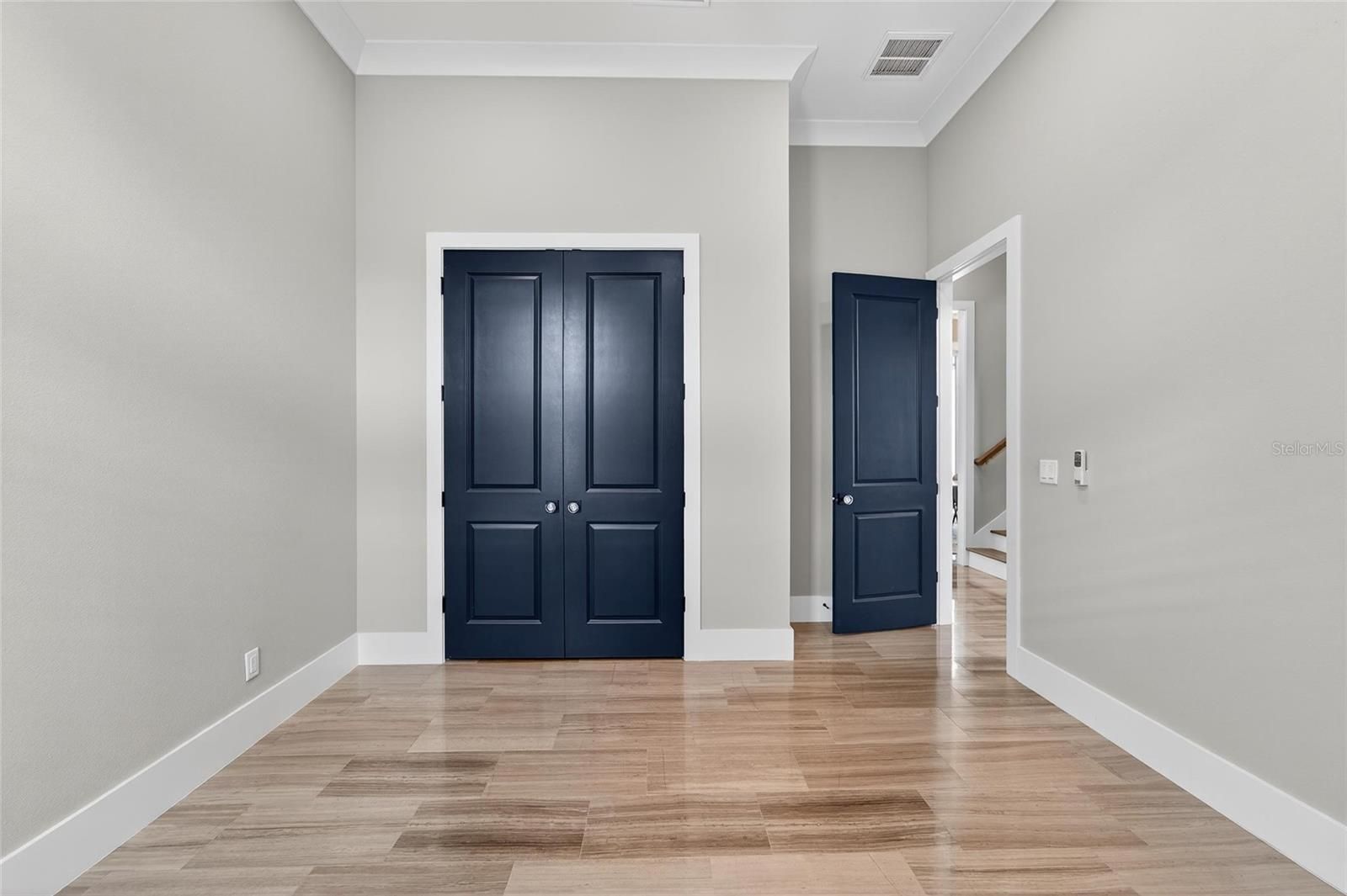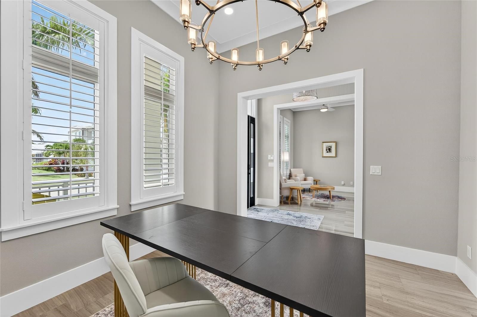- Ceiling Fan(s), Crown Molding, Eat-in Kitchen, High Ceilings, In-Wall Pest Control, Kitchen/Family Room Combo, Living/Dining Room, Open Floorplan, Main Level Primary, Tray Ceiling(s), Walk-In Closet(s), Window Treatments
