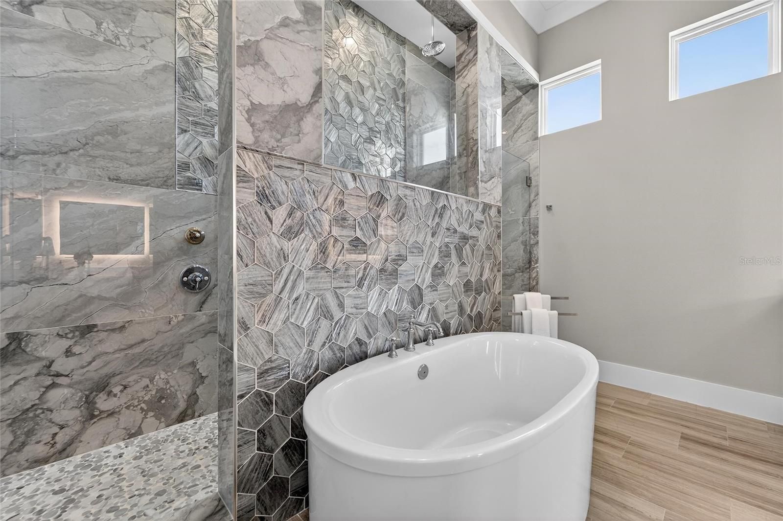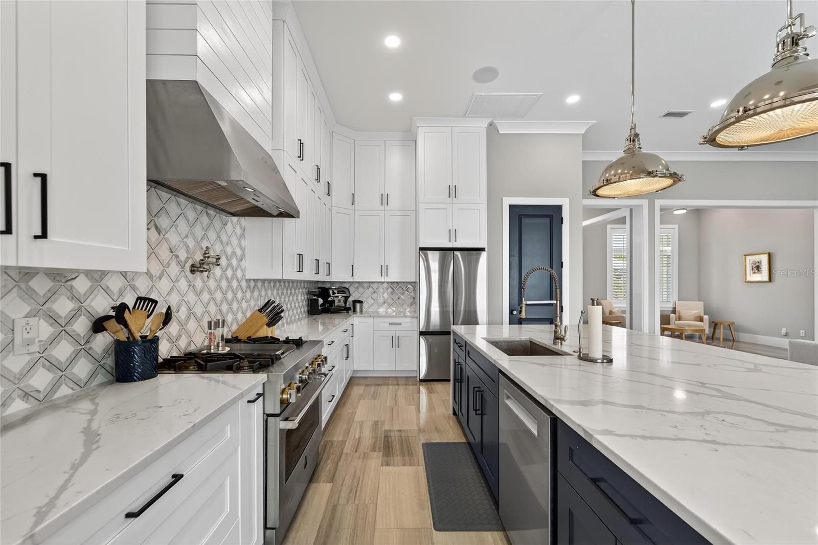 Under contract-accepting backup offers. Welcome to 5713 Tybee Island Drive, a stunning newer construction home with a brand-new private dock with 13k boat lift and direct saltwater access to Tampa Bay, located in the highly desirable gated community of Mira Bay. This exceptional property features four bedrooms, three and a half bathrooms, and a dock with lift ready for your boating adventures! Seller will provide a prepaid 2-year Home Warranty! Move with confidence into this better-than-new custom home. Designed with both functionality and luxury in mind, the home offers high-end stainless steel appliances, including a natural gas industrial oven, shaker cabinets that extend nearly to the ceiling, and a navy-blue island that provides abundant prep space and seating. Custom lighting accents the kitchen and dining areas. The open-concept layout includes 10-foot sliding glass storm-rated doors leading to an expansive lanai overlooking a beautiful pool and hot tub. Imported tile flooring adds elegance to the main living spaces, while the flexible formal dining or seating area provides versatility. The fourth bedroom features a loft, balcony views, a full bathroom, and a wine bar. The primary suite offers dual closets, split sinks, a soaking tub, and a custom walk-through shower. Two guest bedrooms are located on the main floor, separated by a full bathroom, with the large laundry room conveniently nearby. Additional features include built-in coat and shoe cubbies and a split three-car garage with a dedicated golf cart bay and driveway. The home also boasts hurricane-rated windows and doors, a durable metal roof, tankless water heater, central vacuum system, LED lighting, crown moldings, and tray ceilings for added detail. Outdoor living is enhanced by gas and electric connections for a custom outdoor kitchen and a custom dog run with a self-access door. Situated in Mira Bay, one of Apollo Beach’s most sought-after communities, residents enjoy access to amenities including a 24-hour fitness center, café, resort-style pool, and sports bar. This is a golf cart friendly community