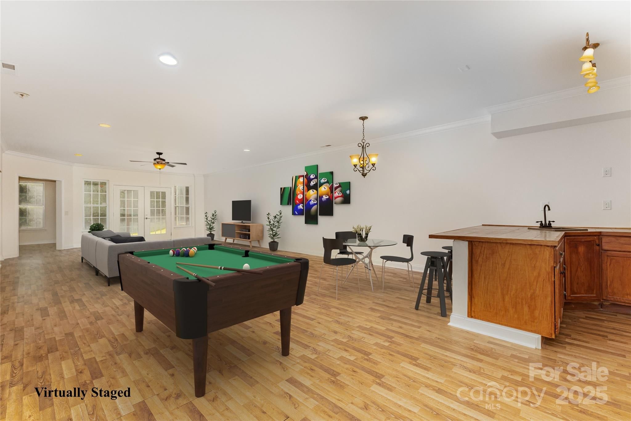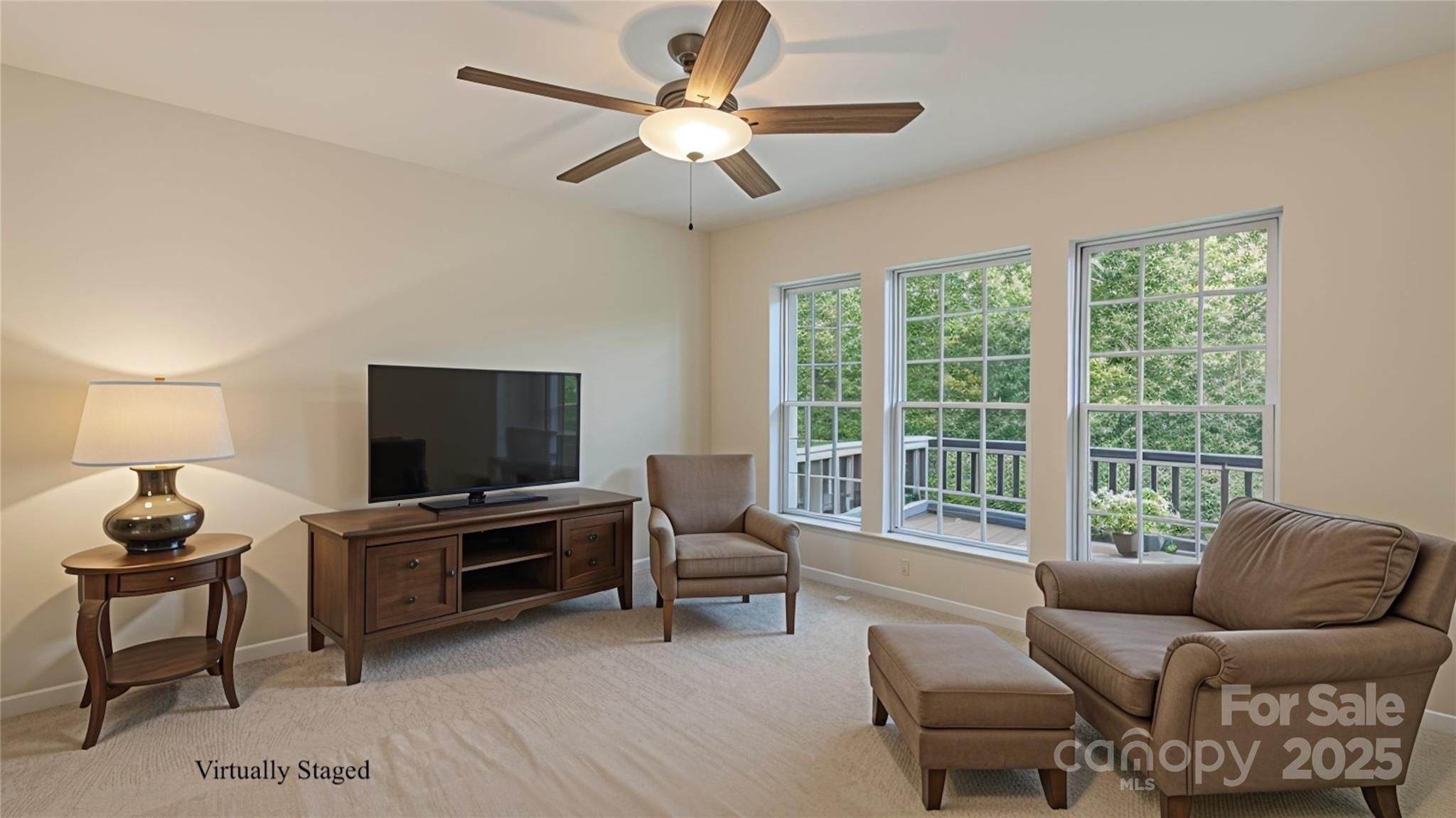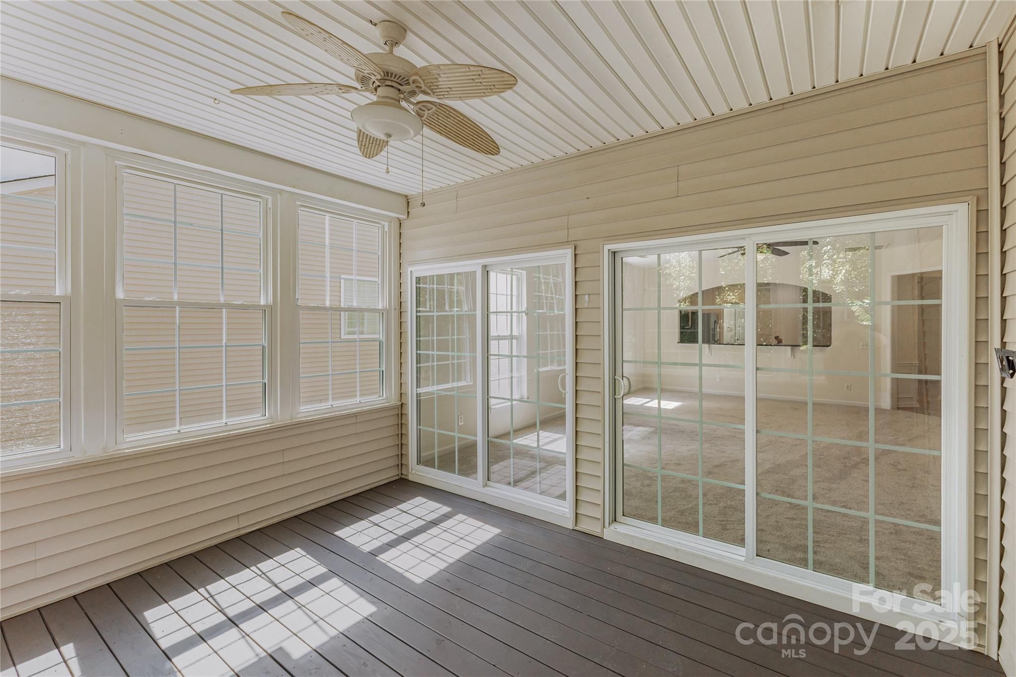 This beautiful Surrey Crest home sits on a charming tree-lined cul-de-sac in the highly sought after Grey Hawk neighborhood and is conveniently located near The Lodge amenity center and Water's Edge Park. Enjoy views of the beautiful rear woods from the primary bedroom, office/den, three-season room, and upper deck, as well as from the basement bedroom and living area, and covered lower patio. The beautiful kitchen has granite counters, a tile backsplash, stainless steel appliances, and fabulous pull-out shelves. The washer and dryer in the laundry room, which is conveniently located between the kitchen and the garage, both convey. The large basement has a great room with a bar/serving area, a flex room that would make a great study, office, or craft room, a large bedroom & bath, and a large unfinished utility room/storage area. This fabulous home has been freshly painted, has new carpeting, and is move-in ready! Now is the time to live your dream! Come and enjoy all the beautiful amenities & diverse activities this premier 55+ community has to offer! Sun City Carolina Lakes has a public golf course and is in close proximity to shopping, restaurants, medical facilities, recreation areas, entertainment, and more! HOA monthly assessment will be reduced to $321 in 2026.