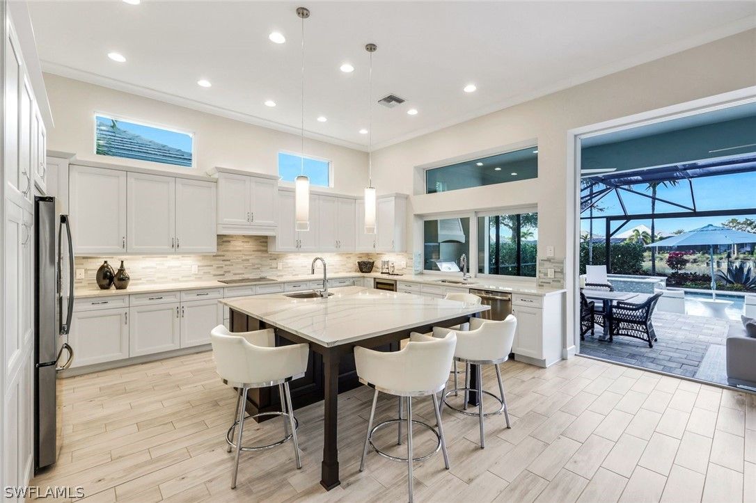 Welcome to 5715 Clarendon Drive, a beautifully maintained lakefront home in the Isles of Collier Preserve offering nearly 2,900 square feet with 3 bedrooms plus a den and 3.5 baths. Built in 2019, this bright and open floor plan features expansive windows that capture peaceful long lake views and fill the home with natural light. The great room layout flows seamlessly to the screened lanai with pool, spa, and outdoor kitchen, creating an ideal space for relaxing or entertaining. A three-car garage provides valuable storage. Ideally located just minutes from downtown Naples and the beaches, residents enjoy resort-style amenities, scenic trails, and waterways that make the Isles one of Naples’ most sought-after communities.