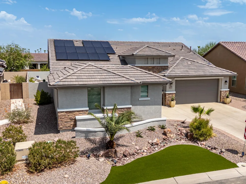 STUNNING furnished and solar-owned Miramonte model that impresses from the moment you arrive! This 2 bed, 2.5 bath home is loaded with upgrades, featuring a custom front door, luxury plank tile flooring, and an open floor plan with designer finishes and elegant furnishings. The chef's kitchen boasts high-end stainless appliances, granite counters, and a full-height backsplash. Step outside to your private oasis with extended pavers, pergola, pool & spa with heating/cooling, and a tranquil waterfall feature. The full 3-car garage offers epoxy floors, storage, and a mini-split AC. Added comfort with ADA-compliant features. This spectacular home is truly a MUST SEE!