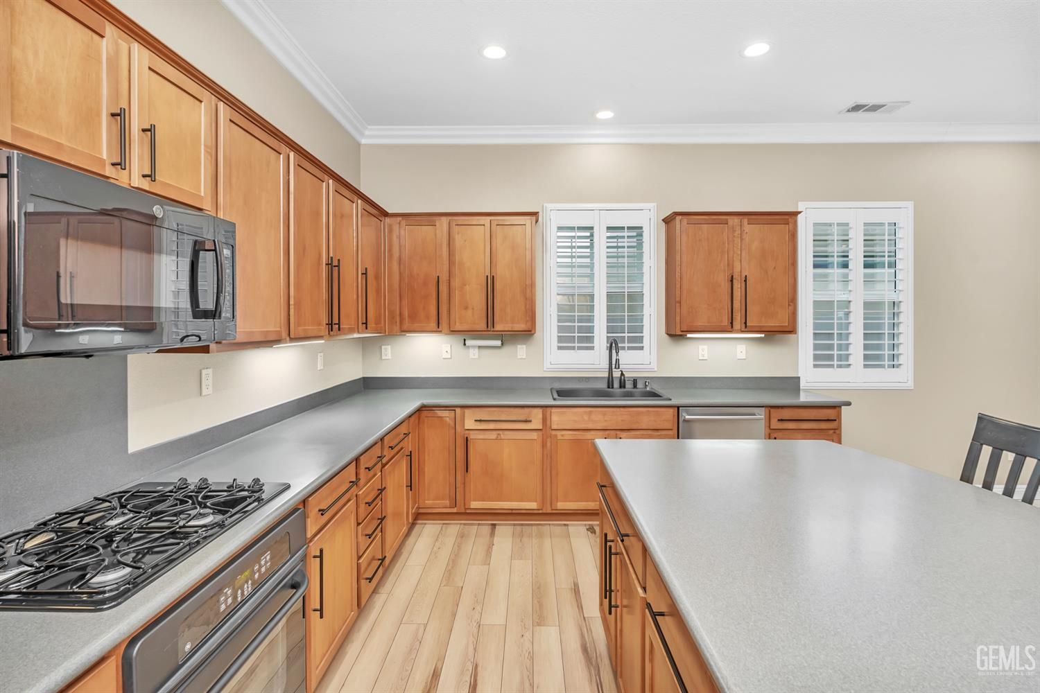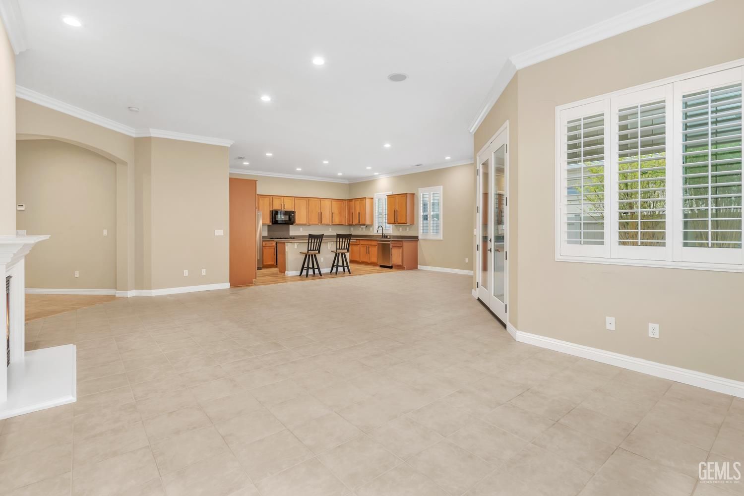 Solera at Kern Canyon, a gated 55+ community with resort-style living at its best. This popular split-wing floorplan features 2 bedrooms plus office/den, 2.5 baths, large great room with tile flooring open to dining area and kitchen. Inviting entry opens to great room with gas fireplace, surround sound speakers and double doors to covered patio. Large kitchen with island, lots of cabinets, pantry, newer DW, gas range and newer refrigerator. Primary suite bath with soaking tub, large shower, dual sinks, large walk-in closet. Guest bedroom has private bath. Indoor laundry w/sink and cabinet. Shutters throughout; tile & luxury vinyl flooring. Covered patio with custom stamped concrete and easy to maintain yard. Community has clubhouse, gym, pool, spa, tennis, pickleball and bocce ball courts plus lots of clubs and activities.