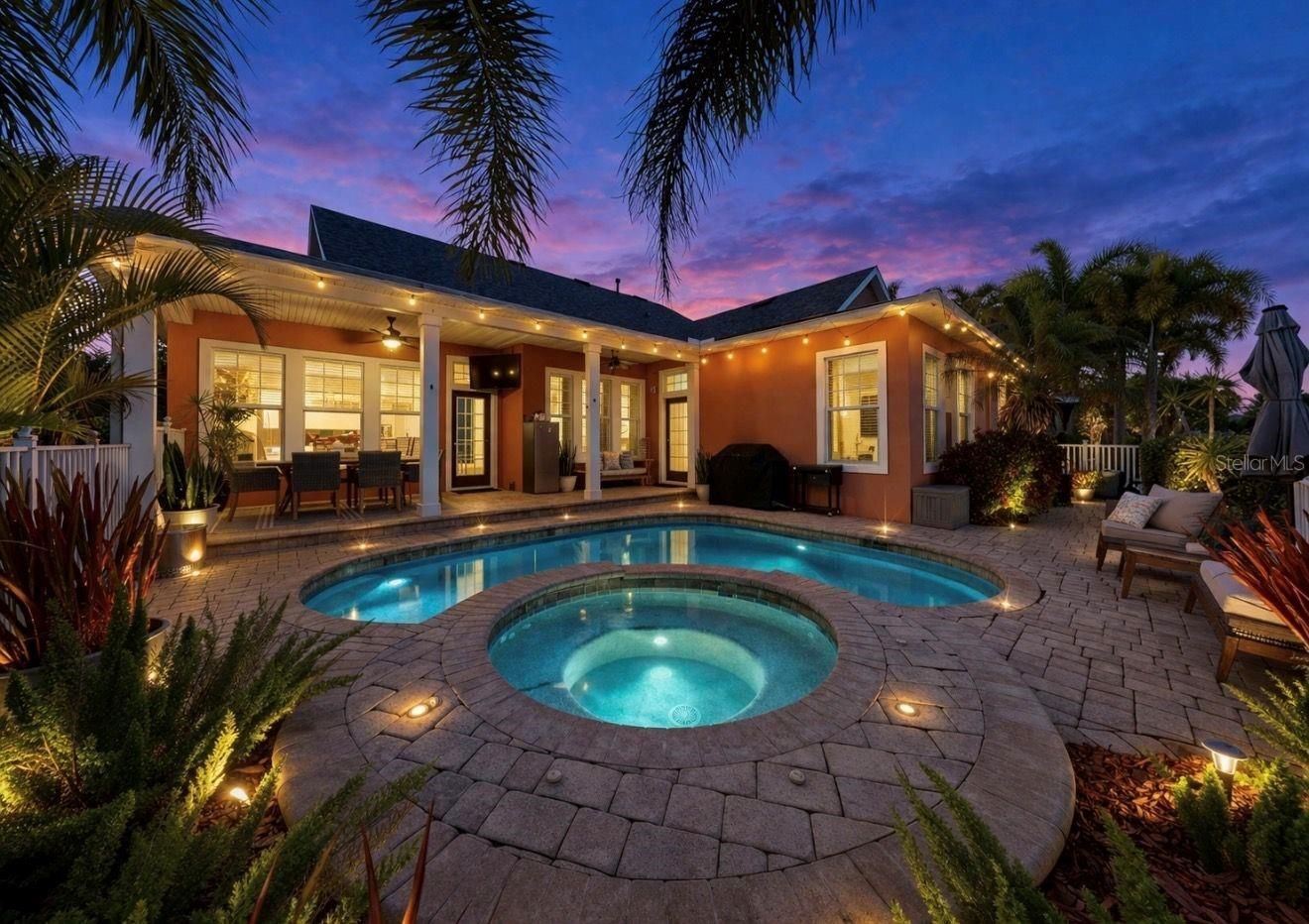 Welcome to an elevated coastal retreat where comfort, style, and waterfront living blend effortlessly. Nestled within the exclusive, gated community of MiraBay in Apollo Beach, this exceptional single-story pool home offers direct access to Tampa Bay and the very best of Florida living. Featuring 4 spacious bedrooms, 3 full bathrooms, and a private office with elegant French doors, this thoughtfully designed residence strikes the perfect balance between open-concept living and peaceful privacy. The bright, expansive eat-in kitchen is a chef’s dream, featuring dual ovens, a 36” gas cooktop, and a generous breakfast bar, ideal for casual mornings or entertaining with ease. A formal dining area provides an inviting space for hosting memorable gatherings. Designed with versatility in mind, the unique floor plan flows seamlessly between living areas while still offering distinct spaces for relaxation. Recent updates enhance both style and function, including a stunning shiplap accent wall, all-new light fixtures and ceiling fans, and durable luxury vinyl plank flooring throughout. Enjoy peace of mind with major improvements already completed, including a brand-new roof (October 2024), updated AC system, new hot water heater (2024), new pool heater (2023), new pool pump (2025), and new salt generator (2024). Step outside to your private backyard oasis, where a heated saltwater pool and spa overlook serene waterfront views. The private dock is equipped with both a boat lift and jet ski lift, providing immediate access to the open waters of Tampa Bay, perfect for boating, fishing, or sunset cruises. As a MiraBay resident, you’ll enjoy resort-style amenities including two clubhouses, heated pools, a waterfront café, tennis, basketball, and pickleball courts, scenic parks, playgrounds, complimentary kayaks and paddleboards, a vibrant social calendar, and a 24-hour fitness center. Ideally located just minutes from I-75, this home offers the perfect combination of luxury, convenience, and lifestyle. Schedule your private showing today and experience waterfront living at its finest.