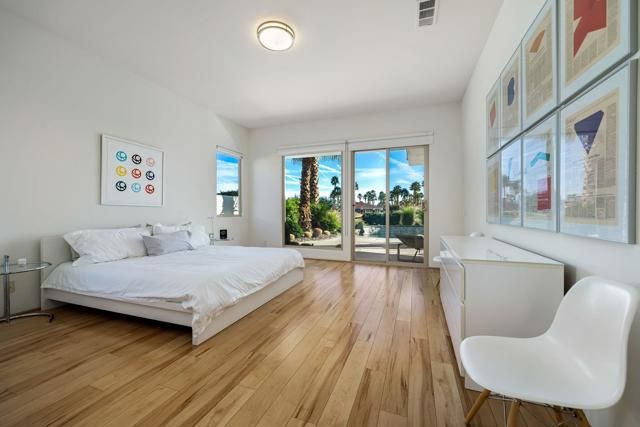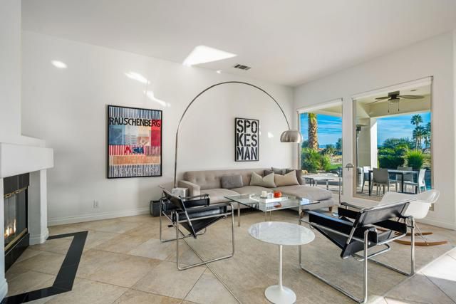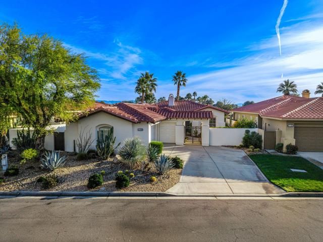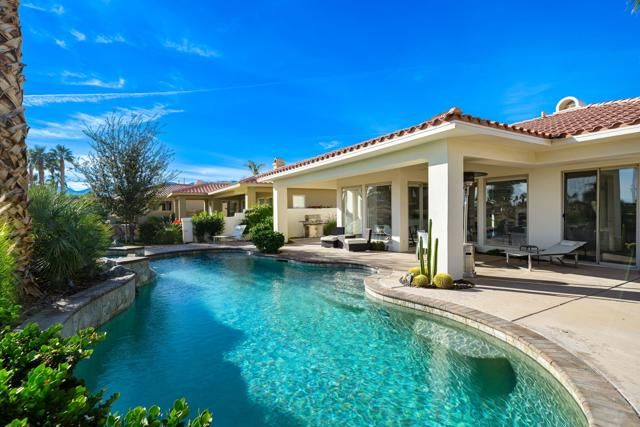 Stunning Home with unmatched views on the 11th Green of the Nicklaus Private. This exquisite Augusta One model, spanning approximately 2,205 square feet, boasts 3 bedrooms and 3 bathrooms. The spacious great room with open floor plan and wall of glass offers a perfect flow for entertaining and a cozy fireplace. The light & bright kitchen offers custom granite counter tops & white cabinets & appliances and a wet bar with sink and wine refrigerator. Home offers tile floors with marble inserts. Primary has wood floors, a large walk-in closet, separate shower and tub, and direct access to the outdoor space with private patio and stunning salt water pool and spa featuring a cascading rock waterfall--perfect for entertaining and relaxation, mature fruit trees adding charm and character to the property. There is a 2 car and golf cart garage with epoxy floors and a tankless water heater. . Offered Furnished.
