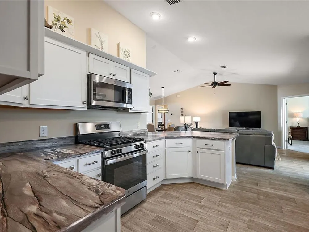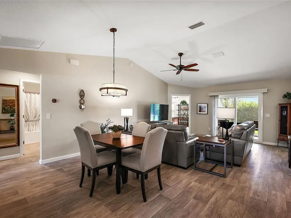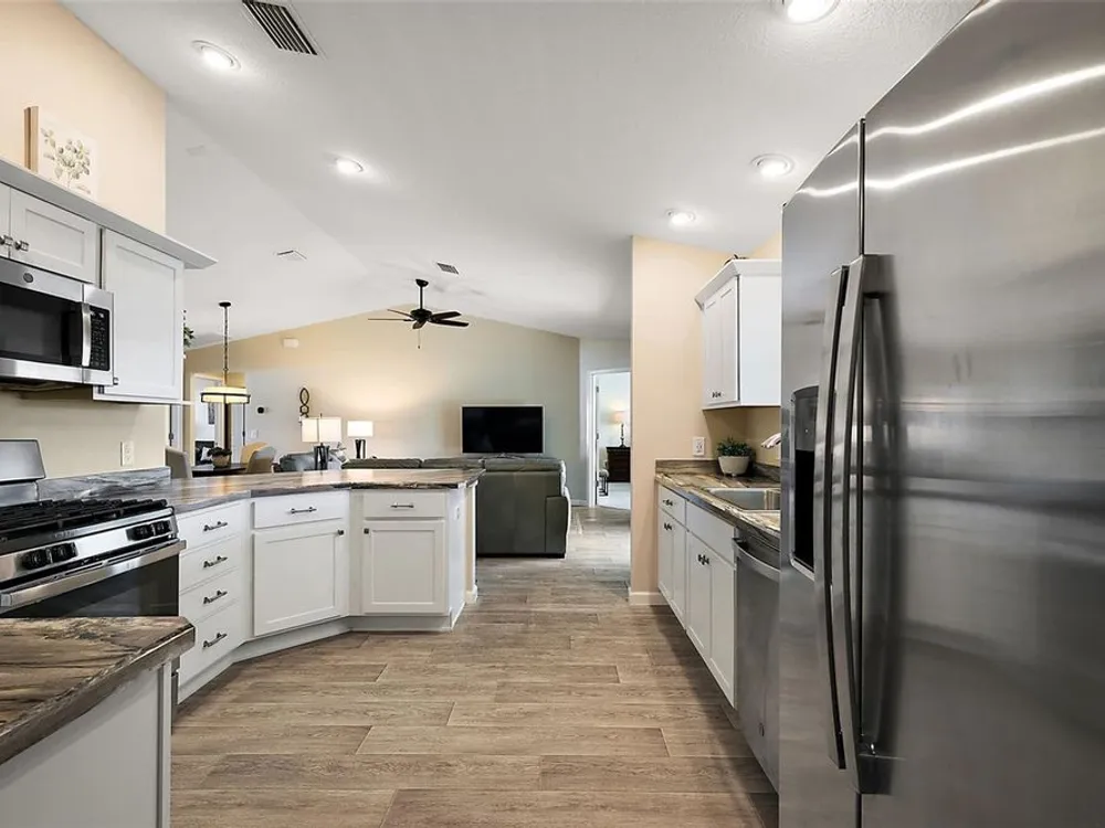- Eat-in Kitchen, High Ceilings, Living/Dining Room, Open Floorplan, Main Level Primary, Split Bedrooms, Vaulted Ceiling(s), Walk-In Closet(s)