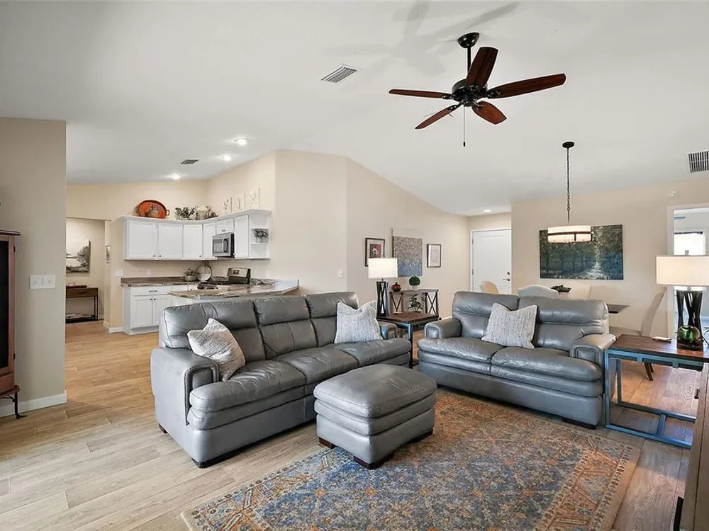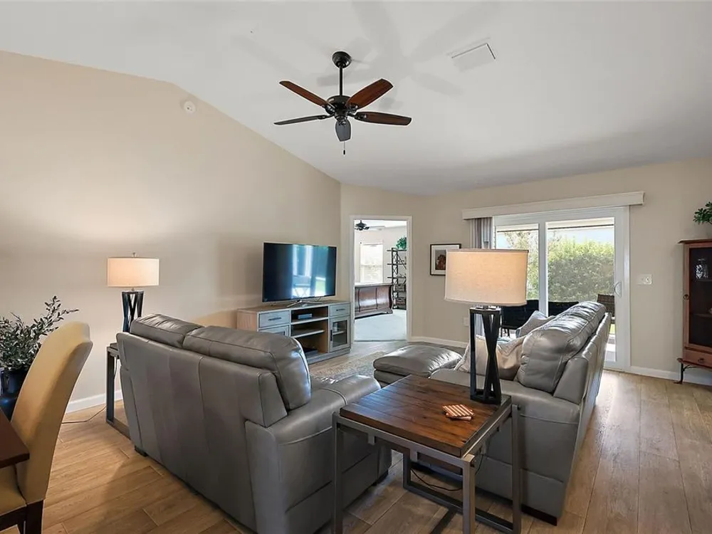 IMMACULATE 3/2 TURNKEY Anchor on SPACIOUS CORNER LOT with PRIVACY LANDSCAPING in the highly sought-after Village of St. Catherine! ONLY 4 years old! JUST A SHORT WALK to SAWGRASS GROVE and A GOLF CART RIDE to the upcoming EASTPORT TOWN SQUARE! This FABULOUS TURNKEY home is MOVE-IN READY offering EVERYTHING YOU NEED for EFFORTLESS LIVING FROM DAY ONE! A generously sized CORNER LOT with elegantly curbed landscaping beds and a COVERED ENTRY welcome you into this BEAUTIFULLY MAINTAINED home! Step inside, to the BRIGHT SPACIOUS layout with HIGH VAULTED ceilings and GORGEOUS luxury vinyl plank flooring throughout the main areas. The OPEN-CONCEPT living, dining, and kitchen create a seamless main living space, ideal for both relaxing and hosting guests. The EXPANSIVE kitchen is a chef’s dream, featuring crisp WHITE SHAKER cabinetry, ELEGANT countertops, STAINLESS steel appliances, GAS range, PANTRY closet, and COUNTER-HEIGHT EAT-IN breakfast bar perfect for casual dining. From the living room, sliding glass doors lead you into the PRIVATELY LANDSCAPED LANAI! This WONDERFUL room is a FANTASTIC space for ENTERTAINING friends and family; or simply RELAXING with your morning coffee, evening cocktail, or a good book! The REMOTE POWERED lanai screen adds to the PRIVATE OASIS. There’s even an adjacent rear patio - ideal for grilling and enjoying the beautiful Florida weather! Back inside, retreat to your LUXURIOUS primary suite boasting a GENEROUS WALK-IN closet. It’s en suite bathroom offers WHITE SHAKER cabinetry, DOUBLE vanities, and a TILED WALK-IN shower. A SPLIT FLOOR PLAN, places two additional bedrooms and a second bathroom near the front of the home creating a PRIVATE guest wing or QUIET home office. Bedrooms two and three each offer built-in closets and share a full bathroom with WHITE SHAKER vanity, tub/shower combination, and a hallway LINEN closet. A well-appointed interior laundry room is conveniently located behind a POCKET door between the kitchen and garage and includes WHITE SHAKER cabinetry, utility sink, and a LARGE STORAGE closet. Completing the package is a two-car garage with an additional refrigerator and ample parking and storage space! DON’T MISS YOUR OPPORTUNITY to make this INCREDIBLE TURNKEY HOME YOUR OWN! The Village of St. Catherine is just steps away from Sawgrass Grove and close to both Brownwood Paddock Square the upcoming Eastport Town Square! Conveniently located by five neighborhood pools and recreation centers (Homestead, St. Catherine, Bradford, Aviary, Hawkins); three large regional recreation complexes (Ezell, Everglades & Rohan); Southern Oaks Country Club and Championship Golf Course; Clifton Cove Putting Course; Shopping and Dining at Magnolia Plaza and more! PLEASE WATCH OUR WALKTHROUGH VIDEO of this AMAZING TURNKEY HOME in a FABULOUS LOCATION, and call today to schedule your Private Showing or Virtual Tour!