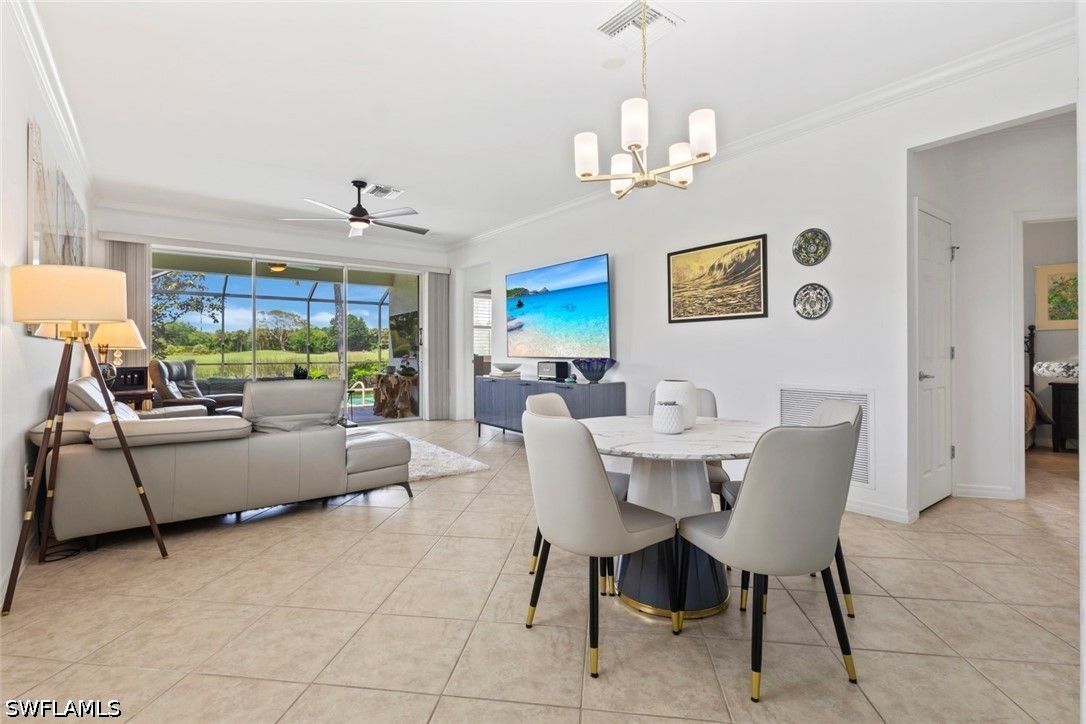 GOLF COURSE & WATER View POOL Home in Del Webb Naples! Located in the 55+ Del Webb Naples community, this beautifully upgraded Gray Myst floor plan offers 3 bedrooms, 2 bathrooms, and stunning golf course and water views, creating a true everyday retreat. This home showcases 9’ ceilings, crown molding, TILE THROUGHOUT laid on the diagonal, and a stylish SHIPLAP ACCENT wall, delivering an open yet sophisticated feel throughout. PLANTATION SHUTTERS add both elegance and privacy. The kitchen is designed for both function and entertaining, featuring granite countertops, a breakfast bar, casual dining area, and a NEW Samsung refrigerator (2025). The adjacent LAUNDRY area maximizes space with a built-in bar and BRAND-NEW washer and dryer (2026). The spacious PRIMARY SUITE includes a large walk-in closet and an en-suite bath with dual vanities. Two additional bedrooms provide flexibility for guests, a home office, or hobbies. Step outside to your private outdoor oasis featuring a HEATED SALTWATER POOL, perfect for relaxing, entertaining, and enjoying the peaceful golf course and water views. With FURNISHINGS NEGOTIABLE, this home is ready to move in NOW! Additional BONUS: 5 TVs convey with the home. This home comes with the SOCIAL MEMBERSHIP, but take note GOLF LOVERS, Panther Run Golf Club offers optional MEMBERSHIPS with premium golf experiences just steps from your backyard. In Del Webb Naples, you’ll enjoy WORLD-CLASS AMENITIES that rival luxury resorts: dine at the Rusty Putter Restaurant, soak in the RESORT-STYLE or LAP POOLS, break a sweat in the state-of-the-art FITNESS CENTER, and play your way through PICKLEBALL, TENNIS, bocce, billiards - even a top-tier GOLF SIMULATOR! Need groceries, church, or a bite to eat? Just hop in your golf cart and cruise into town - Publix and the heart of Ave Maria are just minutes away. This isn’t just a home - it’s a LIFESTYLE UPGRADE in one of Southwest Florida’s most vibrant 55+ communities. Don’t miss your chance to live where fun, fitness, and friendships flourish year-round!
