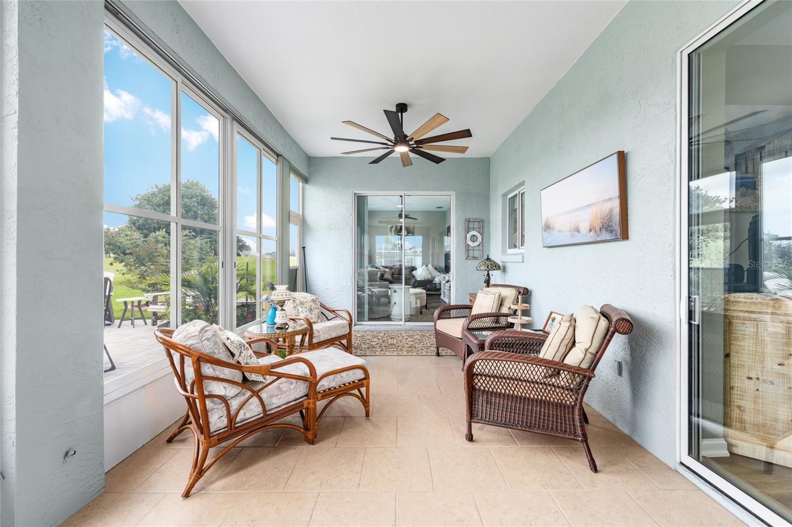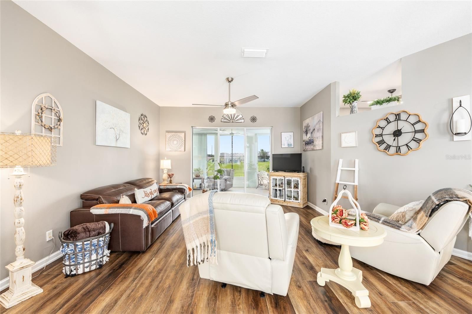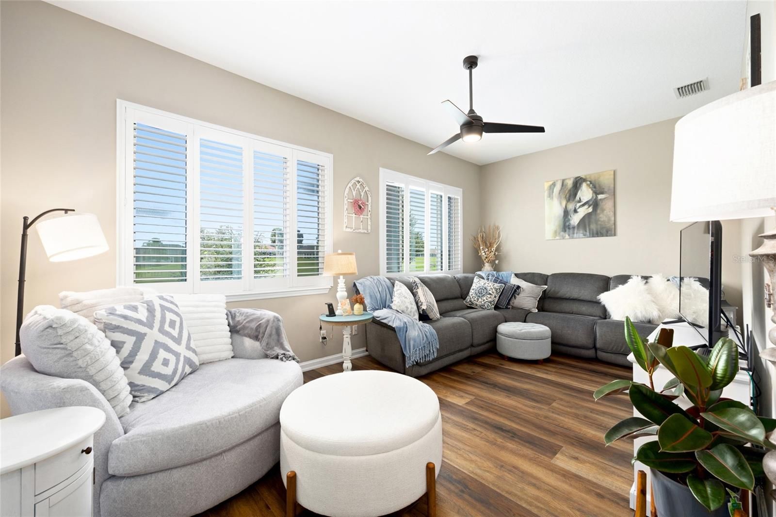 WELCOME TO THIS GORGEOUS GOLF COURSE HOME IN THE HIGHLEY DESIRABLE GATED COMMUNITY OCALA PALMS GOLF AND COUNTRY CLUB. It’s time to enjoy your new Florida lifestyle in this FABULOUS home which has two bedrooms, two full bathrooms, a two car garage and a fanstatic GOLF CART GARAGE. This home is full of custom features and beautifully appointed upgrades. As you enter the foyer, you’ll immediately notice the vista views of the golf course frontage on the 13th fairway. The triple sliders in the living room lead directly to the florida room and they open all of the way into a pocket which gives the home a feel of bringing the outdoors in. The living room and formal dining area are spacious and beautiful. You’ll need to catch your breath as you enter the island kitchen which is open to the large family room. All of the kitchen appliances are included. The family room overlooks the golf course and the family room sliding doors lead to the florida room. Your new home is a split plan. Each bedroom has its own privacy. You’ll love the large master bedroom which easily fits a king sized bedroom suite. Just like the living room and family room the master bedroom also has sliding doors that leads to the florida and offer continued views of the golf course. The master bathroom is lovely as it has a walk in shower and double sinks. The other side of the home has the guest bedroom in which the hallway has a pocket door to make your guests feel amazingly comfortable with extra privacy. The big ticket items have already been taken care of for you. The roof was replaced in 2022, the AC was replaced in 2022, and a new front door was installed in 2022. You'll love this home as it beyond impressive.