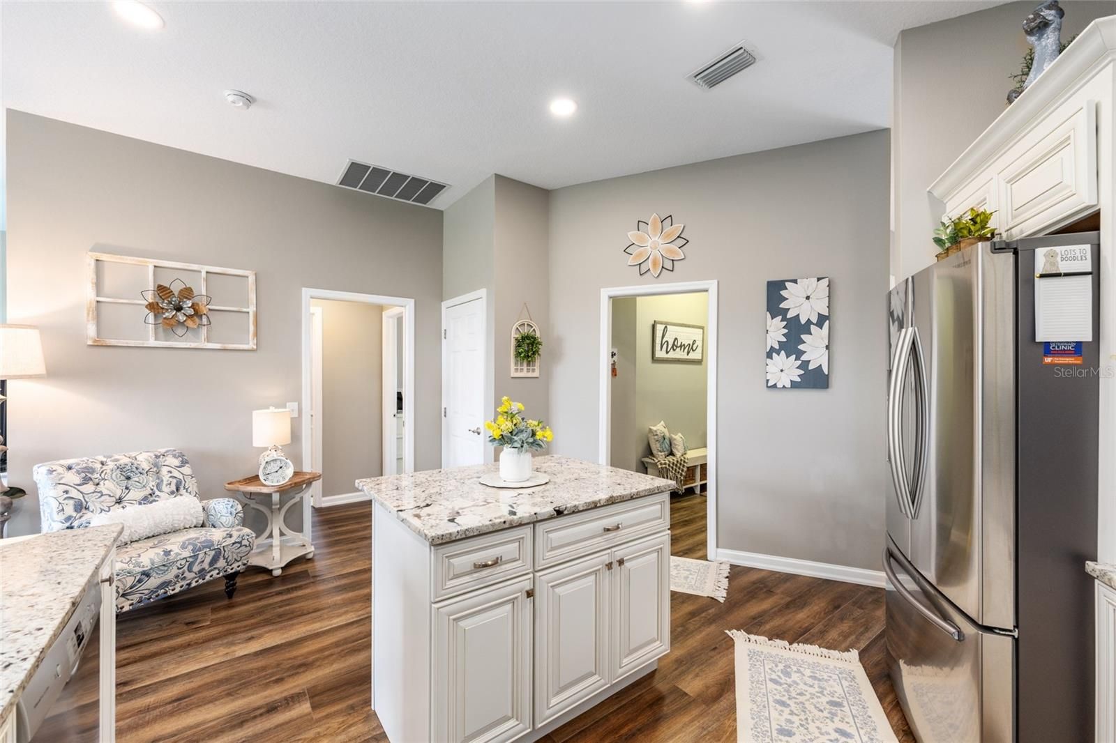 - Cathedral Ceiling(s), Kitchen/Family Room Combo, Split Bedrooms, Stone Counters, Thermostat, Walk-In Closet(s), Window Treatments