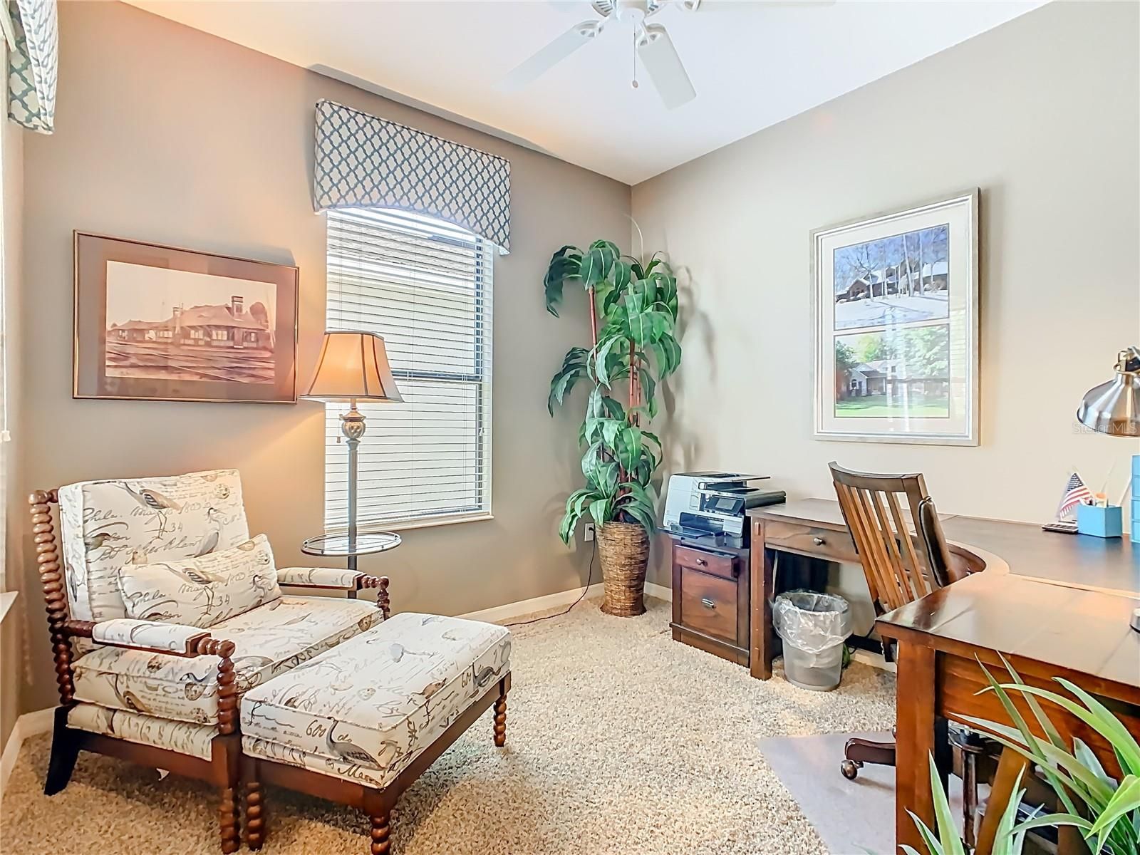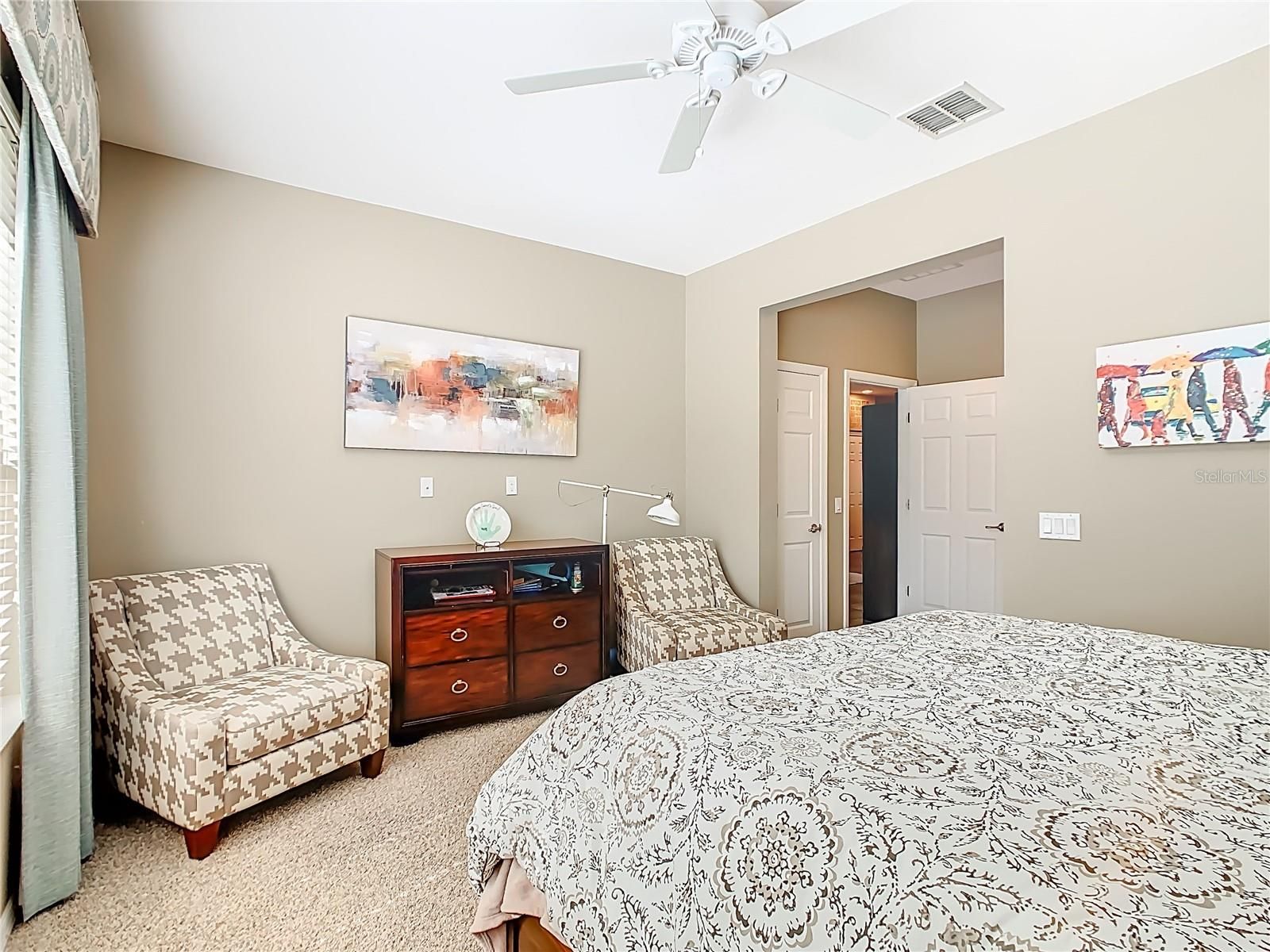 - Ceiling Fan(s), Crown Molding, Eat-in Kitchen, High Ceilings, Open Floorplan, Split Bedrooms, Thermostat, Walk-In Closet(s), Window Treatments
