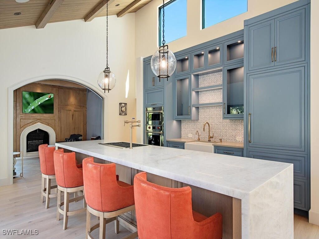 Rare Opportunity in Pelican Bay! Beautifully remodeled 3 Bedroom + Den, 2.5 Bath home in Tierra Mar offers a private pool oasis with tranquil lake views. Sophisticated 2020 renovation (down to the studs) includes all-new plumbing, electrical, LV, Gas, HVAC, and piping. Upgrades include: Wolf & Sub-Zero appliances, custom Grabill cabinetry, Cristallo countertops, standalone ice maker and refrigerator drawers, Legno Bastone herringbone & wide-plank wood floors, custom trellis, auto blinds, Sonos sound system, alarm system, impact windows & doors, gas fireplace, and whole-house generator. Enjoy all that Pelican Bay has to offer—two private beach restaurants, full-service beach access with chairs & umbrellas, kayaking, fitness center, tennis & pickleball courts, learning center, and scenic walking & biking paths. Conveniently located near Artis–Naples, Waterside Shops, and fine dining. Experience the best of Naples living in this stunning Tierra Mar residence!