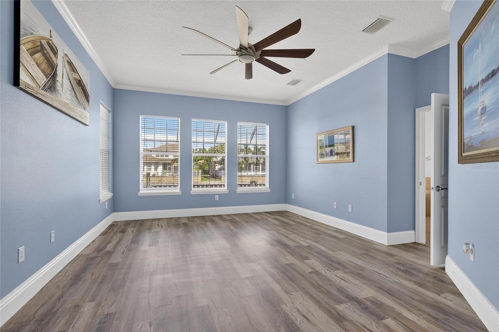 - Ceiling Fan(s), Crown Molding, Eat-in Kitchen, Open Floorplan, Main Level Primary, Solid Surface Counters, Solid-Wood Cabinets, Walk-In Closet(s)