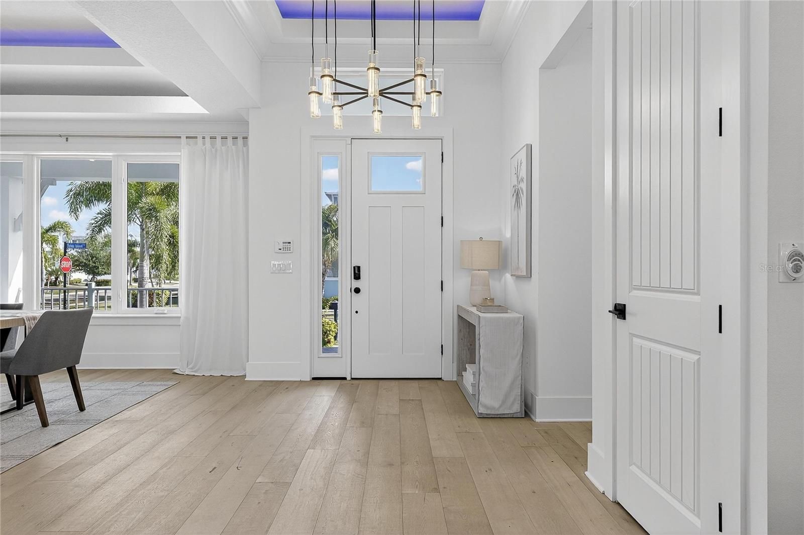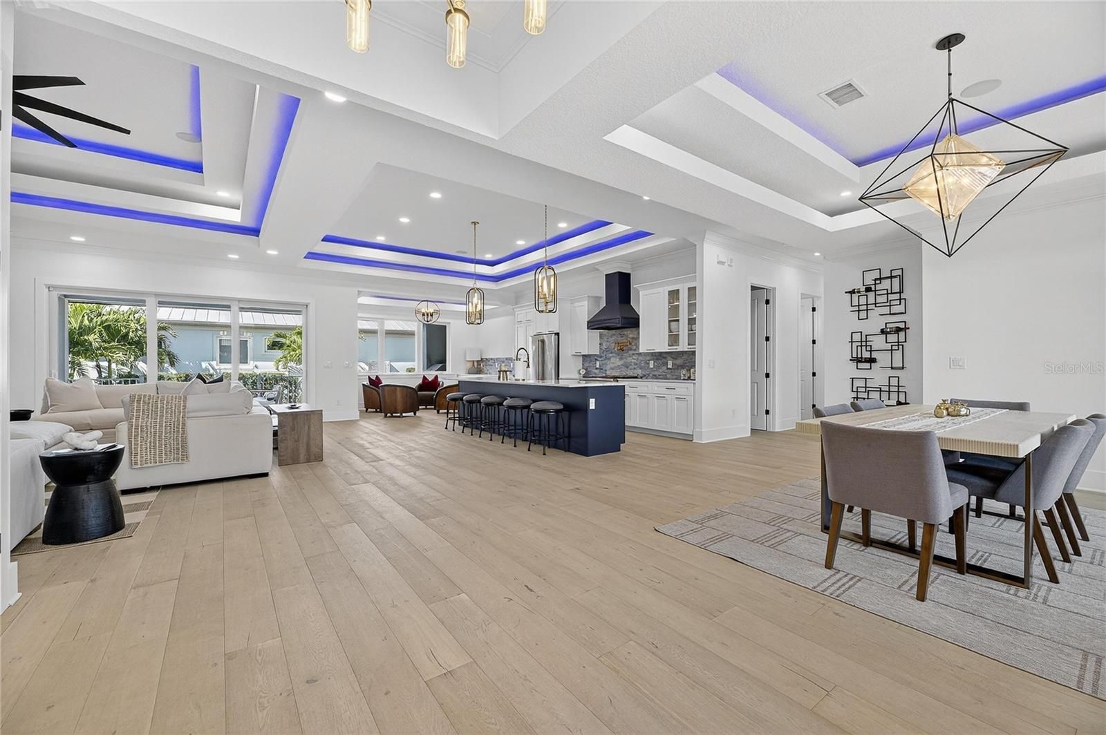 5720 TYBEE ISLAND DRIVE, APOLLO BEACH, FLORIDA 33572 4 Bedrooms | 3 Bathrooms | 2,952 Sq Ft | Corner Lot | Seen on HGTV’s 100 Day Dream Home Welcome to this architectural masterpiece located in the premier coastal community of MiraBay. Featured on HGTV’s 100 Day Dream Home, this residence blends elevated design, smart-home technology, and exceptional craftsmanship on a beautifully landscaped, low-maintenance corner lot. The wraparound shaded porch provides a serene introduction to the home, offering views and natural light from every angle. Inside, the open-concept layout features soaring double tray ceilings, premium Italian accent lighting, and coastal engineered plank flooring throughout the main living areas. The interior flows seamlessly to the electronic screened-in back porch, complete with an Aspire Grill by Hestan, blue tile accent wall, granite outdoor kitchen, and pass-through window—ideal for indoor-outdoor entertaining. The chef’s kitchen is the true centerpiece, featuring a 12.5-foot Italian quartz island in Selene Blue, a second 10-foot bar top with custom cabinetry, upgraded Café Beautiful appliances, and a custom wood range hood. The adjacent dining space showcases unique designer lighting, complemented by a separate bar area and a large open entertainment room perfect for gatherings. The expansive primary suite is positioned for privacy and includes direct access to the side deck, two closets, and a luxurious en-suite with a garden tub and walk-in shower. Additional bedrooms are generously sized and well-appointed. The mudroom leads to a stylish laundry room featuring penny tile floors, 12 feet of quartz counters, cabinetry, and a full-size sink. Built with safety and innovation in mind, this home includes a metal roof, full window blinds package, hurricane-proof windows and sliding doors, pre-wiring for three camera locations, a Smart Home package with mobile control for lighting and locks, and a built-in iPad docking station. The exterior also features an oversized paved three-car driveway and additional parking space. A Navien tankless water heater adds energy efficiency. Located within the highly desirable MiraBay community, residents enjoy a resort-style clubhouse, 24-hour fitness center, café, lounge, meeting spaces, heated pool with waterslide and toddler splash area, tennis courts, pickleball, basketball, multiple parks, playgrounds, fishing locations, and access to kayaks and paddleboards. Experience exceptional luxury, thoughtful design, and unmatched lifestyle amenities in one of Apollo Beach’s most sought-after neighborhoods.