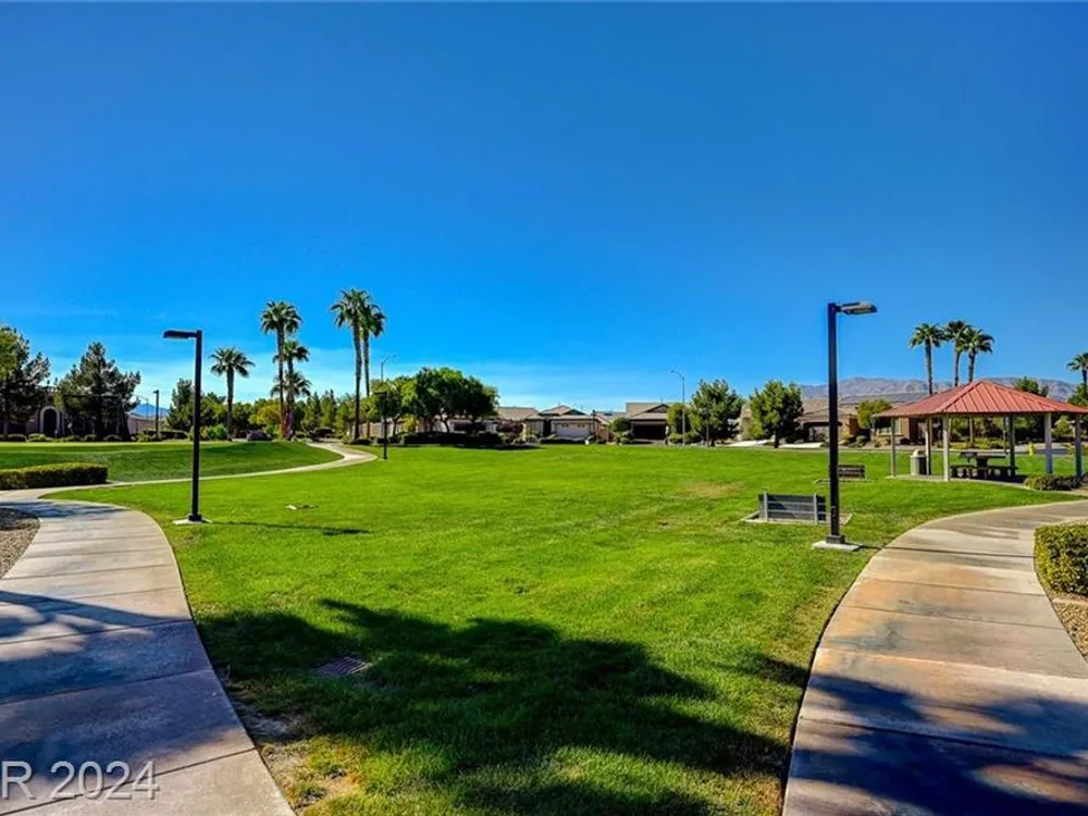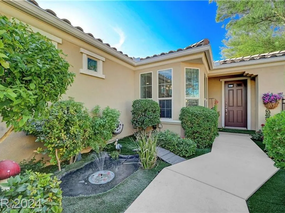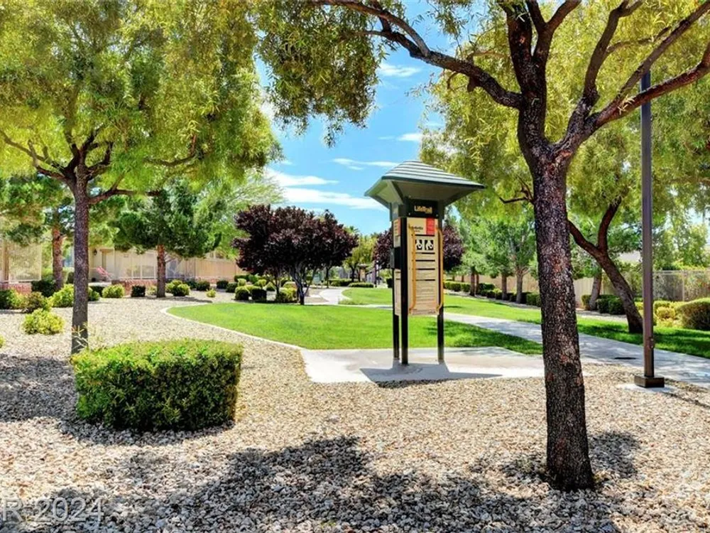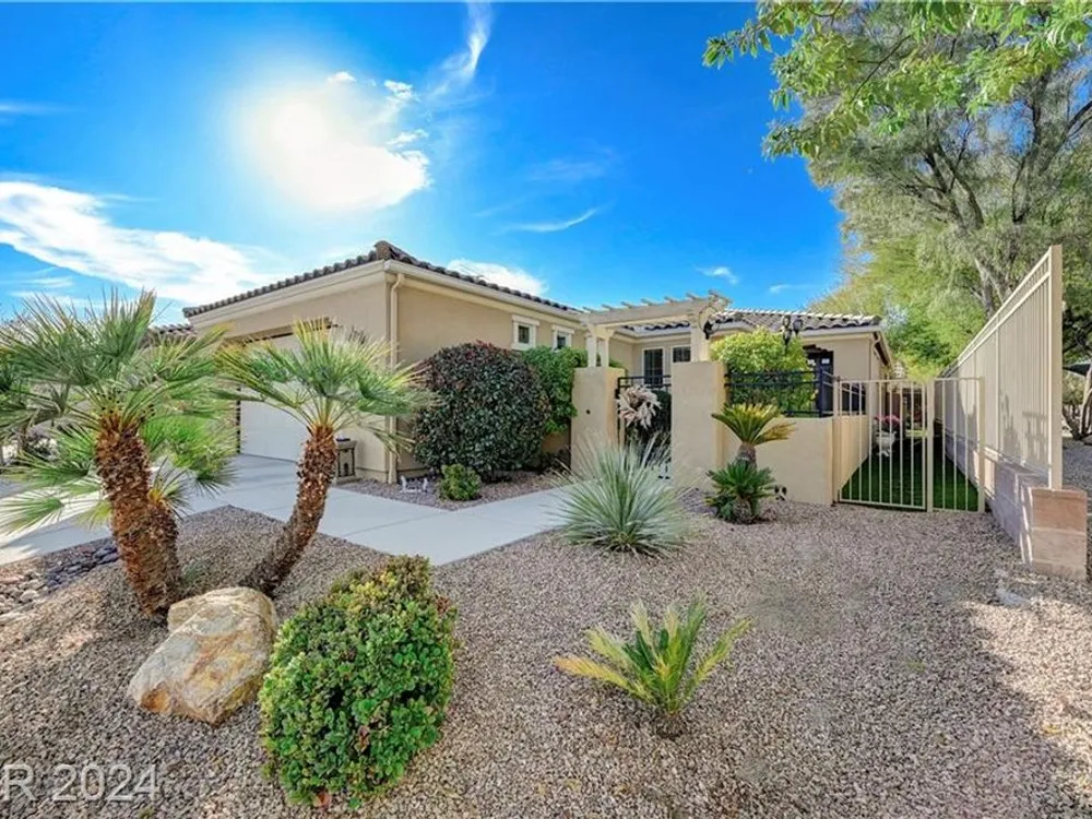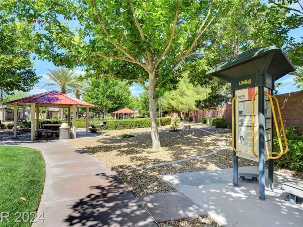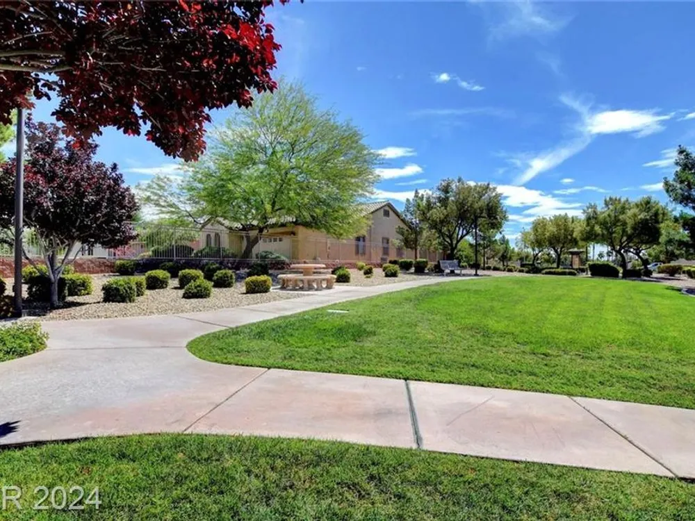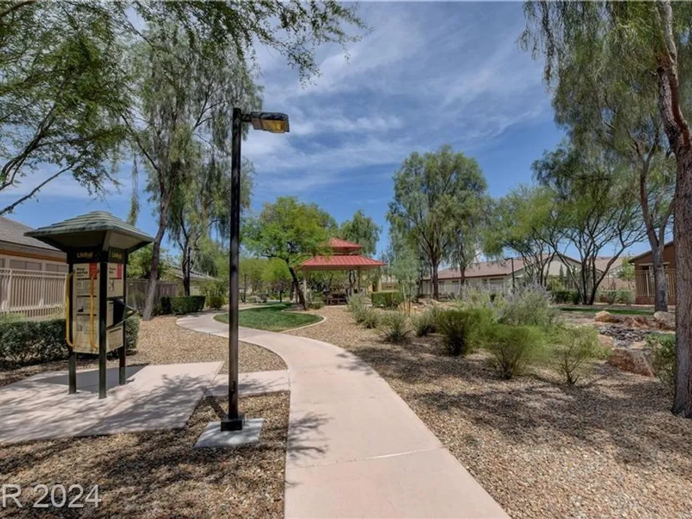 AGE RESTRICTED 55+ Resort Style Living. Gated Community. Close to the New State of The Art VA Hospital and Shopping. Easy access to the 215 and the I-15. No Carpet. 4FT Extended Garage for the Larger Trucks. True Pride of Ownership with Tons of Upgrades, Fabulous Premium Lot siding to the Park. 2 Bedroom, 2 Bath Plus a Large Den - Easily could be 3rd Bedroom. Entertainers home with a Large Front Courtyard with Synthetic Grass and Pond/Fountain. BackYard with Synthetic Grass and Covered Patio, BBQ Stub. Chefs Kitchen with Stainless Appliances, Granite Counters and Backsplash. Large Island - Lots of Upgraded Staggered Cabinets and Great Counter Space. Breakfast Area with Plenty of Space for a Table overlooking your Courtyard. Dining Area which easily accommodates a large table. Check out the Clubhouse with 2 Pools/Spa, Gym, Tennis/Pickleball, Bocce, Basket Ball Court, Putting Green, Billiards, Social Calendar, Dog Park and so much more