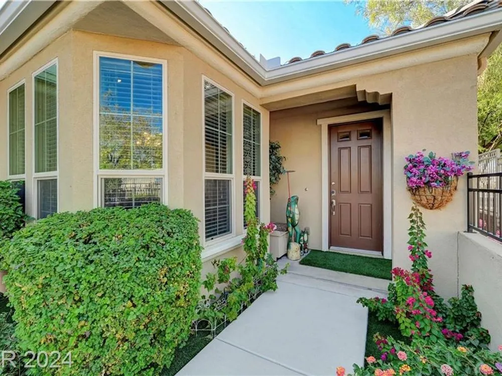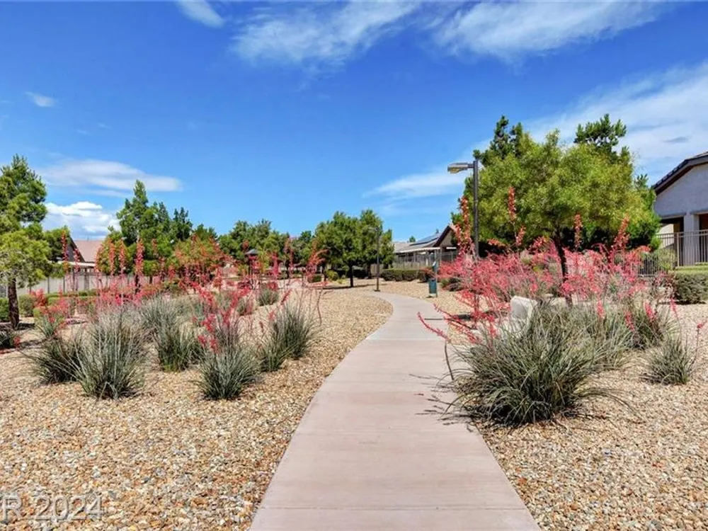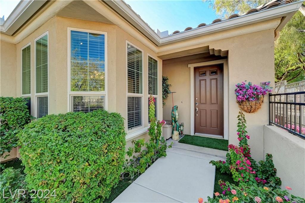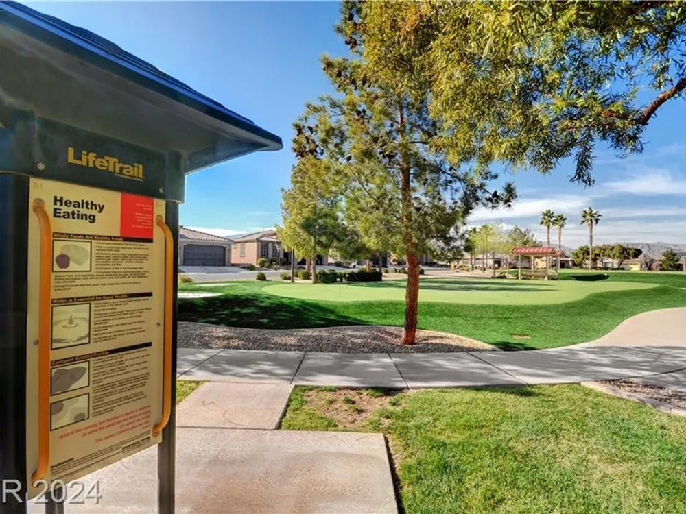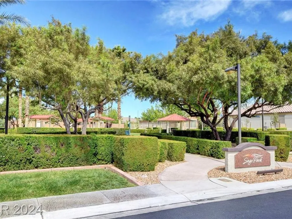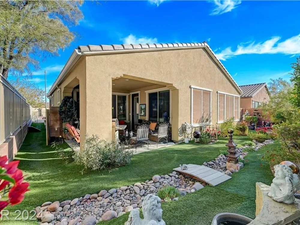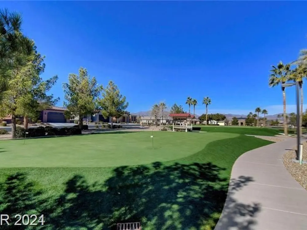 AGE RESTRICTED 55+ Resort Style Living. Gated Community. Close to the New State of The Art VA Hospital and Shopping. Easy access to the 215 and the I-15. No Carpet. 4FT Extended Garage for the Larger Trucks. True Pride of Ownership with Tons of Upgrades, Fabulous Premium Lot siding to the Park. 2 Bedroom, 2 Bath Plus a Large Den - Easily could be 3rd Bedroom. Entertainers home with a Large Front Courtyard with Synthetic Grass and Pond/Fountain. BackYard with Synthetic Grass and Covered Patio, BBQ Stub. Chefs Kitchen with Stainless Appliances, Granite Counters and Backsplash. Large Island - Lots of Upgraded Staggered Cabinets and Great Counter Space. Breakfast Area with Plenty of Space for a Table overlooking your Courtyard. Dining Area which easily accommodates a large table. Check out the Clubhouse with 2 Pools/Spa, Gym, Tennis/Pickleball, Bocce, Basket Ball Court, Putting Green, Billiards, Social Calendar, Dog Park and so much more