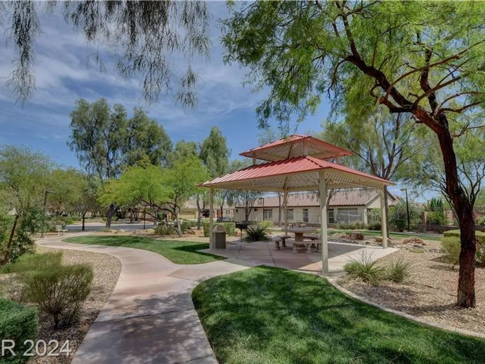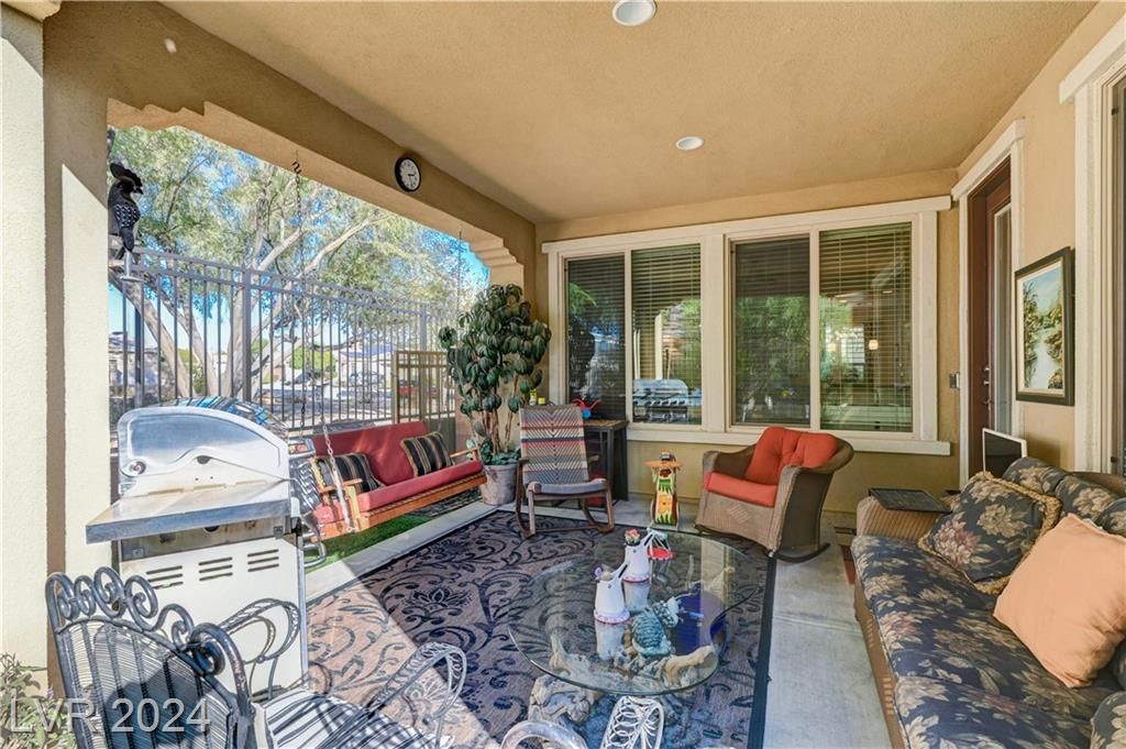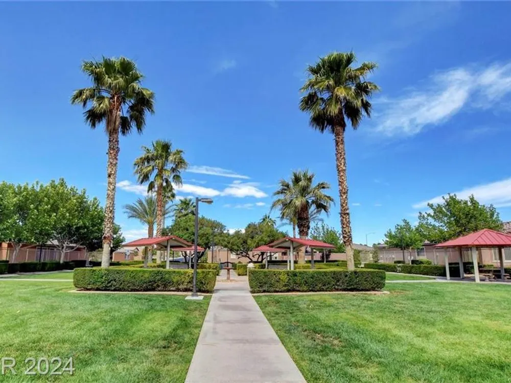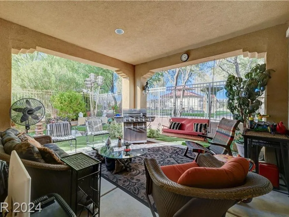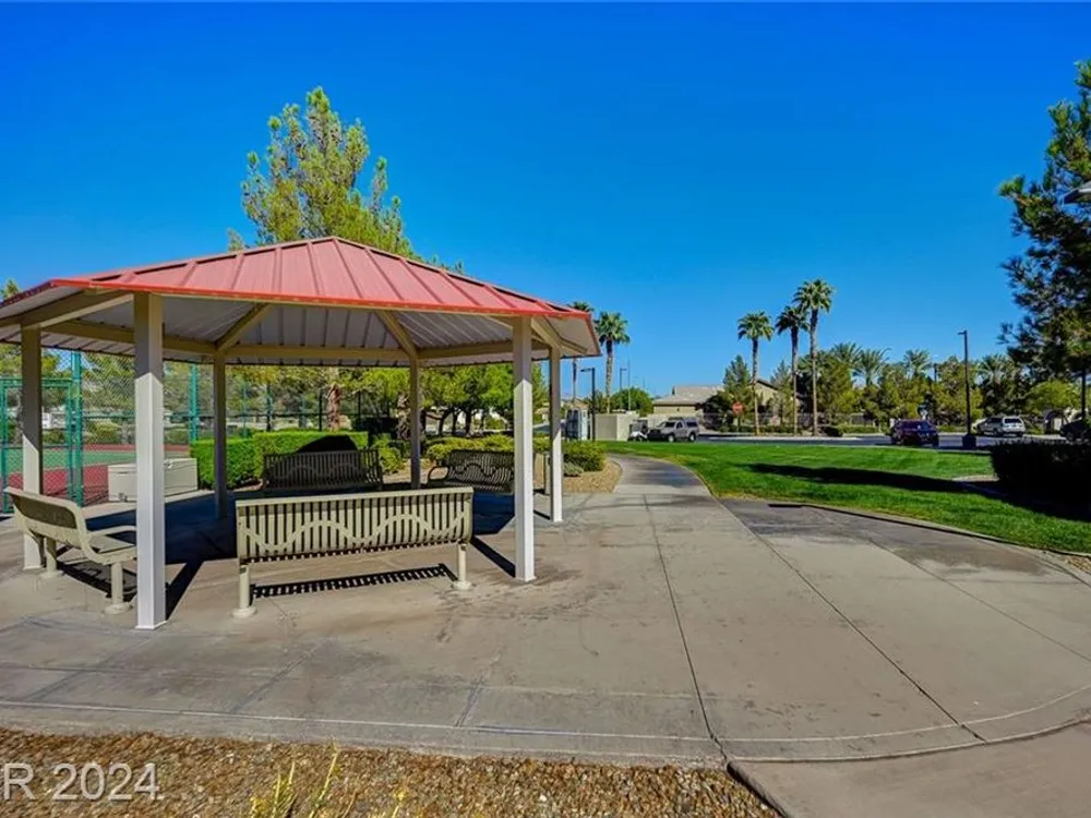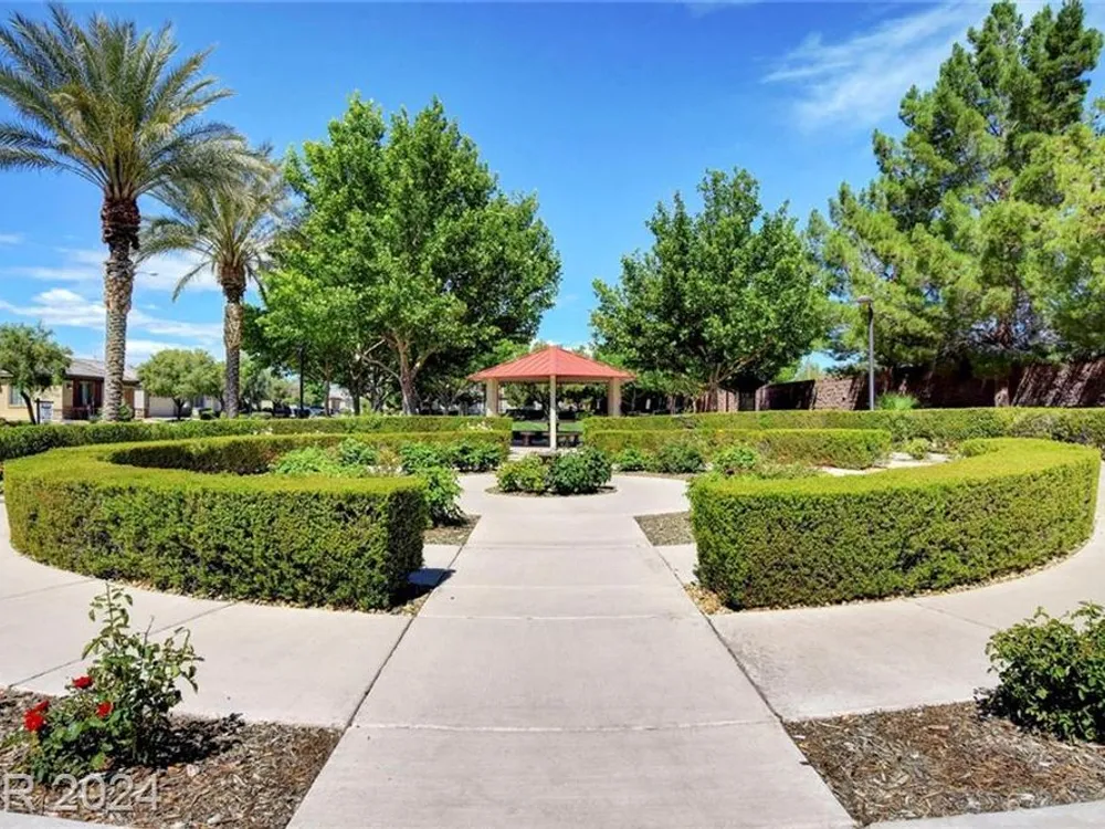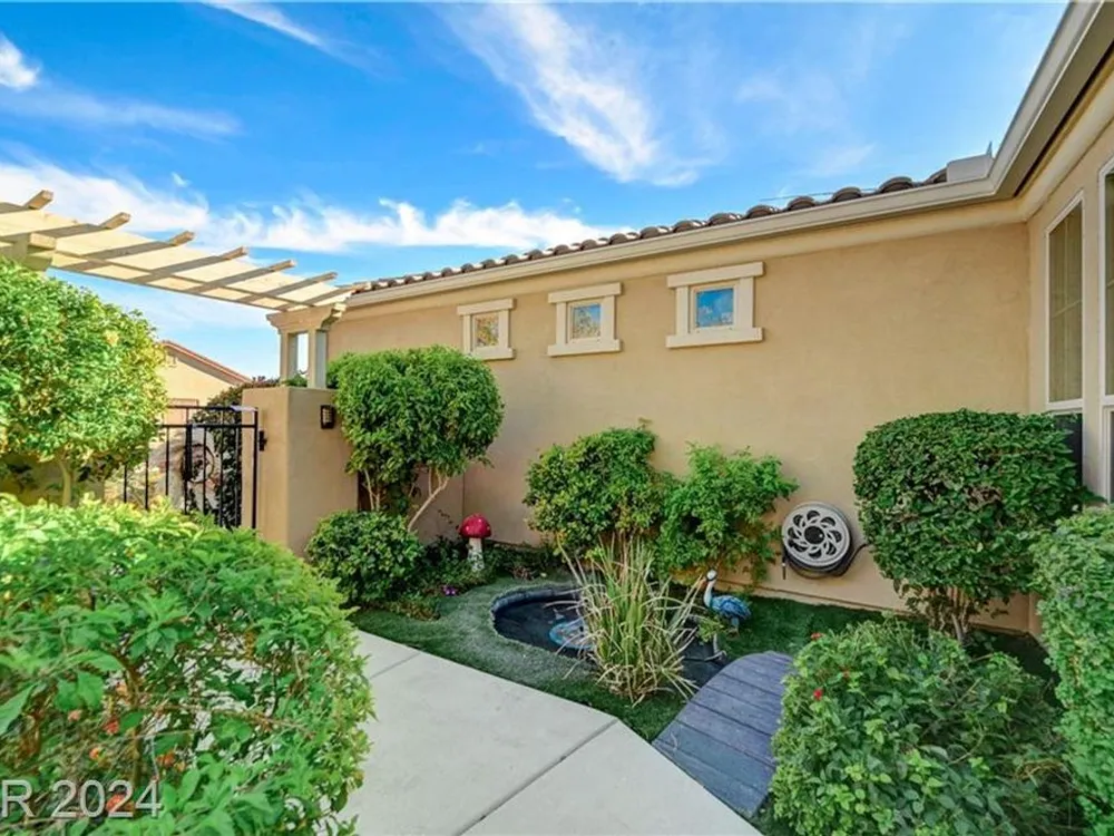 AGE RESTRICTED 55+ Resort Style Living. Gated Community. Close to the New State of The Art VA Hospital and Shopping. Easy access to the 215 and the I-15. No Carpet. 4FT Extended Garage for the Larger Trucks. True Pride of Ownership with Tons of Upgrades, Fabulous Premium Lot siding to the Park. 2 Bedroom, 2 Bath Plus a Large Den - Easily could be 3rd Bedroom. Entertainers home with a Large Front Courtyard with Synthetic Grass and Pond/Fountain. BackYard with Synthetic Grass and Covered Patio, BBQ Stub. Chefs Kitchen with Stainless Appliances, Granite Counters and Backsplash. Large Island - Lots of Upgraded Staggered Cabinets and Great Counter Space. Breakfast Area with Plenty of Space for a Table overlooking your Courtyard. Dining Area which easily accommodates a large table. Check out the Clubhouse with 2 Pools/Spa, Gym, Tennis/Pickleball, Bocce, Basket Ball Court, Putting Green, Billiards, Social Calendar, Dog Park and so much more