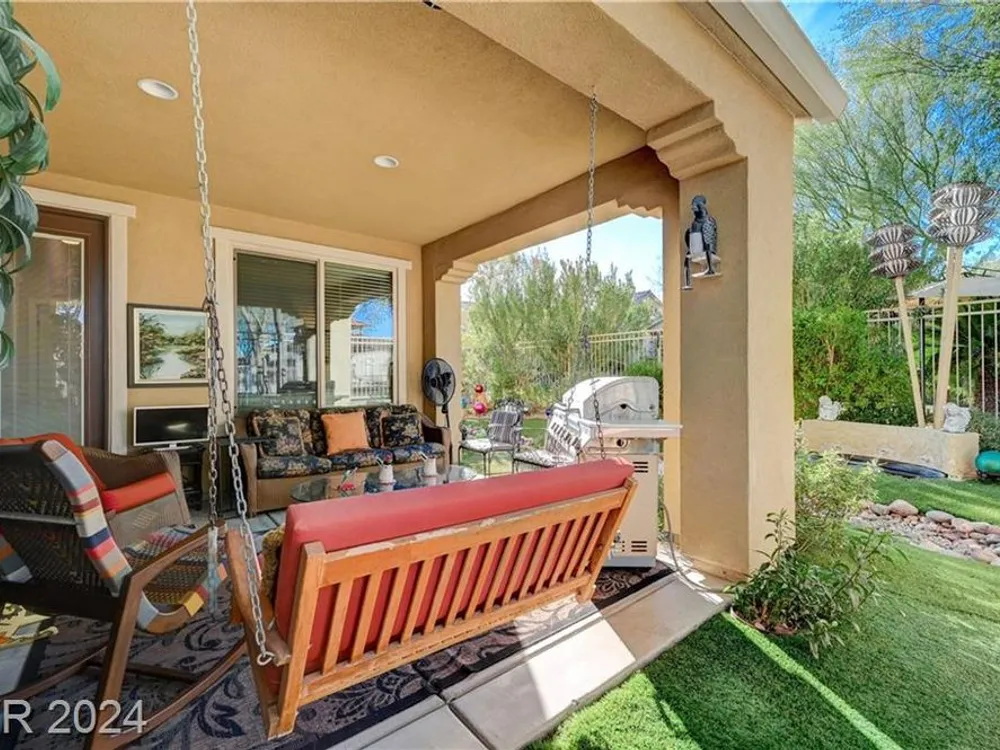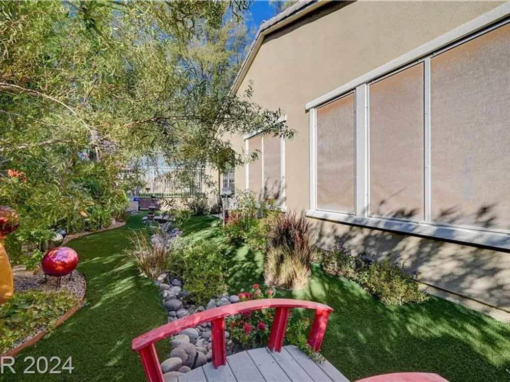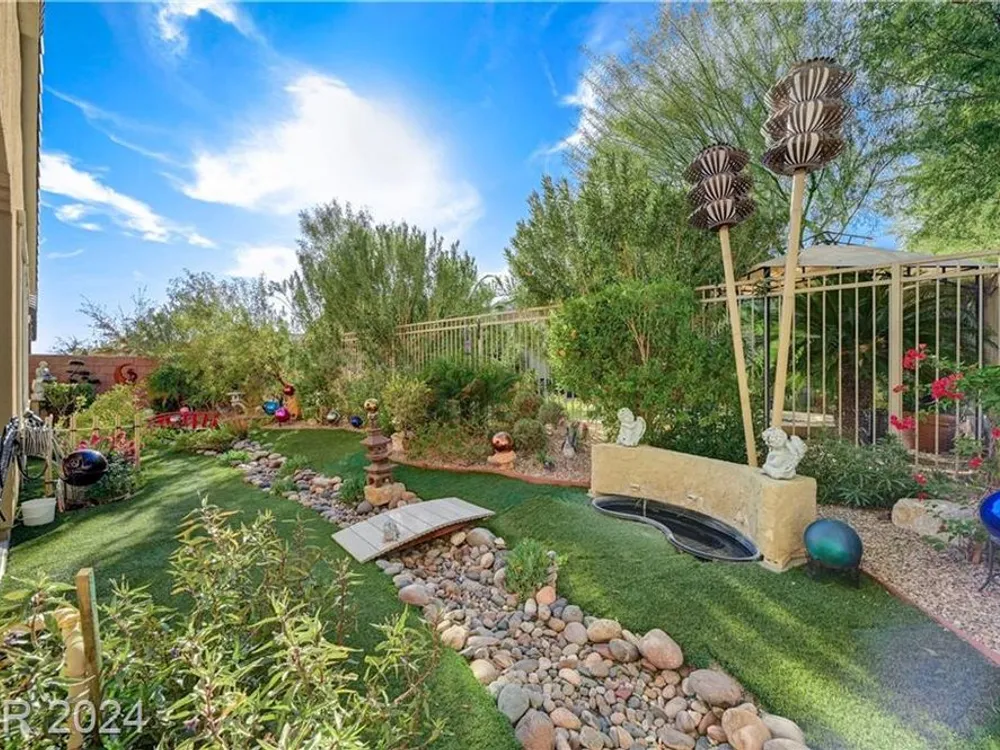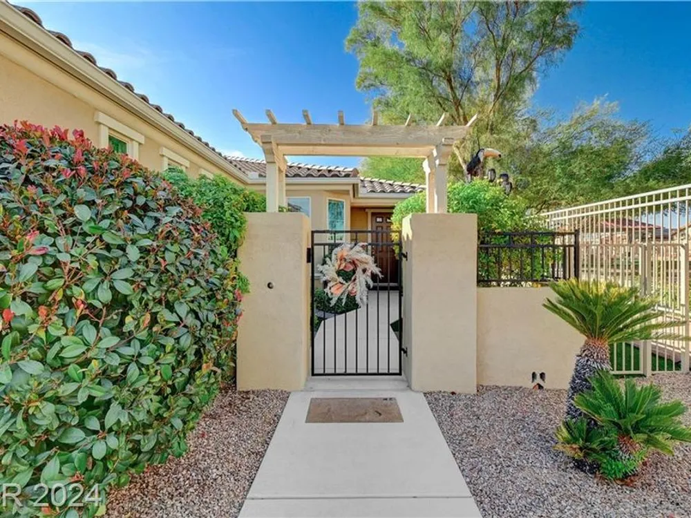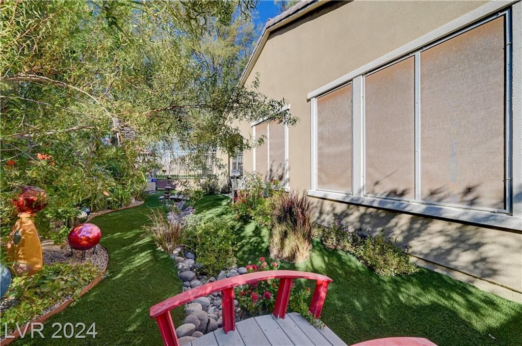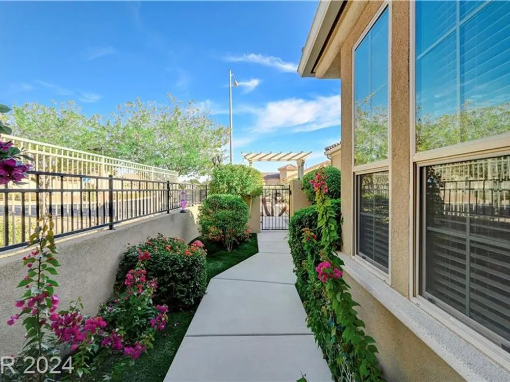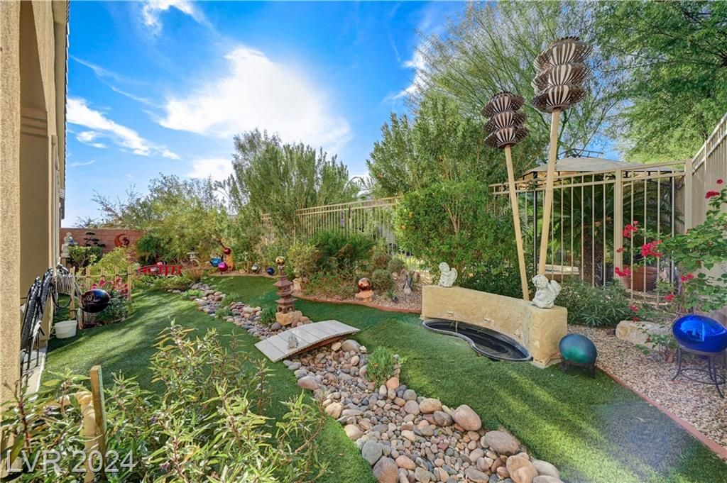 AGE RESTRICTED 55+ Resort Style Living. Gated Community. Close to the New State of The Art VA Hospital and Shopping. Easy access to the 215 and the I-15. No Carpet. 4FT Extended Garage for the Larger Trucks. True Pride of Ownership with Tons of Upgrades, Fabulous Premium Lot siding to the Park. 2 Bedroom, 2 Bath Plus a Large Den - Easily could be 3rd Bedroom. Entertainers home with a Large Front Courtyard with Synthetic Grass and Pond/Fountain. BackYard with Synthetic Grass and Covered Patio, BBQ Stub. Chefs Kitchen with Stainless Appliances, Granite Counters and Backsplash. Large Island - Lots of Upgraded Staggered Cabinets and Great Counter Space. Breakfast Area with Plenty of Space for a Table overlooking your Courtyard. Dining Area which easily accommodates a large table. Check out the Clubhouse with 2 Pools/Spa, Gym, Tennis/Pickleball, Bocce, Basket Ball Court, Putting Green, Billiards, Social Calendar, Dog Park and so much more