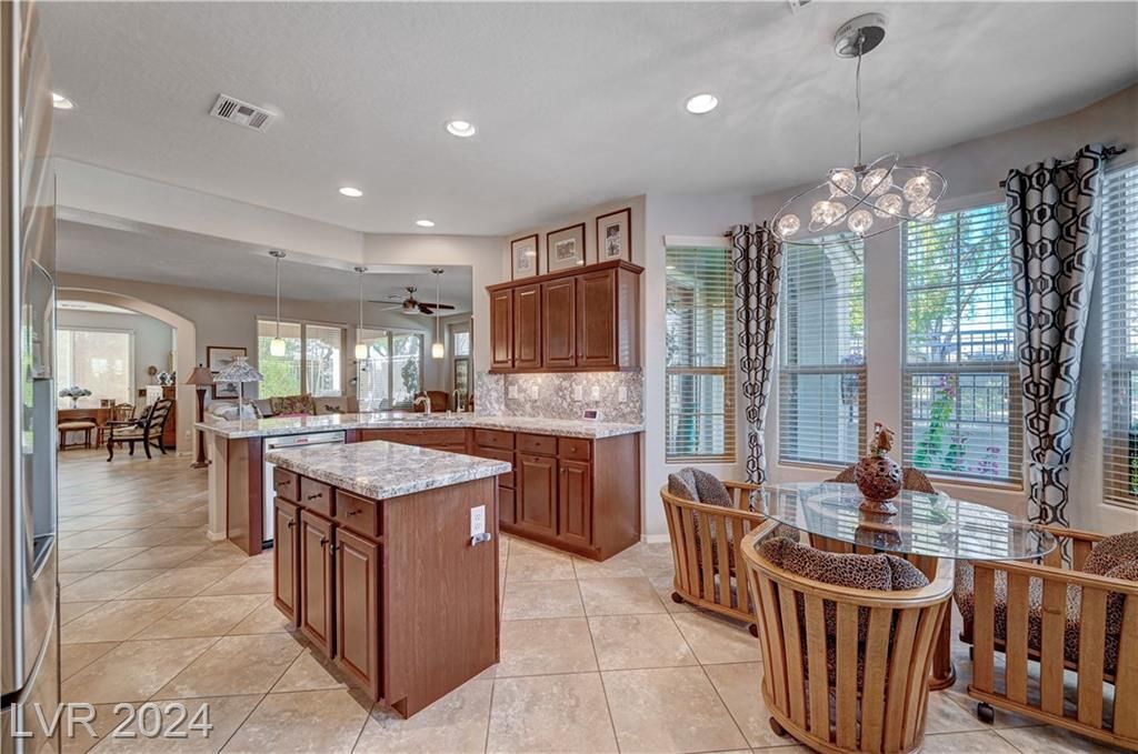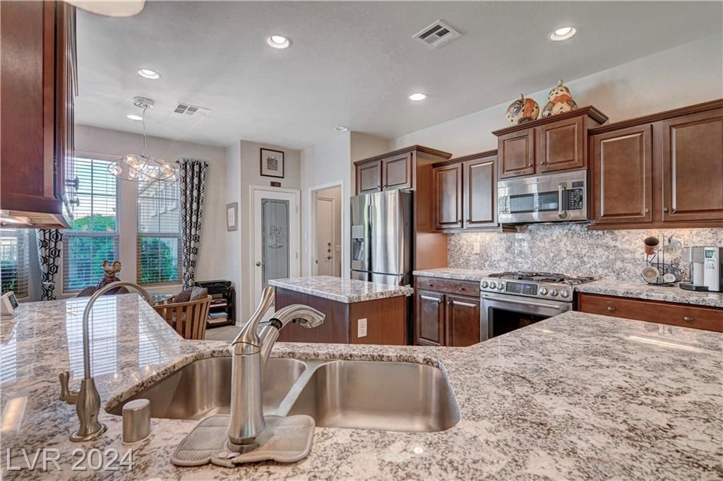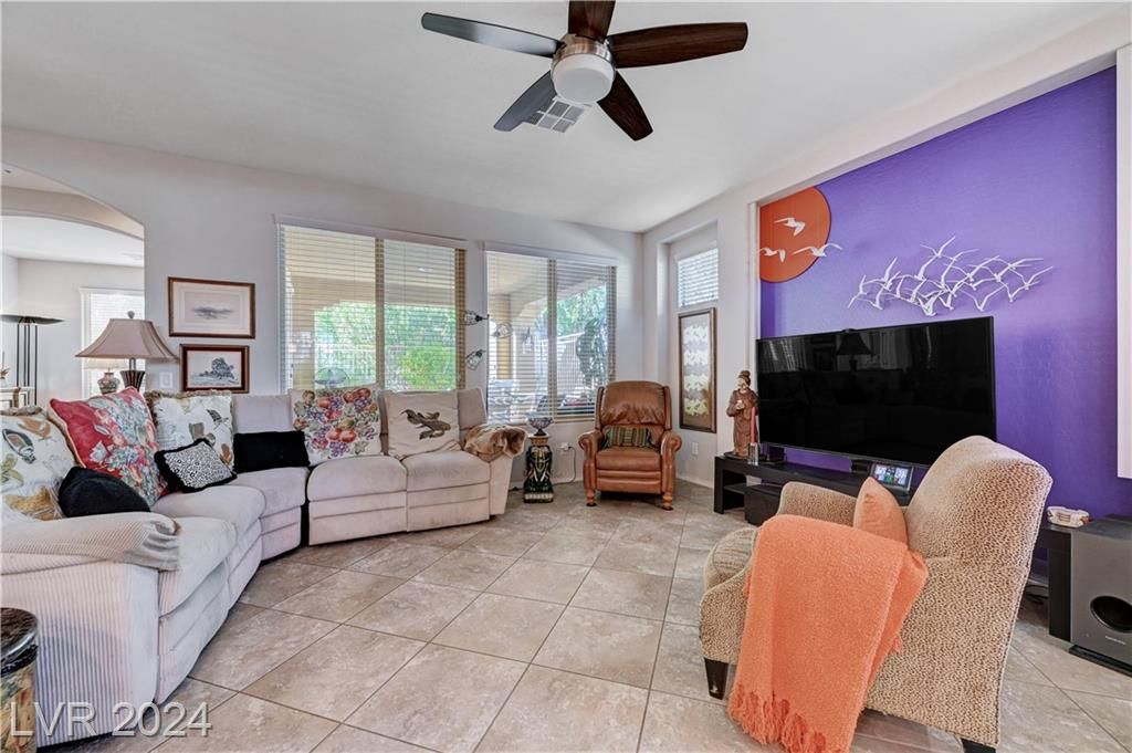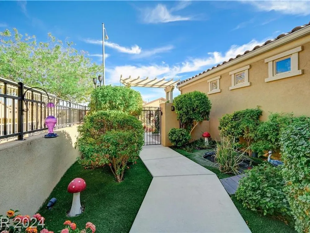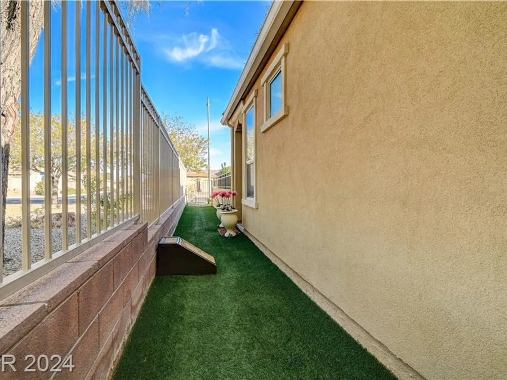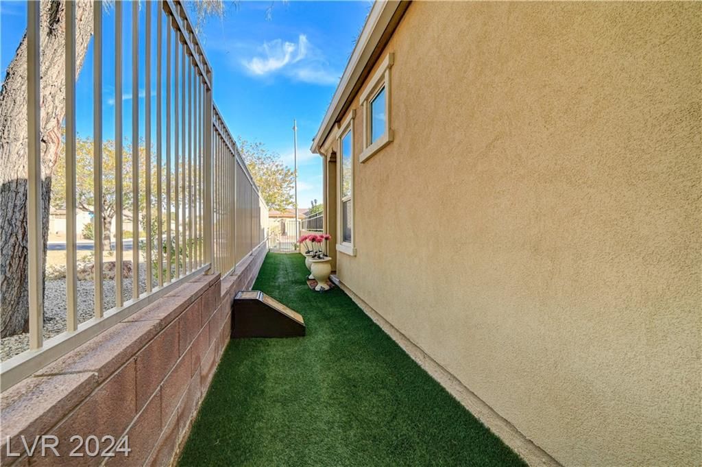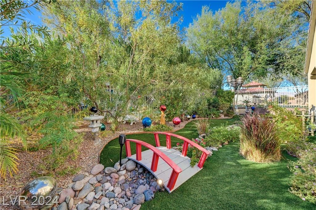 AGE RESTRICTED 55+ Resort Style Living. Gated Community. Close to the New State of The Art VA Hospital and Shopping. Easy access to the 215 and the I-15. No Carpet. 4FT Extended Garage for the Larger Trucks. True Pride of Ownership with Tons of Upgrades, Fabulous Premium Lot siding to the Park. 2 Bedroom, 2 Bath Plus a Large Den - Easily could be 3rd Bedroom. Entertainers home with a Large Front Courtyard with Synthetic Grass and Pond/Fountain. BackYard with Synthetic Grass and Covered Patio, BBQ Stub. Chefs Kitchen with Stainless Appliances, Granite Counters and Backsplash. Large Island - Lots of Upgraded Staggered Cabinets and Great Counter Space. Breakfast Area with Plenty of Space for a Table overlooking your Courtyard. Dining Area which easily accommodates a large table. Check out the Clubhouse with 2 Pools/Spa, Gym, Tennis/Pickleball, Bocce, Basket Ball Court, Putting Green, Billiards, Social Calendar, Dog Park and so much more