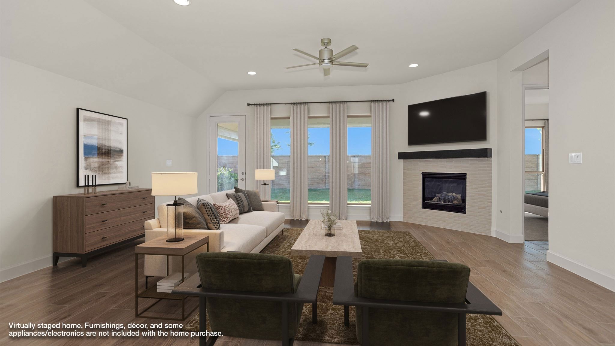 READY FOR MOVE-IN! 55+ Active Adult Community Offering Privacy with a Gated Entry. Home office with French doors set at entry with 12-foot ceiling. Extended entry leads to open kitchen, dining area and family room. Kitchen features corner walk-in pantry, 5-burner gas cooktop, generous counter space and island with built-in seating space. Dining area flows into family room with wall of windows and wood mantel fireplace. Primary suite includes double-door entry to primary bath with dual vanities, freestanding tub, separate glass-enclosed shower and two large walk-in closets. A guest suite with private bath adds to this spacious one-story home. Extended covered backyard patio. Mud room off two-car garage.
