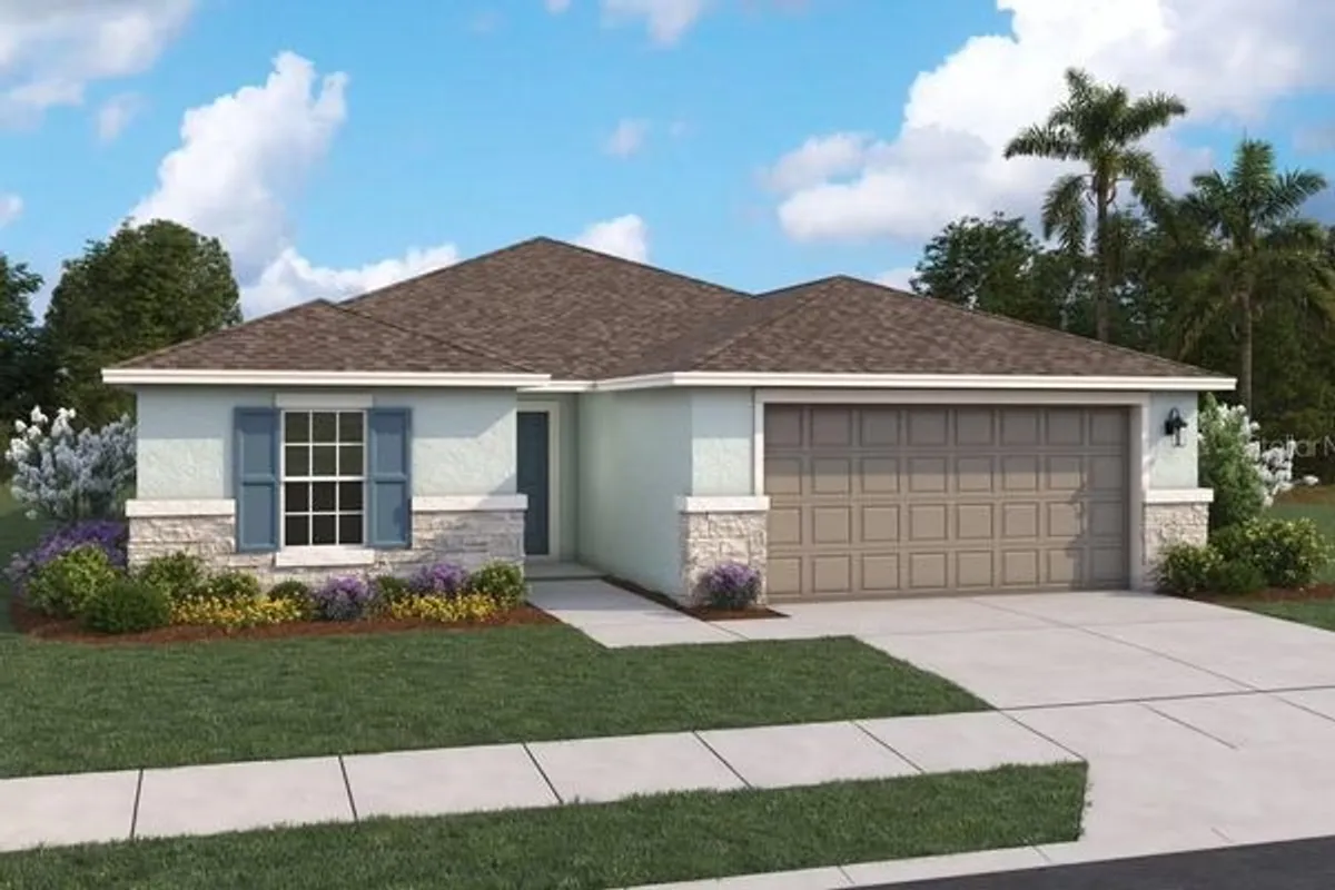 One or more photo(s) has been virtually staged. Under Construction. One or more photo(s) has been virtually staged. Welcome to the Hillcrest Elevation C with stone, offering 1,758 sq. ft. in the 55+ community of Heritage – The Cottages of Sanders Grove in Okahumpka, FL. This open-concept home features 4 bedrooms, 2 bathrooms, and a 2-car garage designed for comfortable living and entertaining. The kitchen includes 42" cabinets and quartz countertops, overlooking a spacious great room. The home features 9'4" ceilings for an open feel throughout. Upgraded luxury vinyl plank flooring runs through the main living areas and bathrooms, with carpet in the bedrooms. Enjoy the covered lanai, perfect for relaxing outdoors. Heritage – The Cottages of Sanders Grove offers convenient access to nearby shopping, dining, nature trails, golf courses, and major highways while maintaining a peaceful community setting.