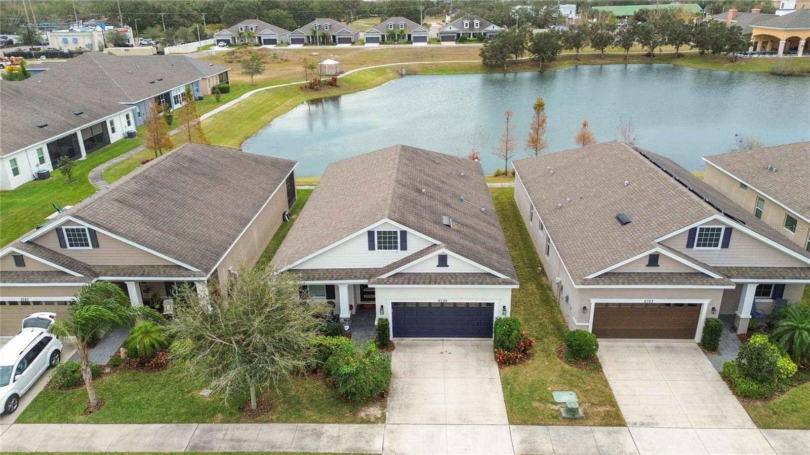 Luxury, lake views, and zero maintenance—welcome home to effortless Florida living. Don’t miss this opportunity to own a beautifully maintained, luxury-upgraded home in Bridgewater Landing—one of the area’s most desirable 55+ communities. This energy-efficient single-family residence features over $35,000 in premium upgrades and has been freshly painted inside and out, offering a truly move-in-ready experience. Every detail has been meticulously cared for, blending comfort, elegance, and peace of mind. Inside, you’ll be welcomed by engineered hardwood flooring throughout and soaring 10-foot ceilings that create an open, airy feel. A versatile front den or office easily doubles as a guest suite for visiting family or friends. The expansive great room opens through sliding glass doors to a shaded, screened-in lanai, the perfect place to relax while enjoying peaceful lakefront views. The gourmet kitchen is an HGTV dream, featuring quartz countertops with a waterfall island, built-in double ovens, a smooth cooktop, and designer lighting—ideal for both entertaining and everyday living. The luxurious primary suite offers tranquil lake views, a spacious walk-in closet, and a spa-like custom tile bath designed for total relaxation. Additional highlights include foam attic insulation for enhanced energy efficiency and lower electric bills. Enjoy a truly maintenance-free lifestyle, with the HOA covering front and rear lawn care, monthly home security monitoring, exterior water and irrigation, as well as roof and exterior paint maintenance—so you can focus on enjoying life, not maintaining a home. Bonus: No CDD fees! For added peace of mind, a clean inspection report, along with completed four-point and wind mitigation inspections, are already available. Located just minutes from shopping, dining, and everyday conveniences like Publix, Starbucks, and local restaurants, with easy access to I-75 and the Lee Roy Selmon Expressway, this home keeps all of Tampa Bay within reach. This exceptional home won’t last long—schedule your private showing today before it’s gone!