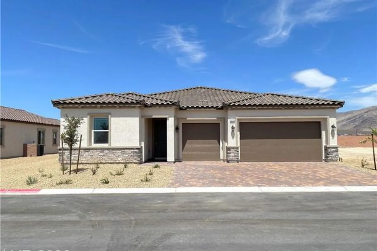 3 bedroom, 2 bath, 2,190 sq ft Patterson model with a 3-car attached garage in the Amalfi neighborhood at Mt. Falls by Richmond American Homes, featuring beautiful views of Mt. Charleston. Designed with 10' ceilings and 8' doors throughout, this home offers an open, spacious feel. The gourmet kitchen includes GE stainless-steel appliances, maple cabinets in a latte finish with 42" uppers, quartz countertops, and upgraded stainless sink with chrome faucet. The deluxe primary bath adds comfort and style, while upgraded carpet and ceramic tile flooring run throughout. Additional features include a smart Wi-Fi thermostat, upgraded insulation, soft water loop, mud room cabinets, added windows, ceiling fan and lighting prewires, video doorbell, and 8' garage door. Located in Amalfi at Mt. Falls, residents enjoy access to the Mt. Falls Golf Course, restaurant, three pools, hot tub, fitness center, game room, and walking paths. Call today for more information or to schedule your private tour.