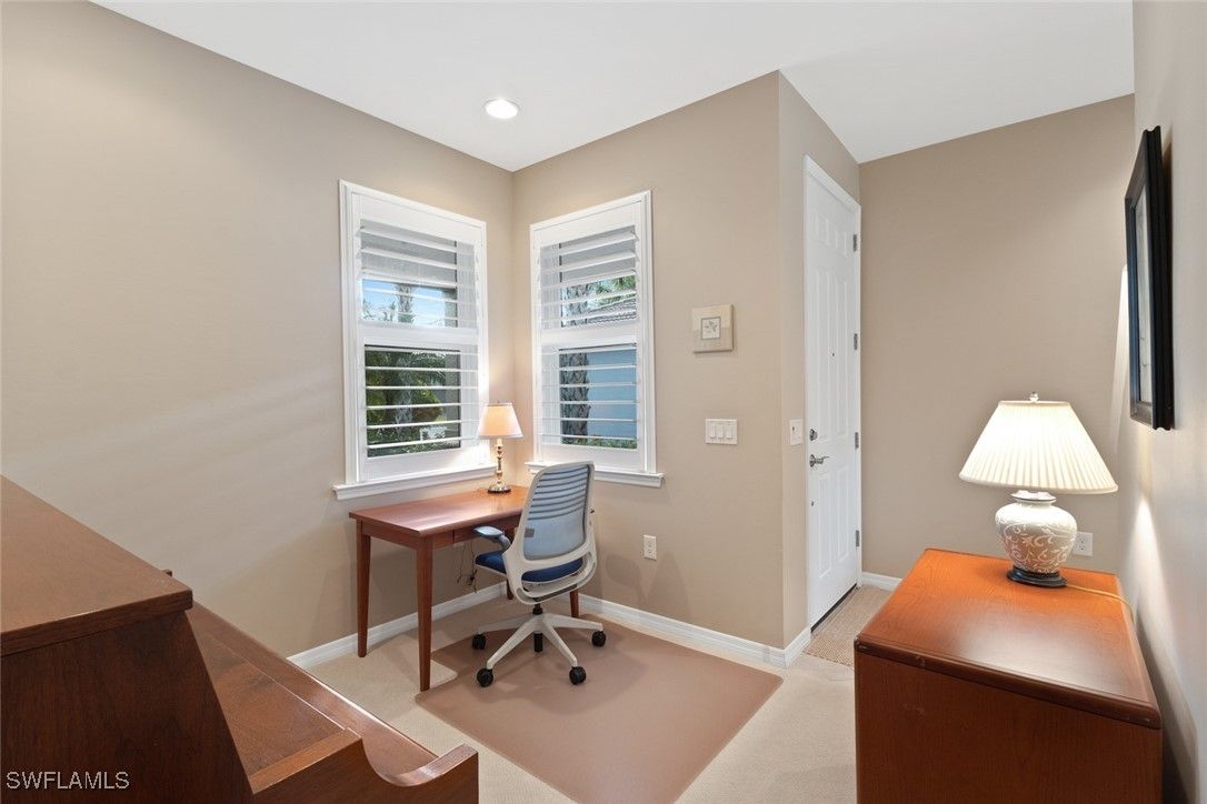 QUICK MOVE-IN! Rare opportunity to own a FURNISHED 2-STORY TAFT with a PRIVATE PRESERVE VIEW, offering space, flexibility, and privacy in the 55+ Del Webb community. This 3-BEDROOM + LOFT, 3-BATH home is ideal for hosting visitors, multigenerational living, or creating the perfect hobby or flex space. The PRIMARY SUITE is conveniently located on the first floor and features DUAL SINKS, a walk-in shower, and a CUSTOM WALK-IN CLOSET, creating a comfortable and private retreat. Upstairs, the expansive LOFT includes a living area, full bathroom, and bedroom, providing ample room for guests or creative pursuits. Upgrades are found throughout the home, including TILE ON THE DIAGONAL, PLANTATION SHUTTERS, and UPGRADED CABINETRY. The kitchen is well-appointed with an INDUCTION STOVE TOP, NEWER REFRIGERATOR and BOSCH DISHWASHER, and generous storage. Enjoy year-round comfort with a NEWER AC SYSTEM (2025). Step outside to the EXTENDED LANAI overlooking a serene PRIVATE PRESERVE VIEW, with plenty of room to add a pool. Built for comfort and peace of mind, this home features IMPACT WINDOWS, electric Kevlar STORM SCREENS on the lanai, and FRESH EXTERIOR PAINT. Additional highlights include an EXTENDED 4' GARAGE with a NEWER GARAGE OPENER, utility tub, and TRANSFER SWITCH FOR GENERATOR—perfect for added functionality and preparedness. This home comes with the SOCIAL MEMBERSHIP, but take note GOLF LOVERS, Panther Run Golf Club offers optional MEMBERSHIPS with premium golf experiences just steps from your backyard. In Del Webb Naples, you’ll enjoy WORLD-CLASS AMENITIES that rival luxury resorts: dine at the Rusty Putter Restaurant, soak in the RESORT-STYLE or LAP POOLS, break a sweat in the state-of-the-art FITNESS CENTER, and play your way through PICKLEBALL, TENNIS, bocce, billiards - even a top-tier GOLF SIMULATOR! Need groceries, church, or a bite to eat? Just hop in your golf cart and cruise into town - Publix and the heart of Ave Maria are just minutes away. This isn’t just a home - it’s a LIFESTYLE UPGRADE in one of Southwest Florida’s most vibrant 55+ communities. Don’t miss your chance to live where fun, fitness, and friendships flourish year-round!