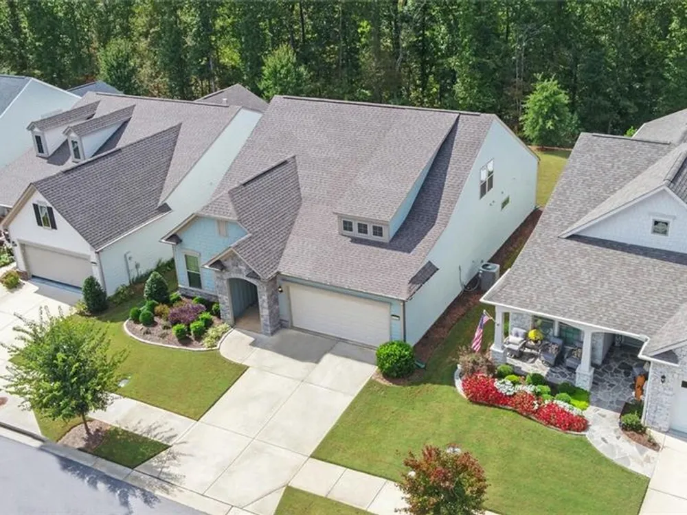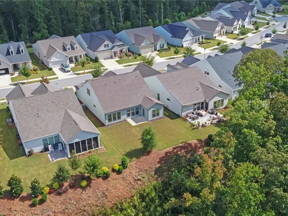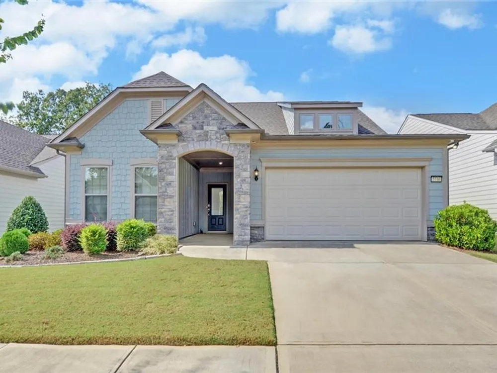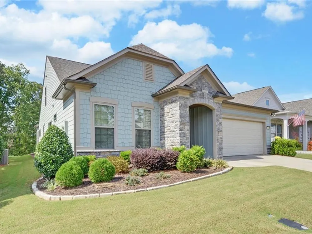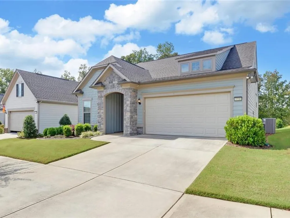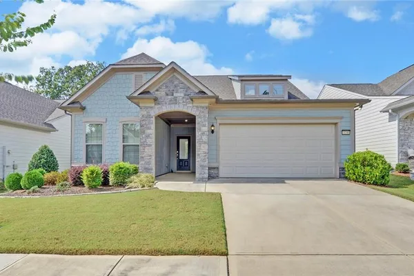 Popular Abbeyville model with stone front elevation covered porch. 3 bedrooms , 3 baths, office, sunroom, gourmet kitchen, extended 2 car garage, all on wooded lot view close to clubhouse and amenities. Additional storage space over garage accessible from 2nd floor. This home shows like new, never fully lived in. Located in a premier 55+ community near shopping, dining and medical. The community has a large clubhouse with meeting rooms, library, ballroom, kitchen, and generous fitness center. There are indoor and outdoor pools and hot tubs, a concert pavilion, pickleball, bocce and tennis venues. There are hundreds of clubs and interest groups and a full time activities director to always insure full calendar of events. Lawn maintenance is included in HOA dues. Located in Sr tax friendly Gwinnett county. Come live like you are always on vacation.! You cannot build for this price!