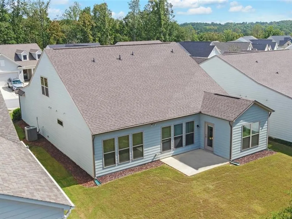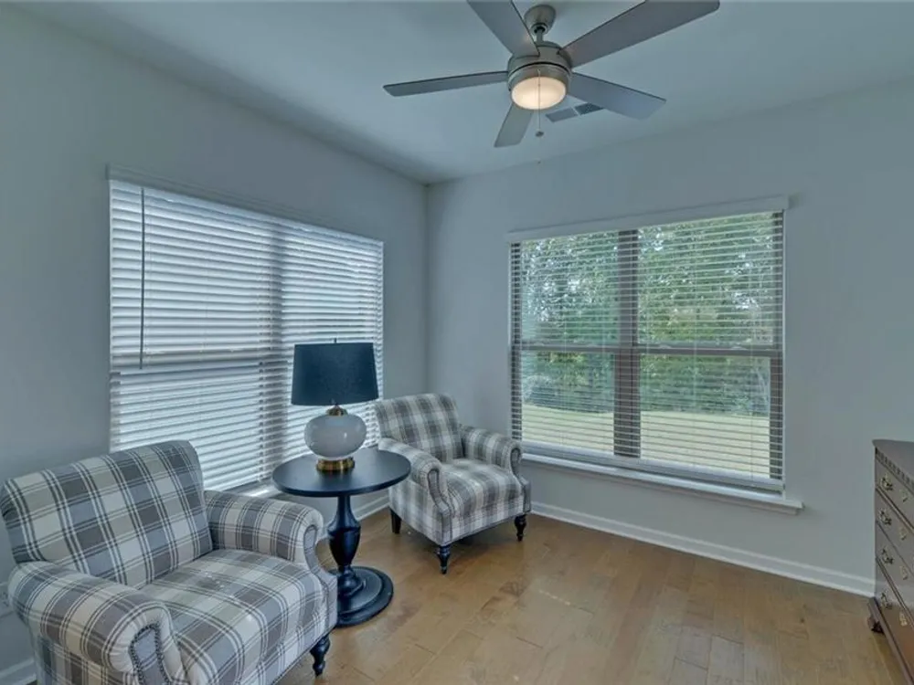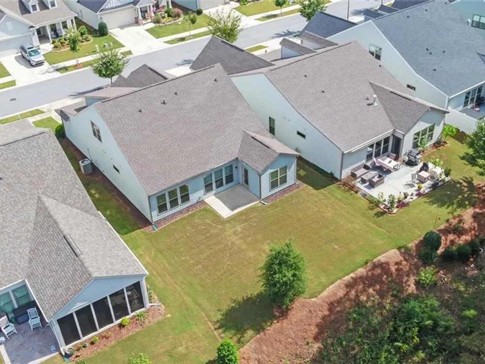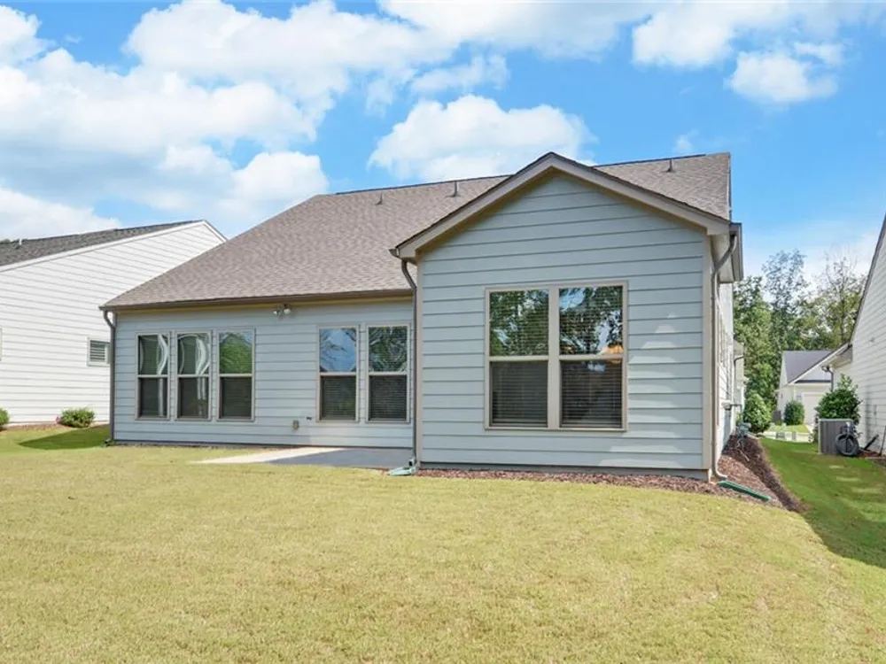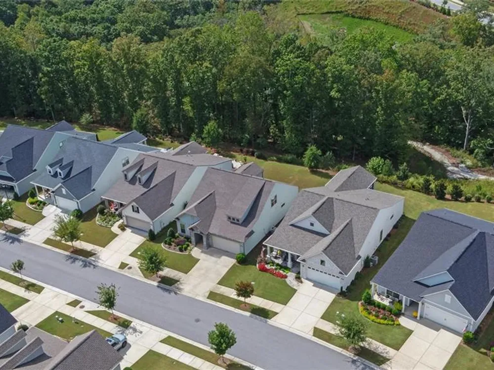 Popular Abbeyville model with stone front elevation covered porch. 3 bedrooms , 3 baths, office, sunroom, gourmet kitchen, extended 2 car garage, all on wooded lot view close to clubhouse and amenities. Additional storage space over garage accessible from 2nd floor. This home shows like new, never fully lived in. Located in a premier 55+ community near shopping, dining and medical. The community has a large clubhouse with meeting rooms, library, ballroom, kitchen, and generous fitness center. There are indoor and outdoor pools and hot tubs, a concert pavilion, pickleball, bocce and tennis venues. There are hundreds of clubs and interest groups and a full time activities director to always insure full calendar of events. Lawn maintenance is included in HOA dues. Located in Sr tax friendly Gwinnett county. Come live like you are always on vacation.! You cannot build for this price!